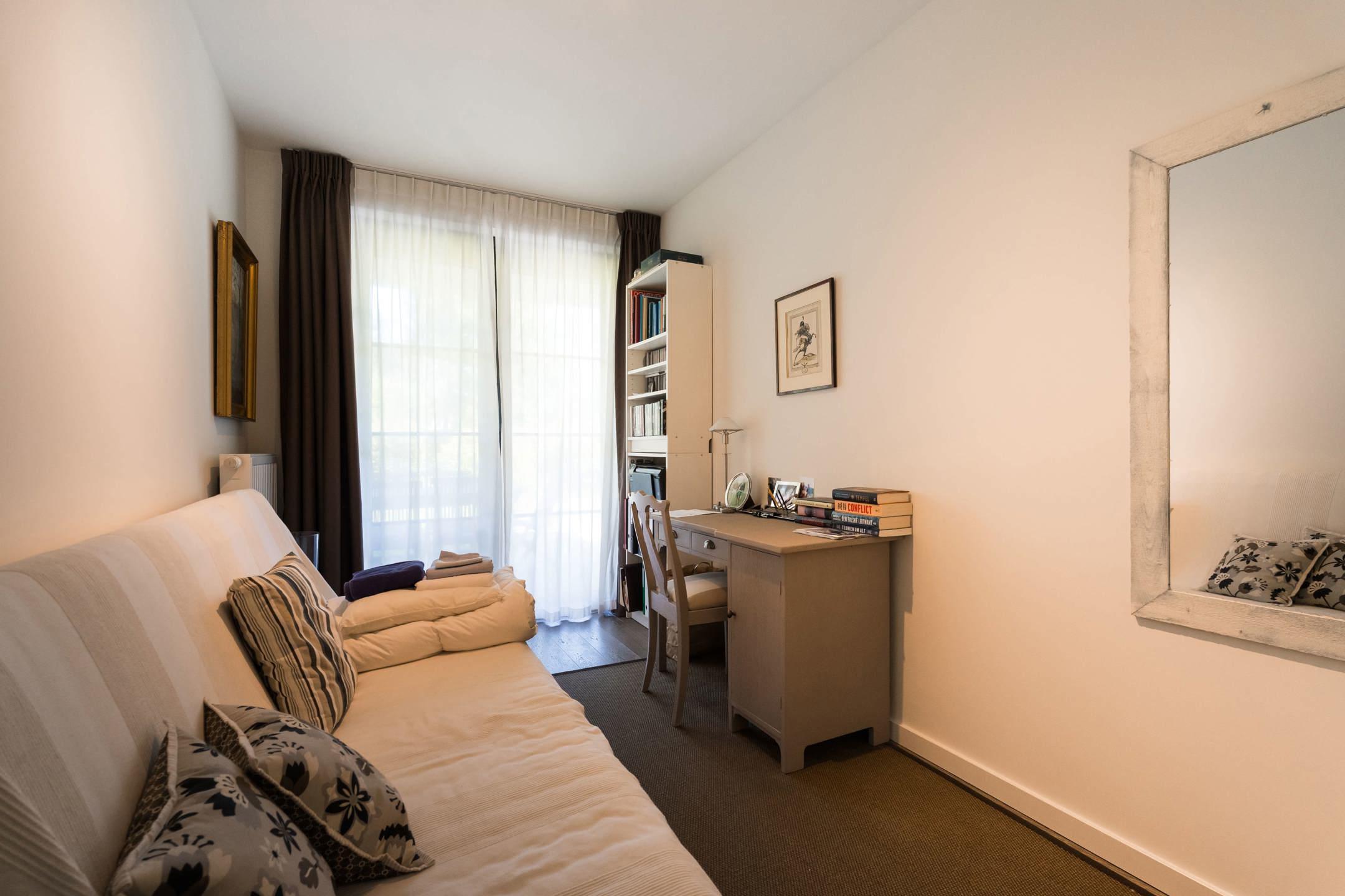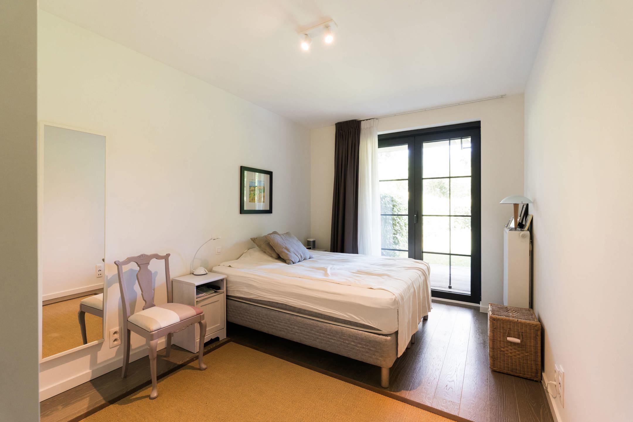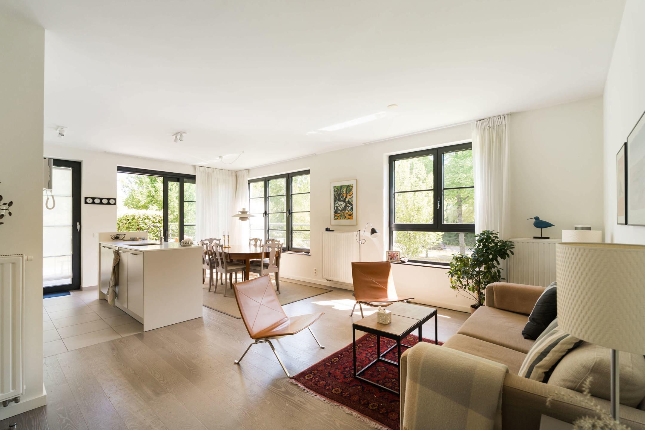 Close to the Mellaert Ponds and all amenities, in a luxury residence built in 2013, magnificent 2-bedroom/1-bathroom apartment of ± 91 m² with beautiful private garden and terrace. It comprises: entrance hall with guest toilet, bright living room of ± 34 m² with fully equipped open-plan kitchen and access to the terrace and garden, 2 bedrooms of ± 14 and 10 m², one with built-in wardrobes, beautiful bathroom, technical room/equipped laundry room. Also: PEB C (142 kWh/m²/year), compliant electricity, concierge service, “SieMatic” kitchen with ‘Siemens’ appliances, numerous custom-made storage spaces from the “Camber” brand, double glazing throughout, individual gas boiler, video intercom, solid parquet flooring, elevator, water softener, secure access, reinforced door, currently rented at €1,736.08/month, private cellar no. 14 and a parking space at an additional mandatory cost (+ €30,000), share 335/10,000 + 4 + 13. Magnificent apartment offering all the necessary comforts with high-quality materials and equipment! Don't wait to visit.
