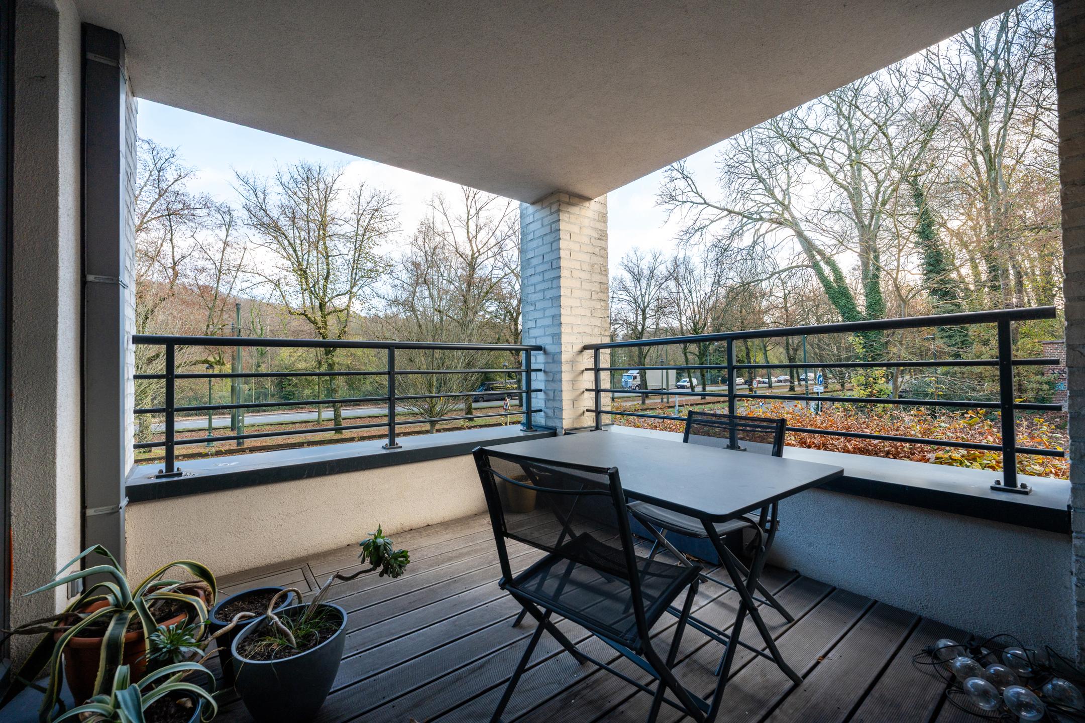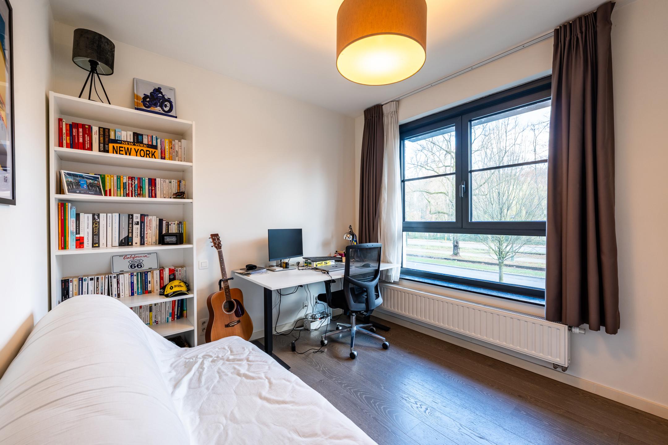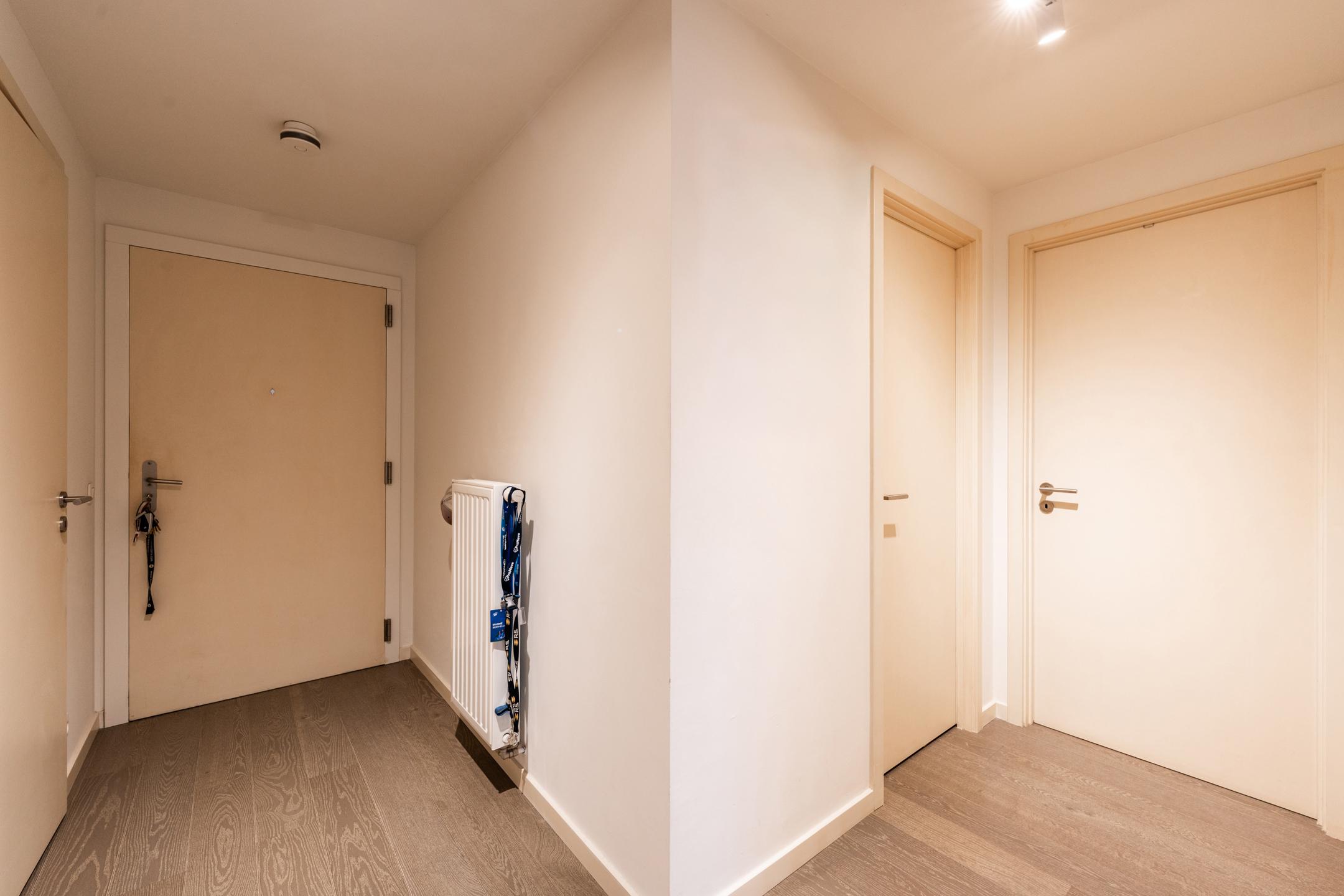 In close proximity to the Mellaert Ponds and all amenities, in a luxury residence built in 2013, magnificent 2-bedroom/1-bathroom apartment of ± 106 m². It comprises: entrance hall with guest toilet and cloakroom, bright living room of ± 43 m² with fully equipped open-plan kitchen with access to the ± 6.50 m² east and south-facing terrace, 1 bedroom of 18.50 m² with built-in wardrobe, 1 bedroom of ± 11 m², beautiful bathroom, utility room/laundry room. Also: PEB C (127 kWh/m²/year), compliant electricity, concierge service, ‘SieMatic’ kitchen with “Siemens” appliances, numerous custom-made storage units from the ‘Camber’ brand, curtains/drapes/light fixtures included, double glazing throughout, individual gas boiler, video intercom, solid wood flooring, lift, water softener, secure access, reinforced door, private cellar no. 32 and a parking space at an additional mandatory cost (+ €30,000), share 283/10,000 + 5 + ?. Magnificent flat offering all the necessary comforts with high-quality materials and fittings! Currently rented at €1,513.94/month excluding charges (long-term lease). Don't wait to visit.