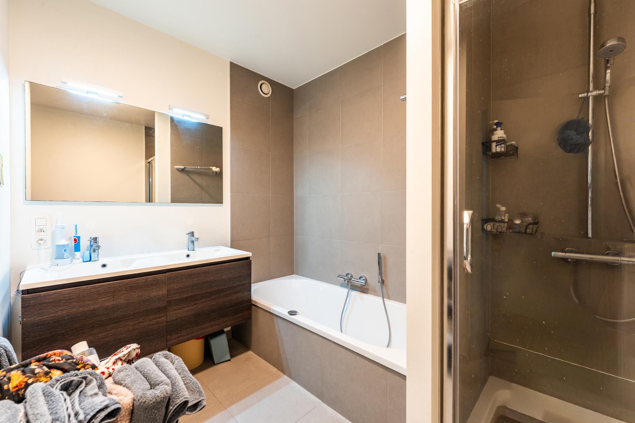 In the immediate vicinity of the Mellaert Ponds, in a luxury residence built in 2013, magnificent 2-bedroom/1-bathroom apartment of ± 123 m² with 2 west-facing terraces and a small garden for exclusive use. It is composed as follows: entrance hall with built-in cloakroom and guest toilet, bright living room of ± 42.50 m² with access to the first terrace of 13.47 m², fully equipped kitchen, 2 bedrooms (16 and 9.20 m²), one with built-in wardrobe and access to the second terrace of 13.84 m² and the small garden, 1 bathroom, utility room, separate laundry room. Also: PEB C+ (101 kWh/m²/year), compliant electricity, individual gas boiler, “SieMatic” kitchen, numerous custom-made storage units from the “Camber” brand, HR double glazing throughout, video intercom, solid parquet flooring, elevator, secure access, concierge service, reinforced door, currently rented at €2,177.62/month (parking included - 3-year lease starting on 03/13/2024), private cellar no. 21 and parking space no. 28 at an additional mandatory cost (+ €30,000). Share: 361/10,000 + 7 + 13. Magnificent apartment offering all the necessary comforts with high-quality materials and equipment! Don't wait to visit.