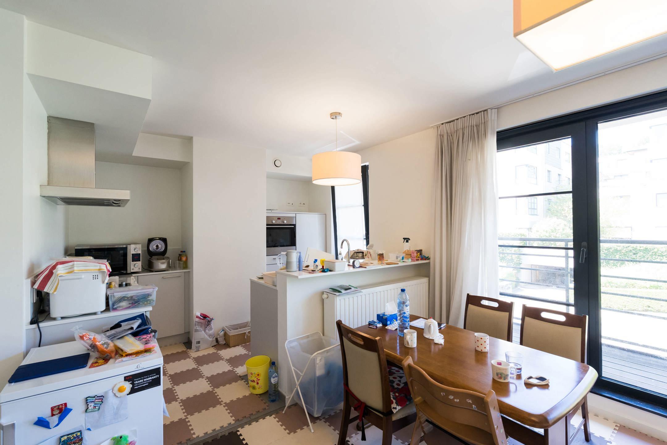 In the immediate vicinity of Etangs Mellaert, in a high-standing residence built in 2013, magnificent 3-bedroom/2-bathroom apartment of ± 126 m² with 2 terraces of ± 7 m² each facing south and west. It is composed as follows: entrance hall with integrated checkroom and “visitor” toilet, technical/laundry room, bright ± 40 m² living room with fully-equipped open-plan kitchen and access to the first 7.50 m² terrace, 3 bedrooms (17 - 13 and 11 m²) including one with integrated closets, 1 bathroom, 1 shower room with toilet and second 7 m² south-facing terrace. Also : EPC B (88 kWh/m²/an), compliant electricity, individual gas boiler, “SieMatic” kitchen, numerous “Camber” custom-made storage units, double glazing throughout, videophony, solid parquet flooring, elevator, secure access, concierge service, armored door, currently rented at €2,185/month (parking included - 3-year lease), private cellar n°26 and a parking space n°13 as a mandatory extra (+ €30,000). Quota : 341/10.000 + 8 + 13. Magnificent apartment offering every comfort with top-quality materials and equipment! A must-see!