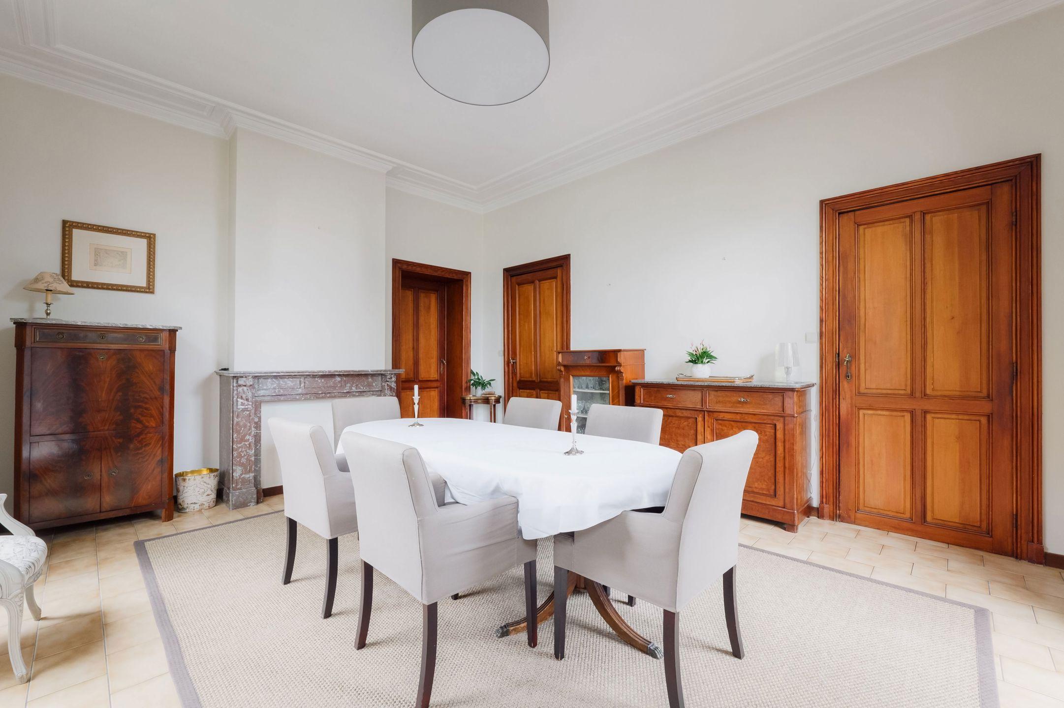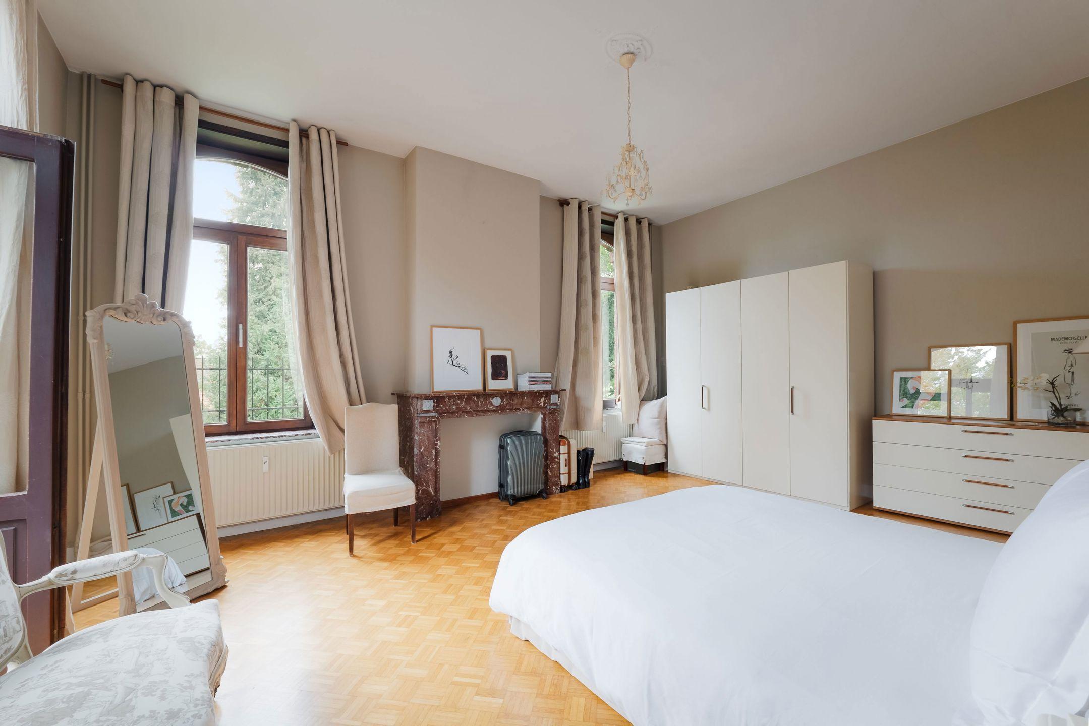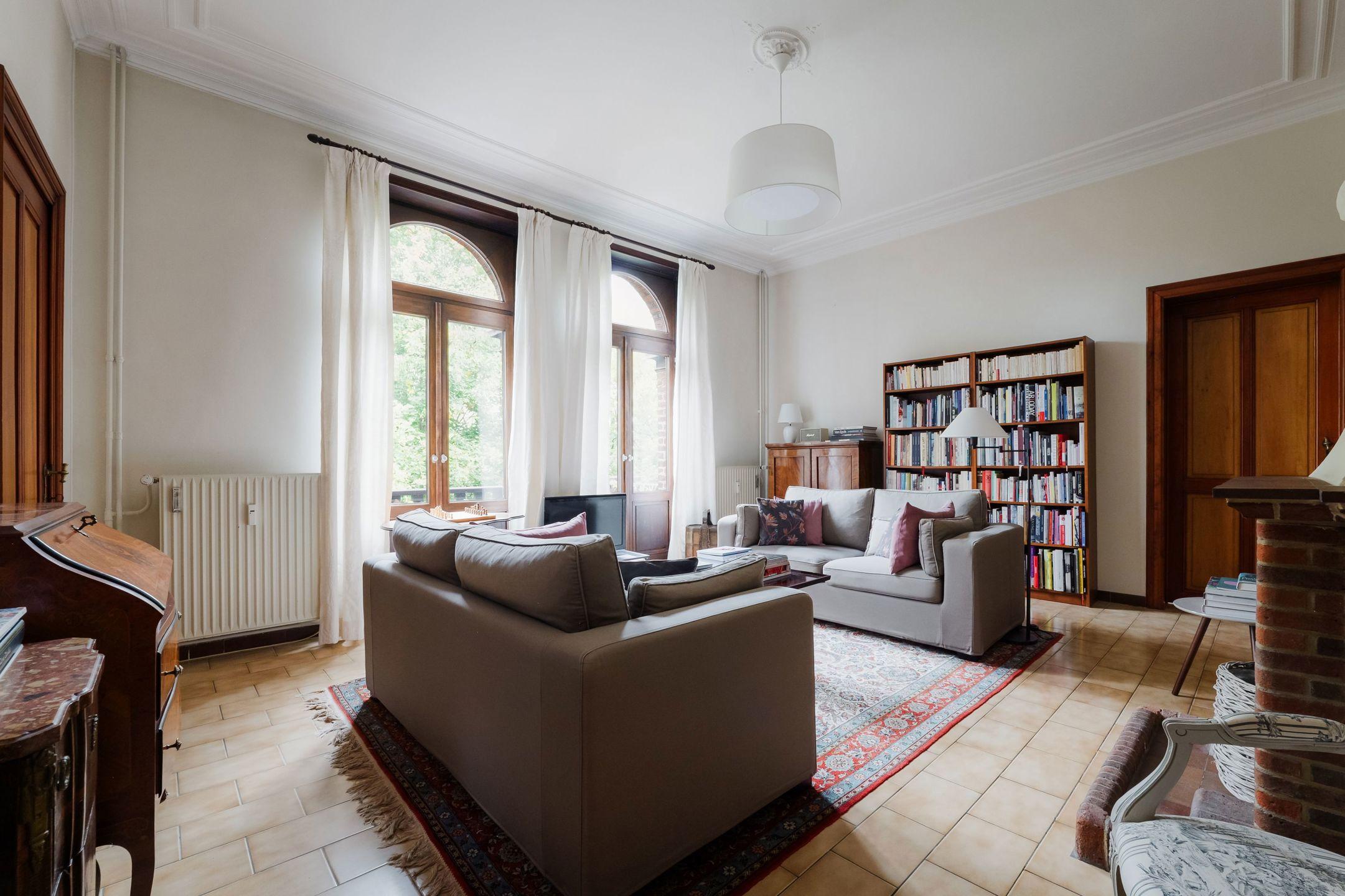 In an exceptional setting, superb CHARACTER APARTMENT (2 bedrooms / 1 bathroom) of ± 160m² with ± 177m² built, featuring 2 west-facing terraces. Small co-ownership of 3 units, the property is located on the 1st floor of 2. Shared garden surrounding the building. The property consists of: entrance hall, bright reception rooms with bow window of ± 52m², benefiting from a beautiful ceiling height, fully equipped kitchen, 2 bedrooms of ± 29m² and 27m², bathroom with laundry area and WC. Large cellar. Monthly heating charges of ± 200€. Common oil boiler installed in 2014. Energy Performance Certificate EPC G (367 kWh/m²/year). Exclusive listing with L&P!