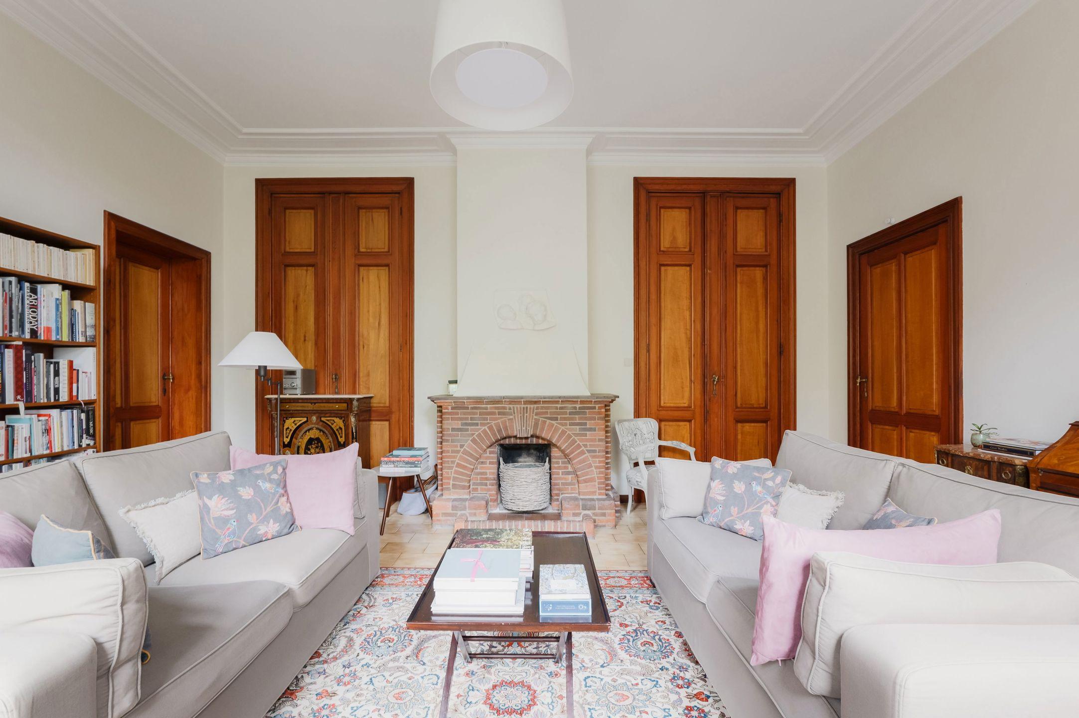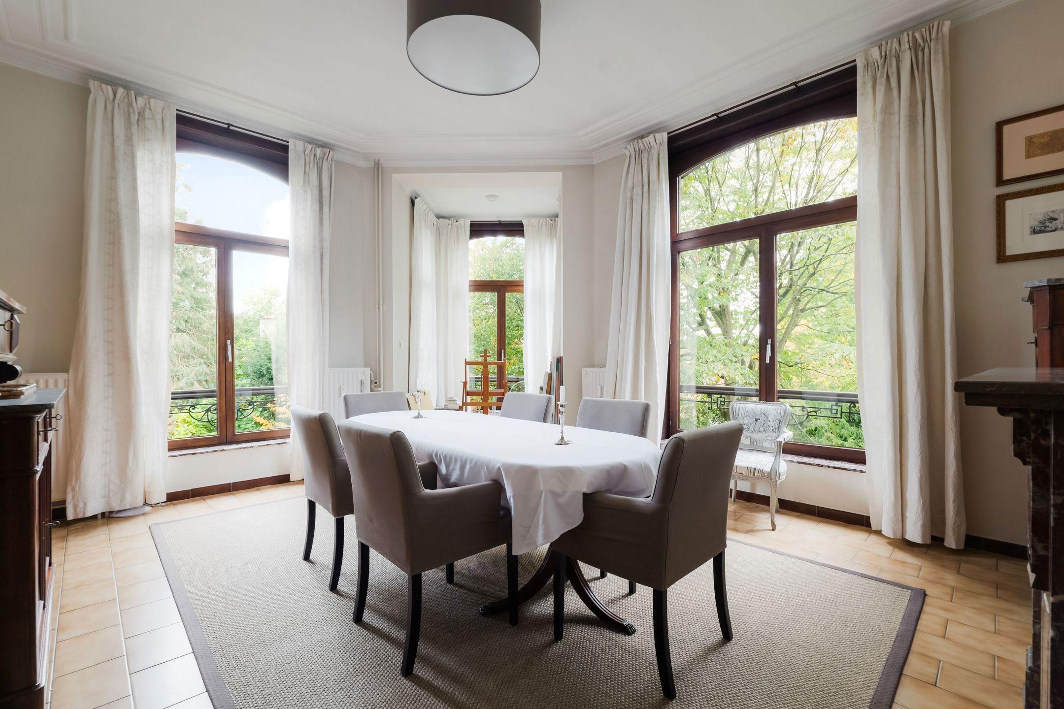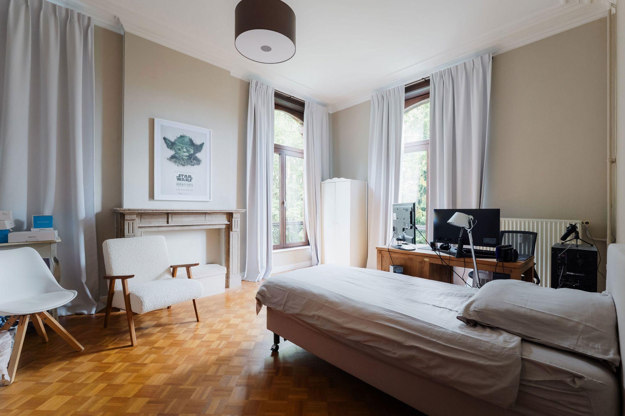 In an exceptional setting, superb CHARACTER APARTMENT (2 bedrooms / 1 bathroom) of ± 160m² with ± 177m² built, featuring 2 west-facing terraces. Small co-ownership of 3 units, the property is located on the 1st floor of 2. Shared garden surrounding the building. The property consists of: entrance hall, bright reception rooms with bow window of ± 52m², benefiting from a beautiful ceiling height, fully equipped kitchen, 2 bedrooms of ± 29m² and 27m², bathroom with laundry area and WC. Large cellar. Monthly heating charges of ± 200€. Common oil boiler installed in 2014. Energy Performance Certificate EPC G (367 kWh/m²/year). Exclusive listing with L&P!