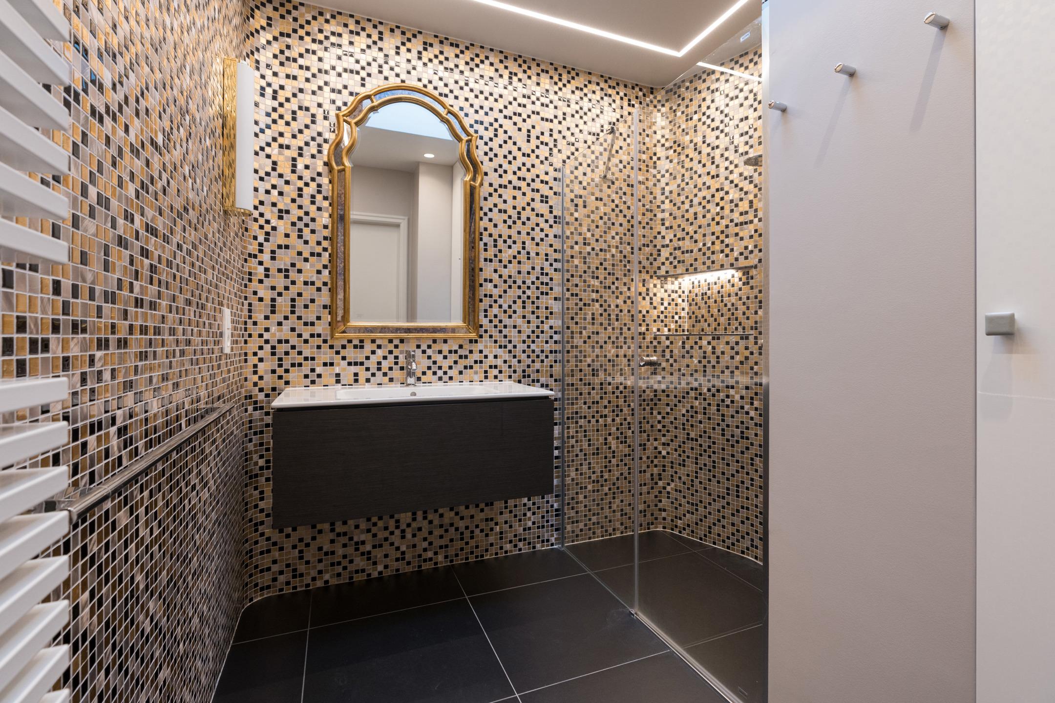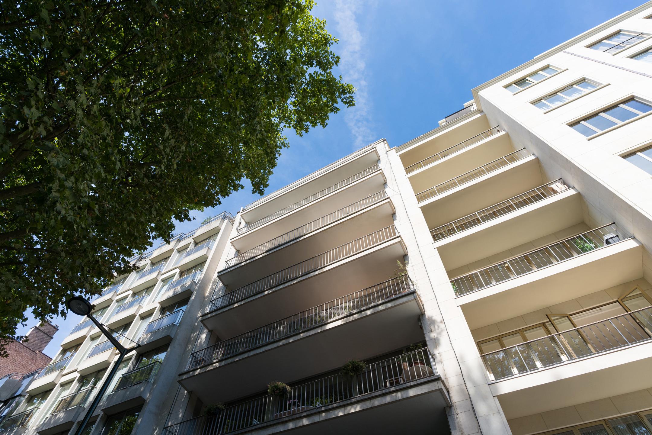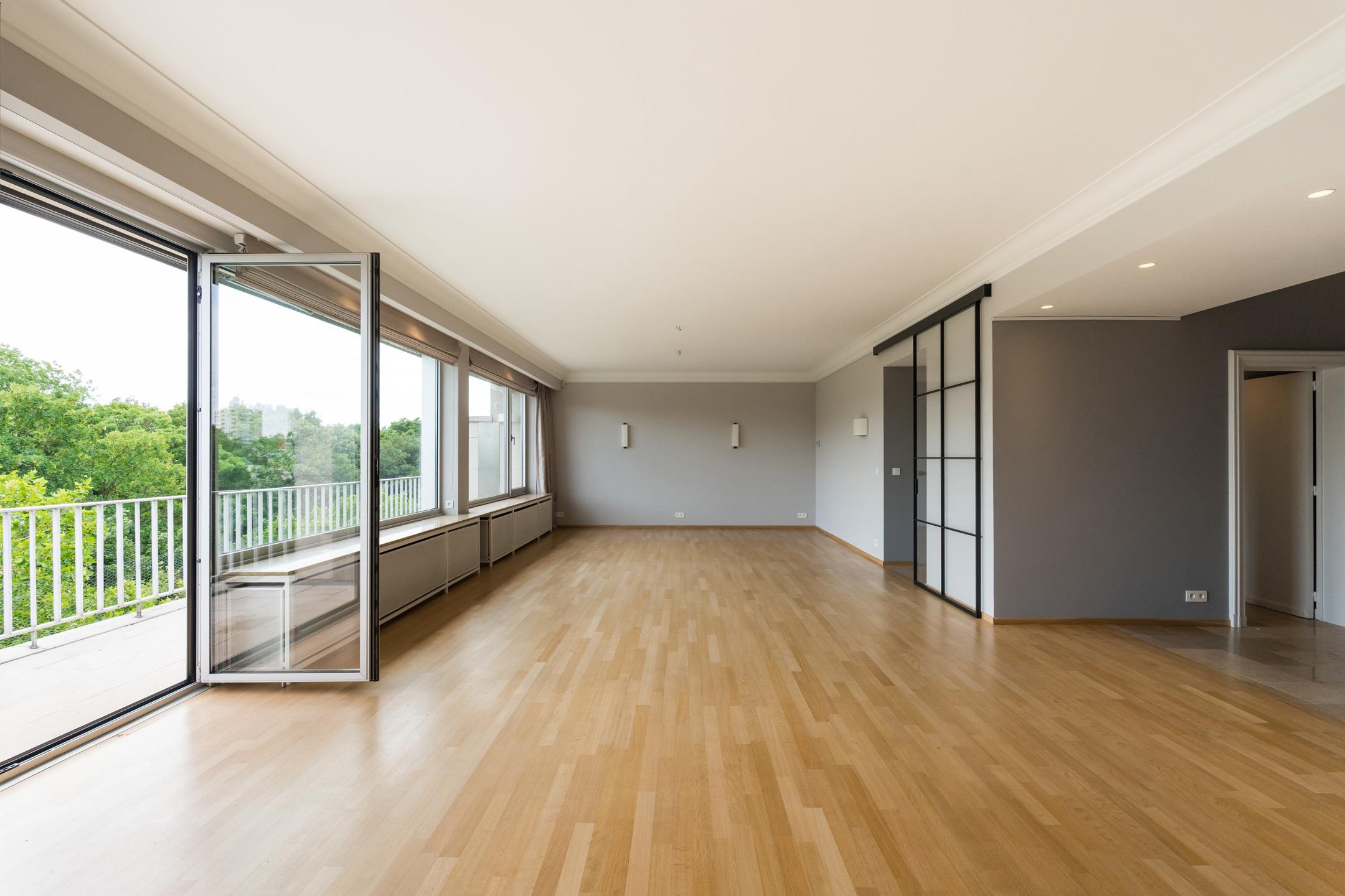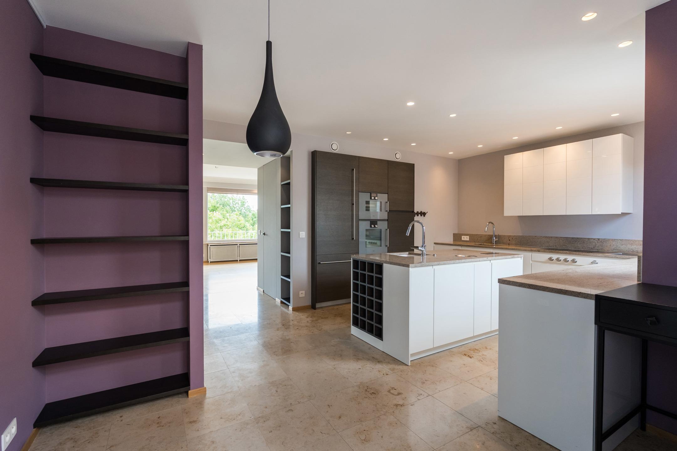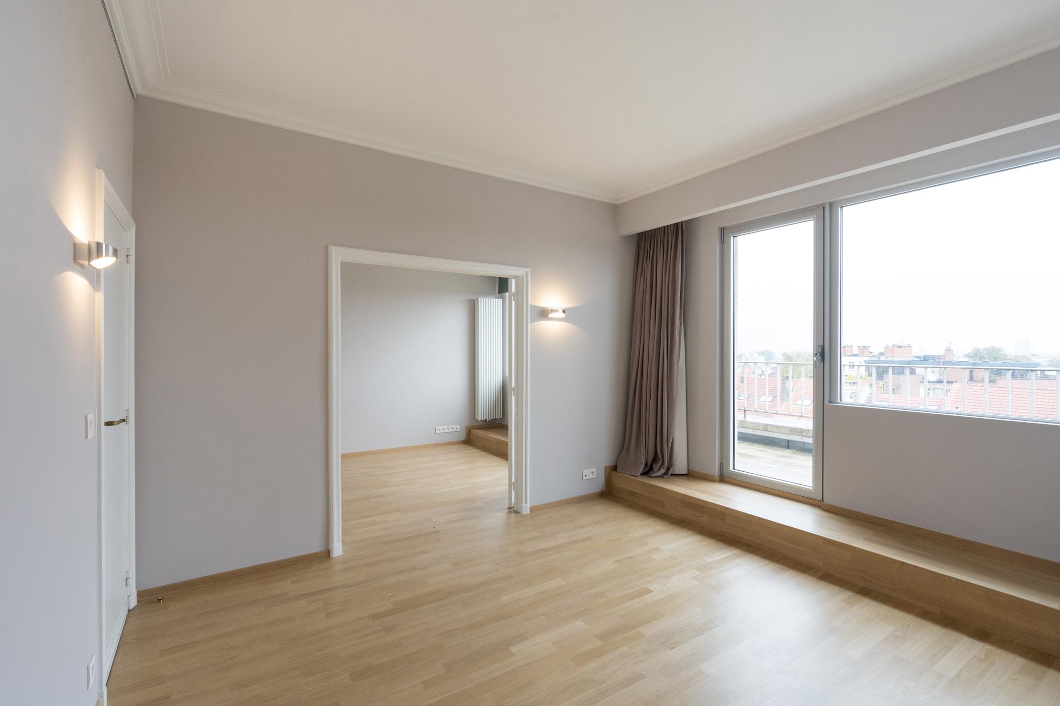 UCCLE - Avenue de Messidor near the Churchill roundabout: Magnificent PENTHOUSE APARTMENT (4bed/2sh) of approx. 185m² of living space and approx. 235m² (Gross according to EPC) with terraces (front: 17.5m² and rear: 22m²) and a GARAGE BOX AND 1 PARKING SPACE. The apartment is located on the 7th and top floor and is composed as follows: a spacious entrance hall of approx. 15m² with a separate cloakroom and a technical room. A spacious and bright reception area of approx. 61m² giving access to a front terrace of approx. 17.5m² (South-facing), a fully equipped kitchen (two sinks, numerous storage spaces, a dishwasher, a fridge and freezer, oven, hood, etc.) with a breakfast area of approx. 22.5m² and a balcony of approx. 2m², a laundry room with washing machine and dryer included. A night hall with a guest toilet with washbasin, a bedroom/office of approx. 11m², a second night hall with storage, 2 bedrooms of approx. 15m² and 12m², a shower room, a master suite of approx. 20m² with dressing room and adjoining shower room of approx. 8.5m² with wc, a rear terrace of approx. 22m² with panoramic view (North-East facing). On the ground floor: a street-front garage box and a parking space (mandatory at €35,000), in the basement: a cellar. Aluminium double glazing - EPC: F - Electricity compliant (2042) - Property manager - Elevator - Individual gas boiler. Available upon deed. A property to discover exclusively at Latour & Petit!