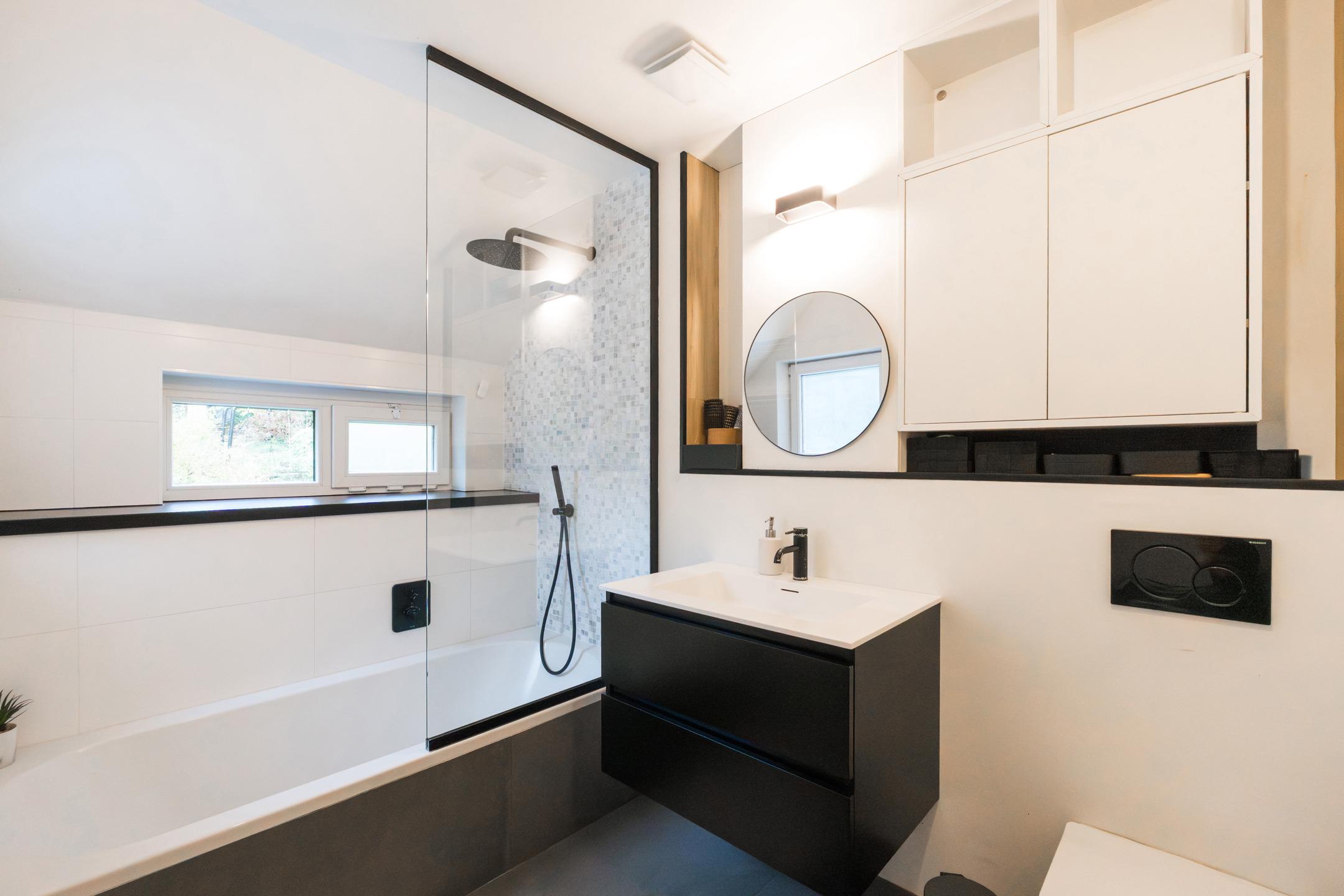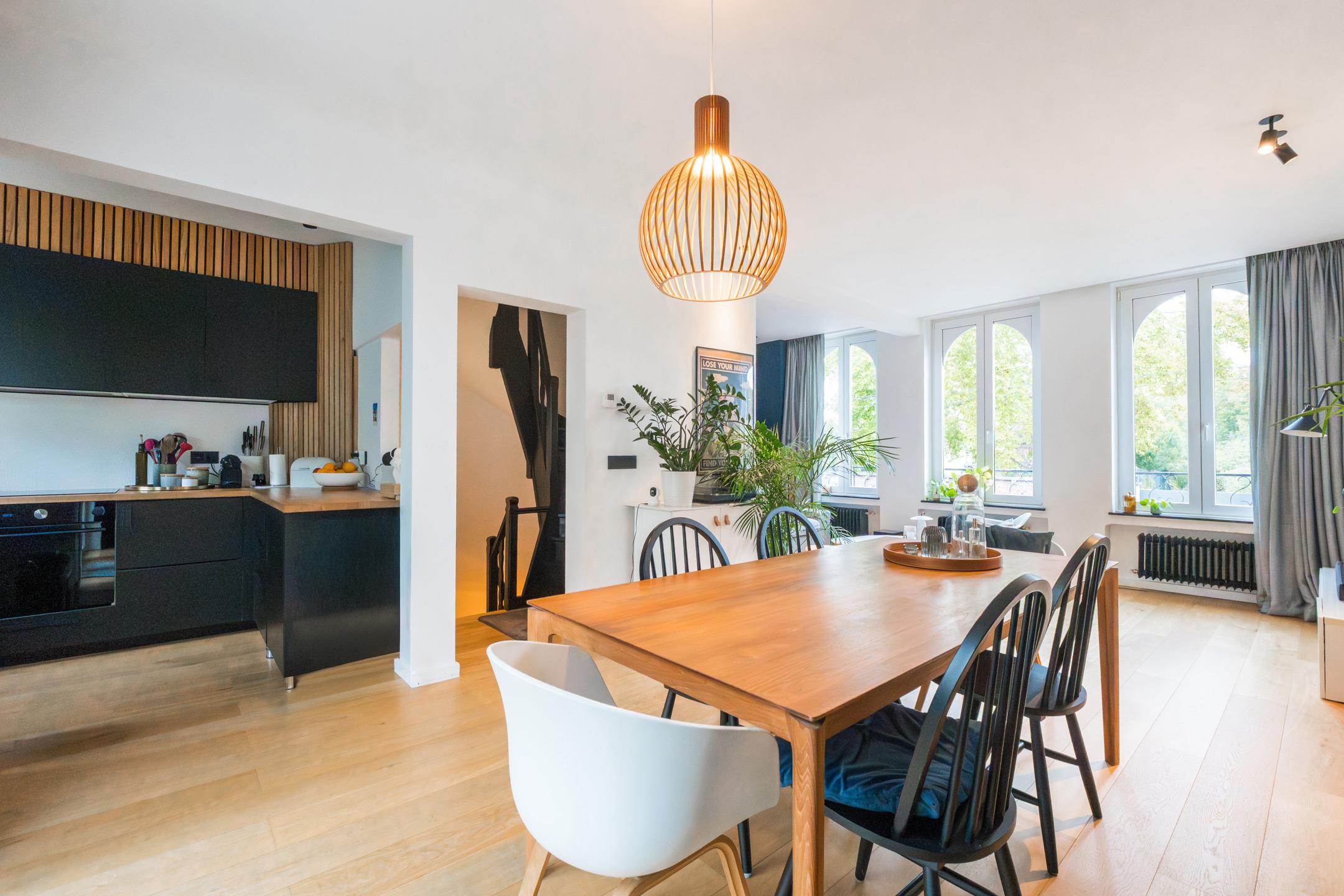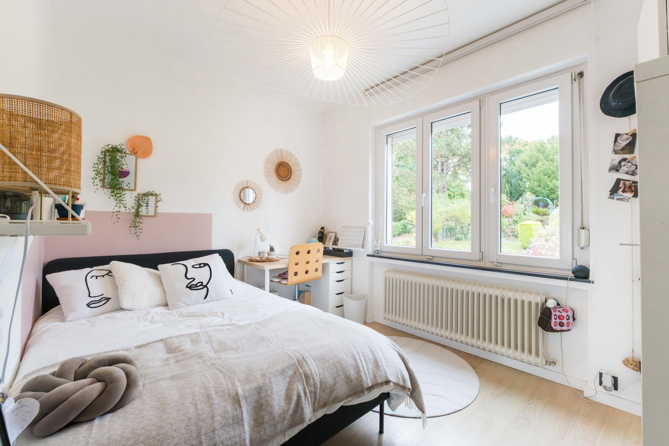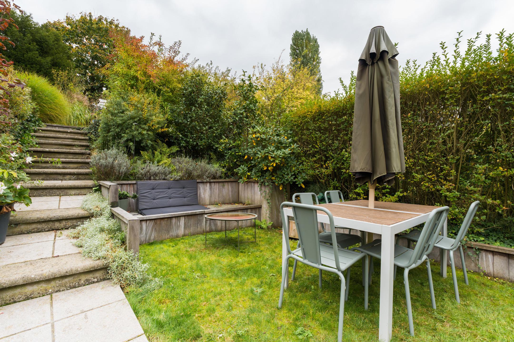 UCCLE, near the Lycée Français nursery school, pleasant semi-detached HOUSE (3 bedrooms/1 study/2 bathrooms) with 160m² of floor space and a garage on a 2a88 plot facing south-east. It comprises, on the ground floor, an entrance hall, guest WC, garage, storage room, laundry room and boiler room. On the garden level, there is an open-plan, fully equipped kitchen, living room and dining room with access to the terrace and garden. Pleasant garden of ±190m² facing south-east, landscaped on several levels, not overlooked at the rear. On the first floor, there is a hallway, two bedrooms (14.1m² and 9.3m²), a study or small bedroom (6.6m²) currently used as a dressing room, and a bathroom. On the second floor, in the attic, there is a master bedroom (±15m²) with an open shower room. Renovated in 2018: condensing boiler (gas), roof insulation, kitchen, bathroom, floors, electricity, painting. PVC double-glazed windows (2004, 2011). Roof renovated in 2011. EPC E. A real gem to be discovered exclusively at L&P!