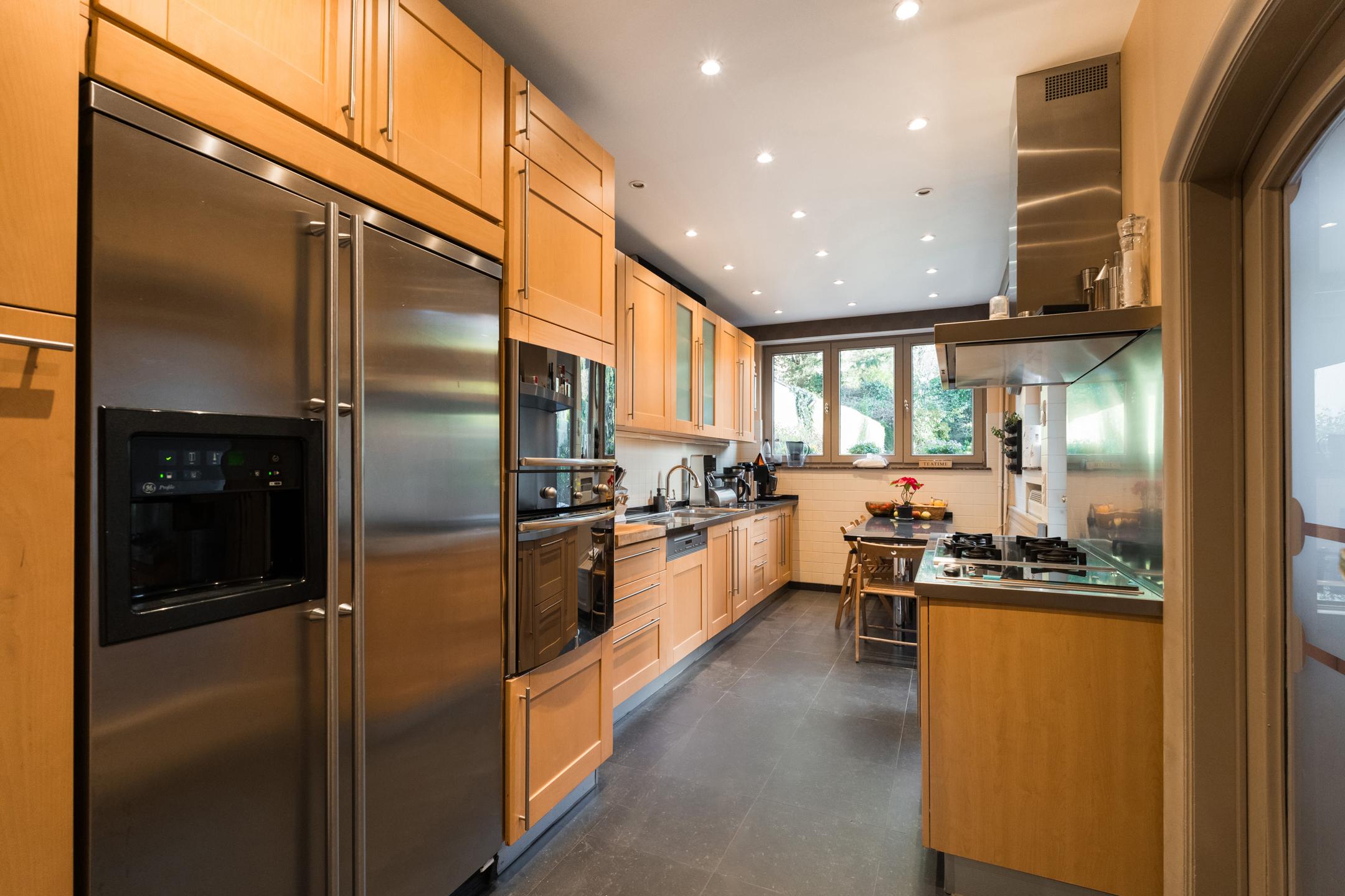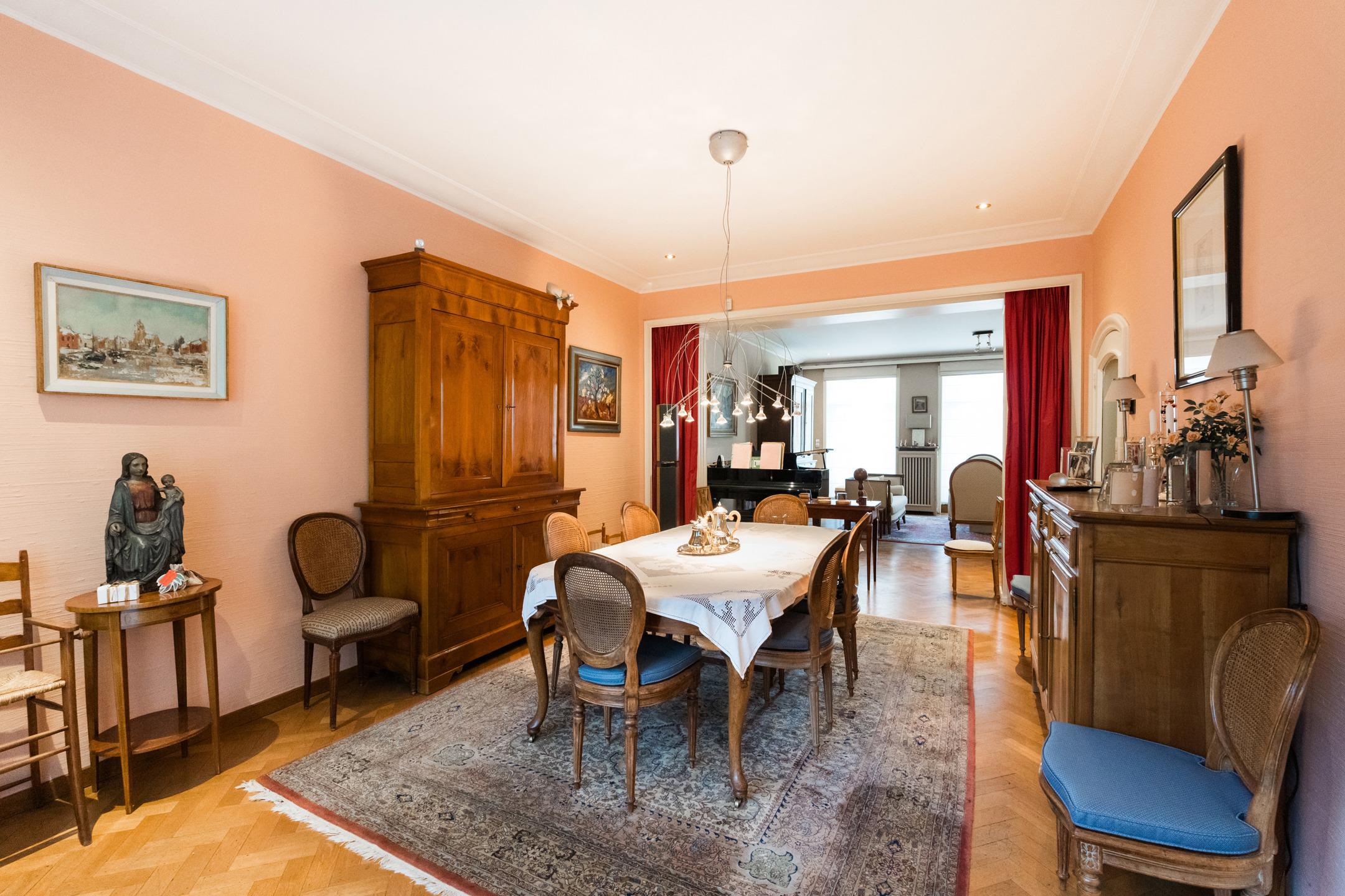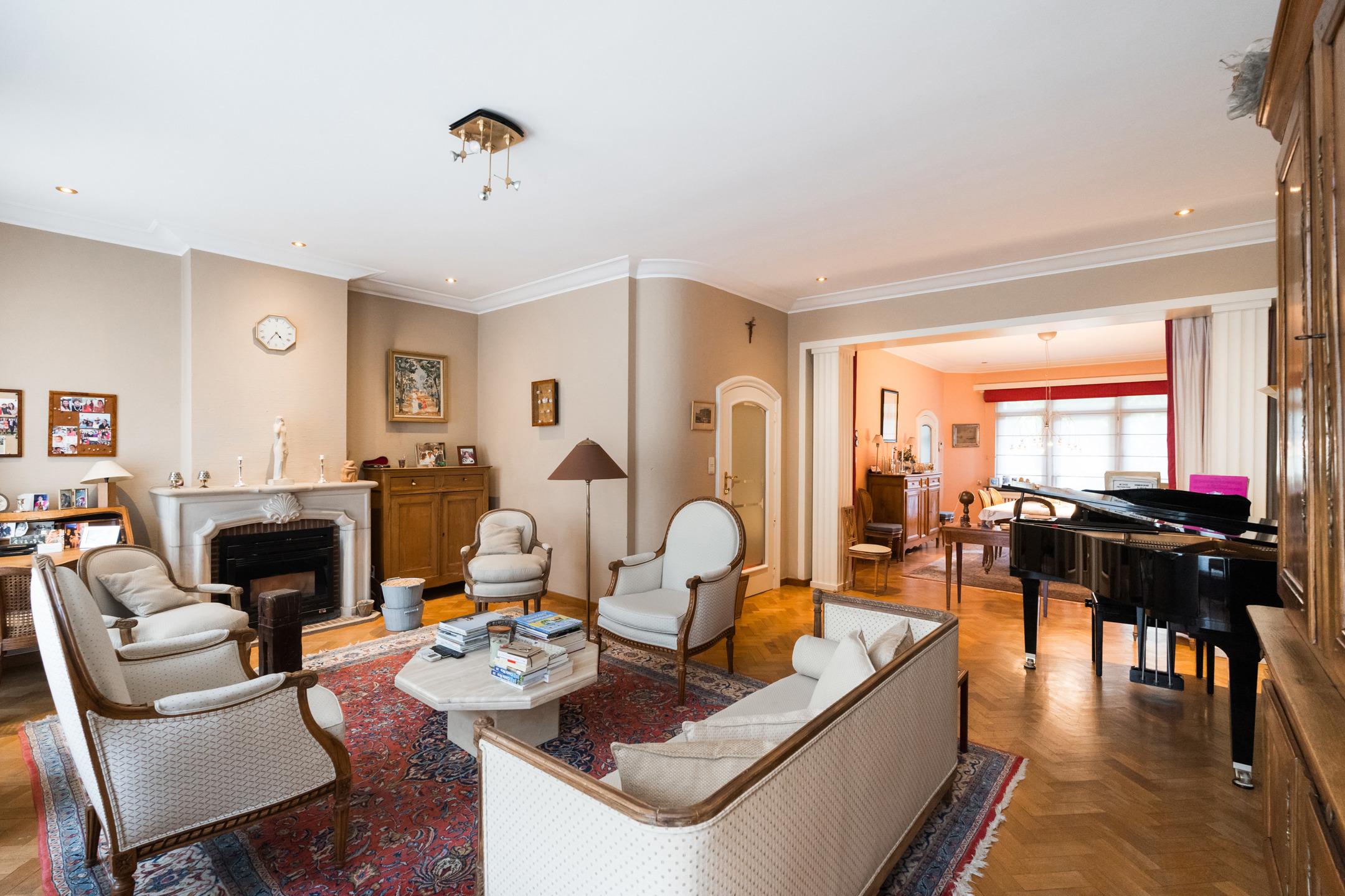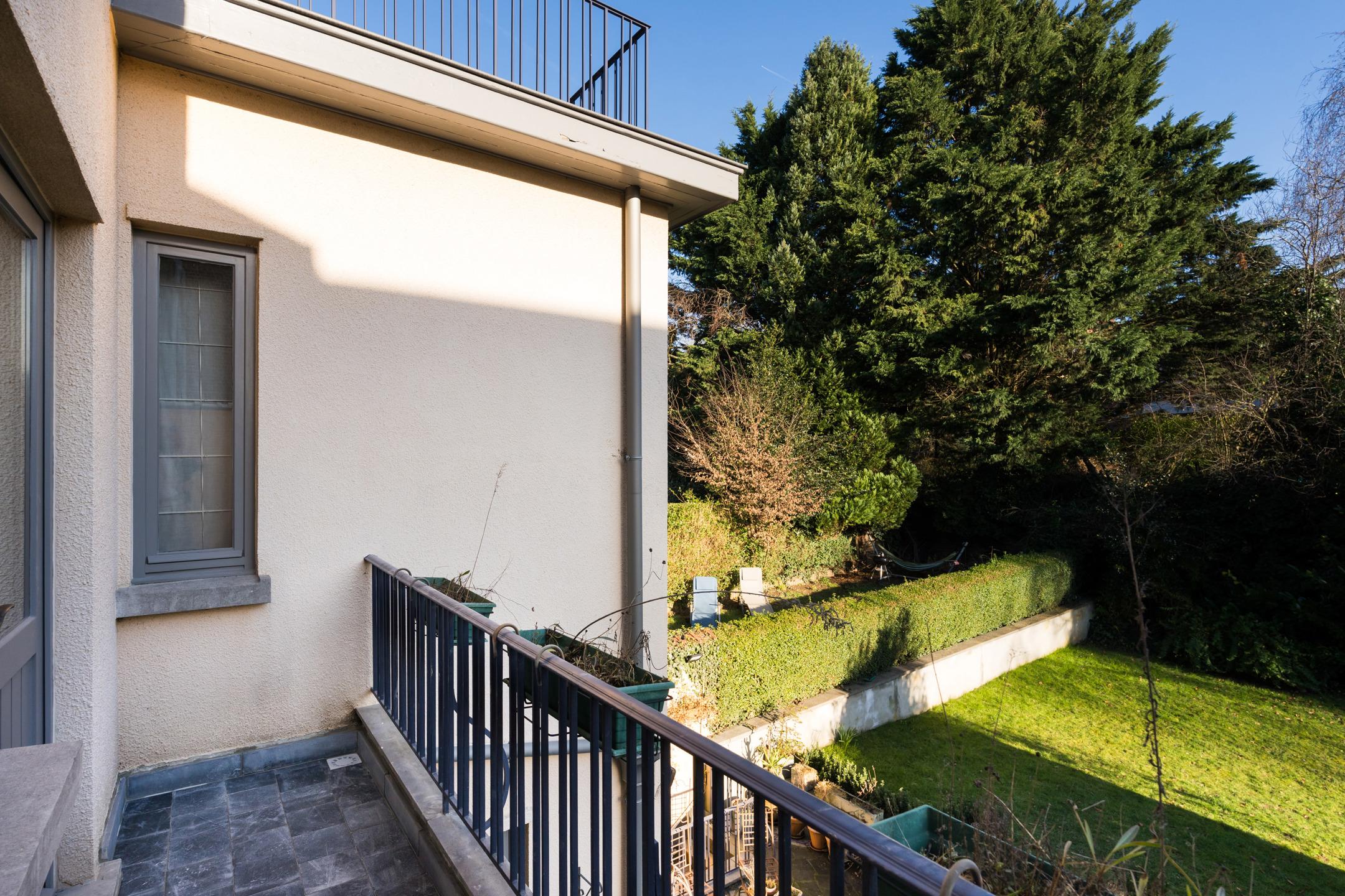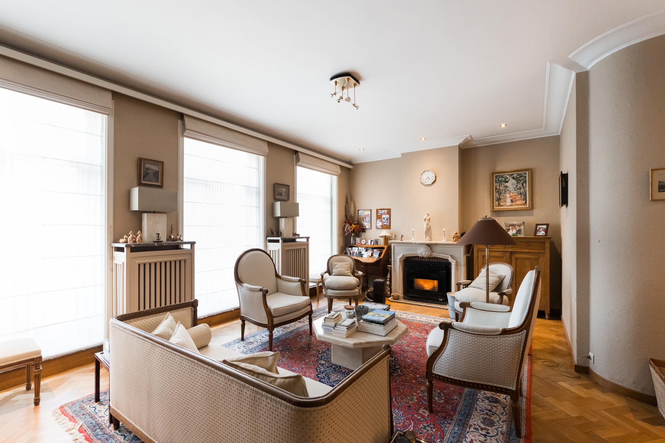 UCCLE - Parc de Wolvendael - Superb 2-façade HOUSE (7 bedrooms/5 bathrooms) Magnificent house of ± 263 m² (PEB), built in 1950 on a plot of ± 3a21ca. First floor: entrance hall with airlock, garage (remote-controlled door, recharging point), wine cellar and storage room, laundry room, access to garden. Garden level: 55 m² reception room with pellet stove, high ceilings on street side, separate fully-equipped kitchen with breakfast area, access to terrace and 195 m² ground-level garden (south-east). Separate WC. 1st floor: night hall, 2 bedrooms each with en-suite shower room, MasterBedroom with south-east terrace and en-suite bathroom. Separate WC. On the 2ᵉ floor: hall with fitted closets, 2 bedrooms with connecting shower, two further bedrooms (one with ± 8 m² South-East terrace), bathroom. Insulated attic (23 cm) with roof access. Also: double-glazed wooden windows, security door, alarm, compliant electricity, bi-hourly meters, photovoltaic panels, solar water heating panel, electric shutters. PEB D-. R.U. in progress. Discover it at L&P!