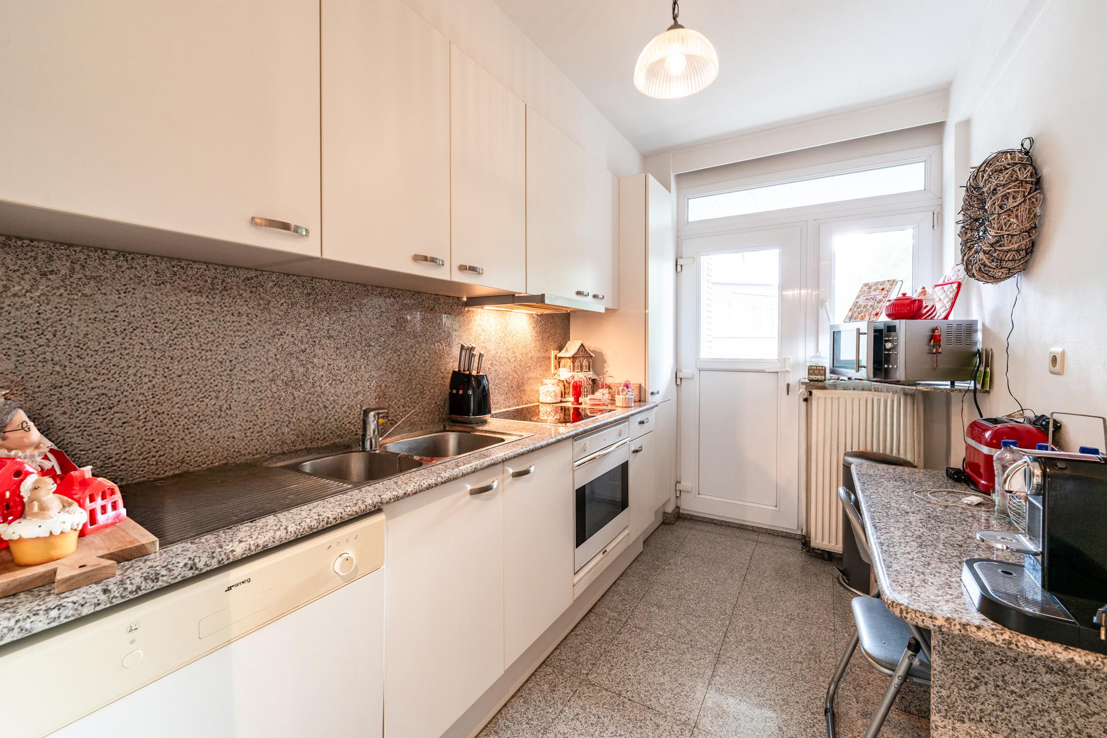 WOLUWE-SAINT-LAMBERT – Located in the immediate vicinity of Place Tomberg and all its amenities, attractive APARTMENT (2 bedrooms / 1 bathroom) of 80 m², situated on the 2nd floor of a small 4-storey building. It is composed as follows: entrance hall, spacious 29m² living room, fully equipped kitchen with access to the terrace, night hall with cupboard, separate toilet with hand basin, bedroom 1 of 12m², bedroom 2 of 13.5m², bathroom (bath/shower, 2 washbasins). Cellar. Garage box (+ €30,000). EPC D (178 kWh/m²/year). Non-compliant electricity. Individual gas condensing boiler VAILLANT. Charges: +/- €200/month (owner’s charges + common charges, excluding consumption and reserve fund). To be discovered without delay at L&P!