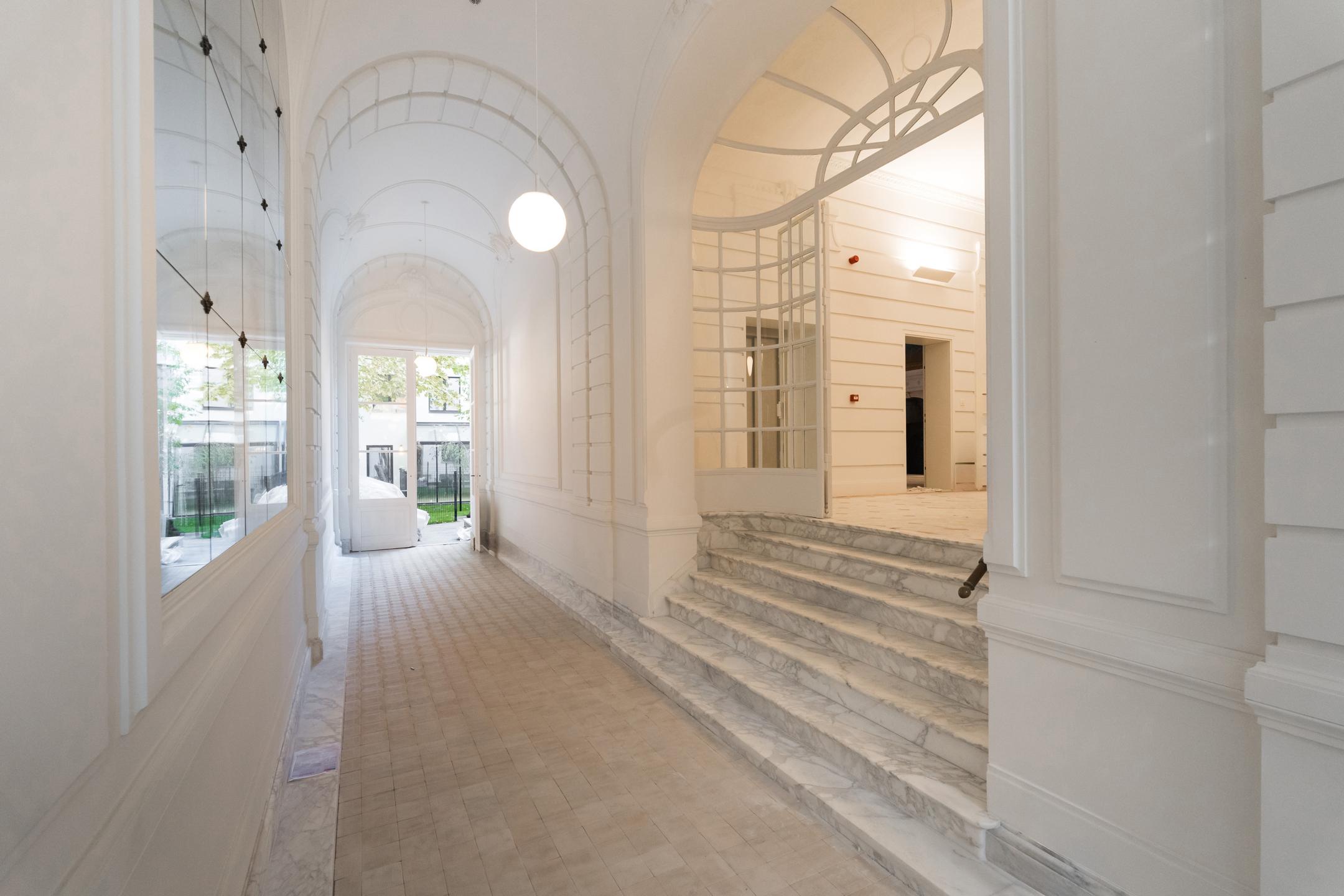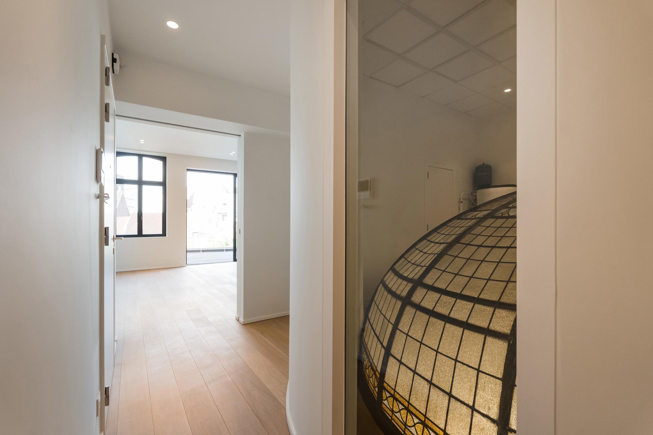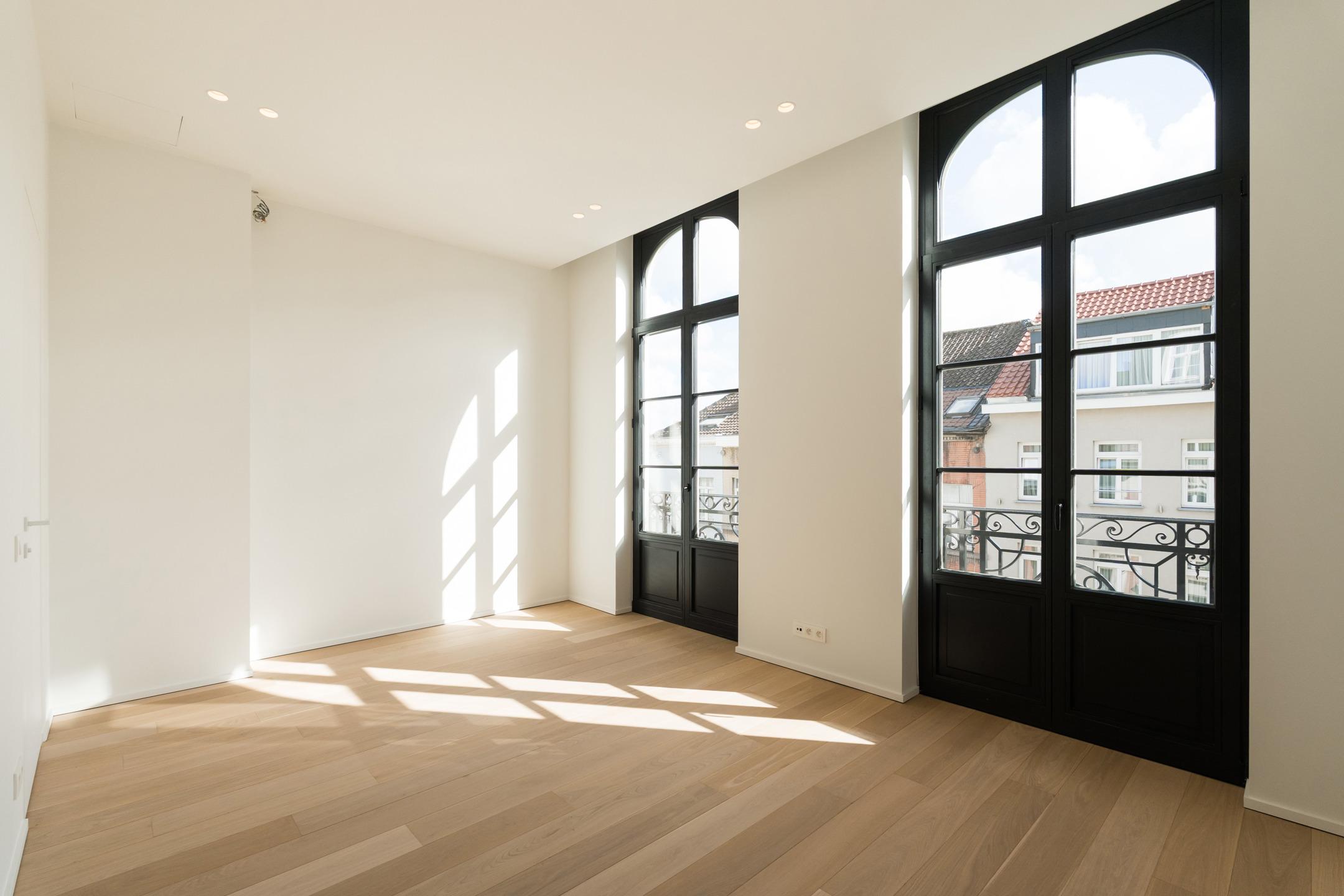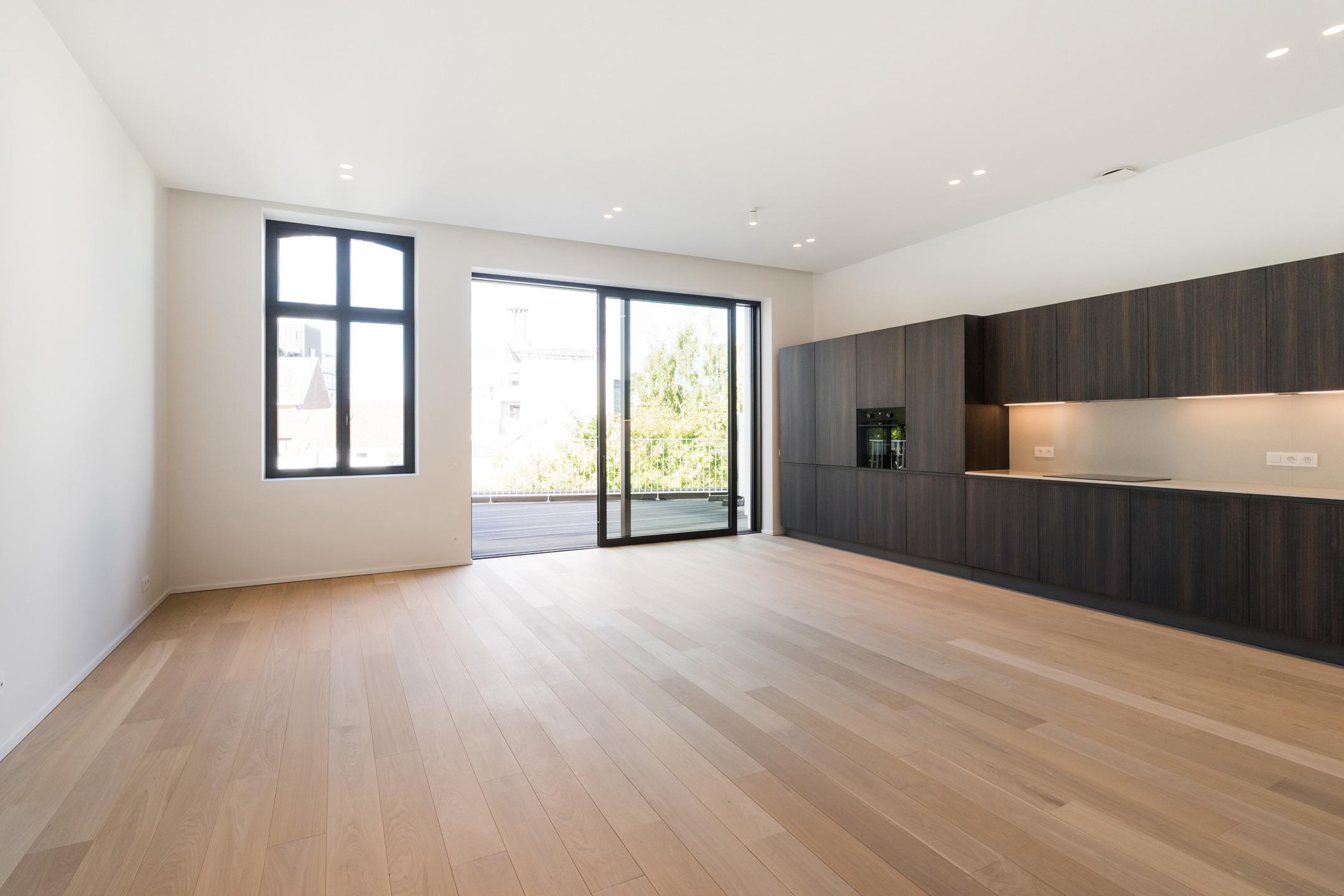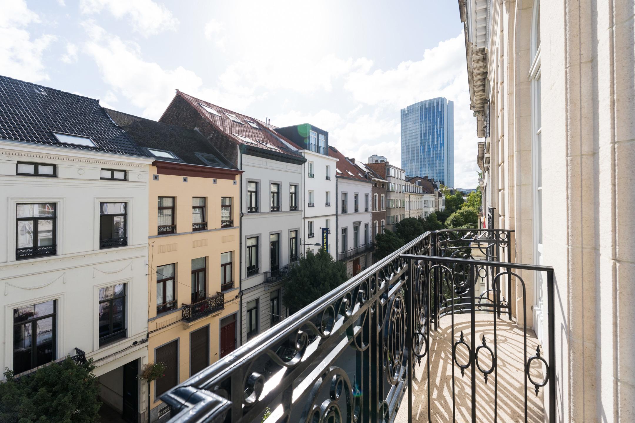 Located in the heart of Brussels, just steps from the Botanique and a few minutes from the European institutions, this stunning high-end APARTMENT (2bed/2shower) of 115 m² with a 9 m² terrace, is set within a REMARKABLE HISTORIC BUILDING that has undergone an extensive renovation. Located on the 2nd floor, it consists of an entrance hall with a cloakroom area, a beautiful 42 m² living room with fully equipped open kitchen opening onto the west-facing terrace. Two bedrooms (16 and 12 m²) each with its own en-suite shower room. A separate toilet, a laundry room and a technical room. Elegantly combining the timeless charm of period architecture (majestic hall, stained-glass dome, high ceilings, moldings...) with the latest comfort and performance technologies (solar panels, low-consumption heat pumps, underfloor heating, acoustic floors...), this apartment stands out for the impeccable quality of its renovation and its top-of-the-range features. It benefits from luxurious finishes designed down to the smallest detail: custom-made fittings and a refined atmosphere, for a uniquely comfortable daily life. EPC : B+. CELLAR INCLUDED. Sale under registration duties (12.5%). A rare opportunity to discover at L&P!