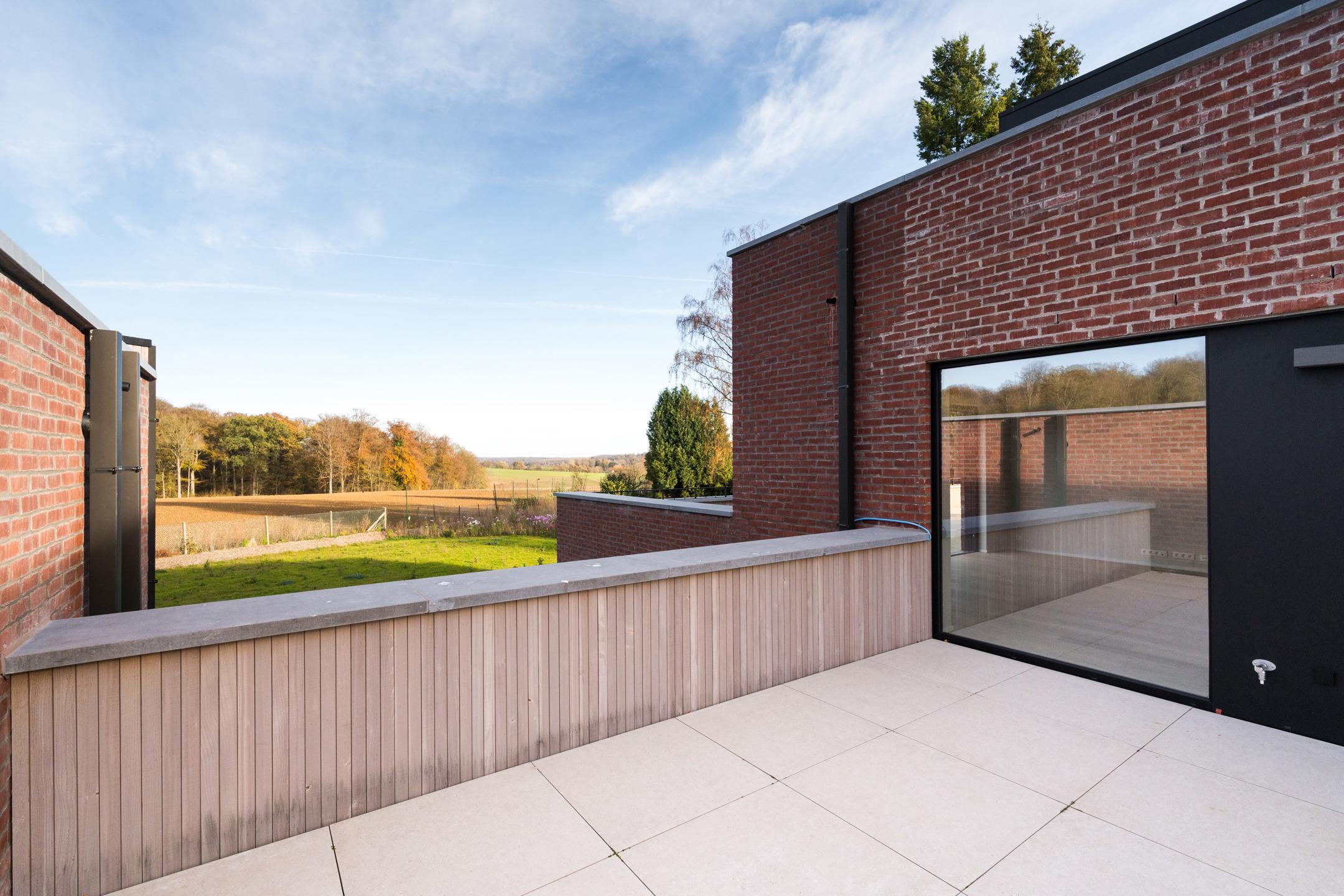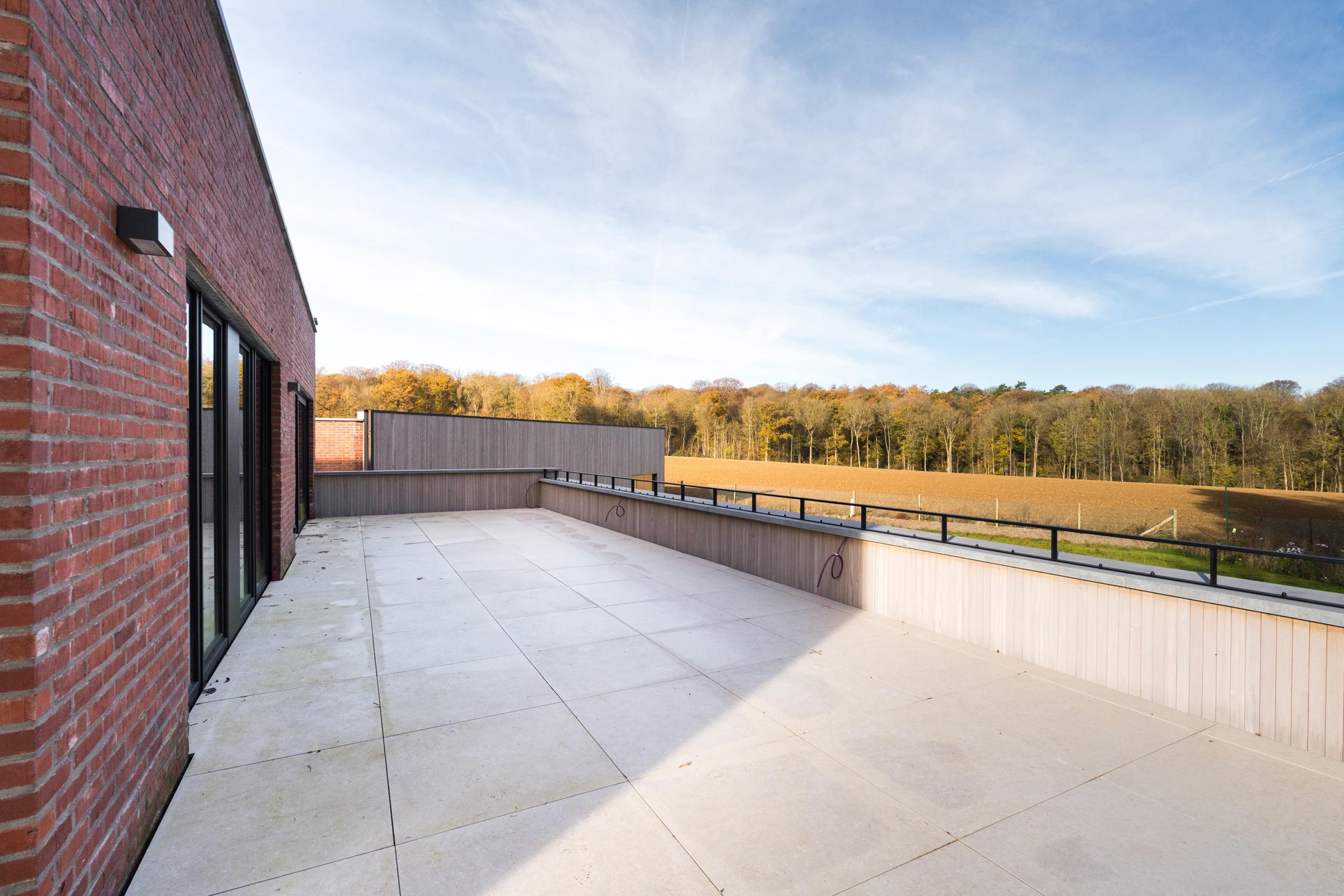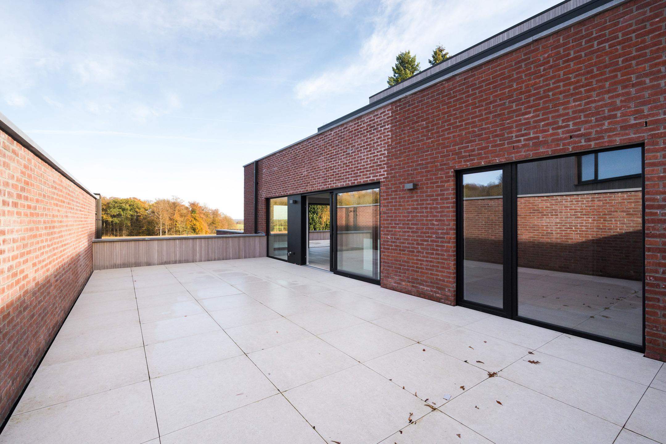 CHAUMONT-GISTOUX – Ideally located just a few minutes from Wavre and Louvain-la-Neuve and in the immediate vicinity of all amenities (organic shop “La Biosphère” at the foot of the building, bakery, supermarket, future Saint-Pierre clinic), beautiful NEW HIGH-STANDING APARTMENT (3bed/2shower) of 148 m² and its 145 m² TERRACES offering an EXCEPTIONAL UNOBSTRUCTED VIEW over the surrounding countryside. Located on the 1st floor, it consists of an entrance hall with built-in closet, guest toilet and laundry room, a 46.6 m² living room with fully equipped open kitchen opening onto the 2 terraces, a 22 m² master bedroom with access to the west-facing terrace and an adjoining shower room (double sink, shower, toilet), two other 13.6 m² bedrooms opening onto the rear terrace, a shower room (double sink, shower) and a 5 m² external storage room. The apartment offers HIGH-END FEATURES (armored entrance door, custom-made closets, underfloor heating, Miele appliances, …) and is part of a small co-ownership designed according to low-energy consumption criteria (solar panels, heat pumps, optimal insulation), ensuring optimal comfort and reduced environmental impact. EPC A. Cellar and garage at extra cost. Sale of the land under the registration tax regime (12.5%) and the constructions under the VAT regime (21%). To discover at L&P!
