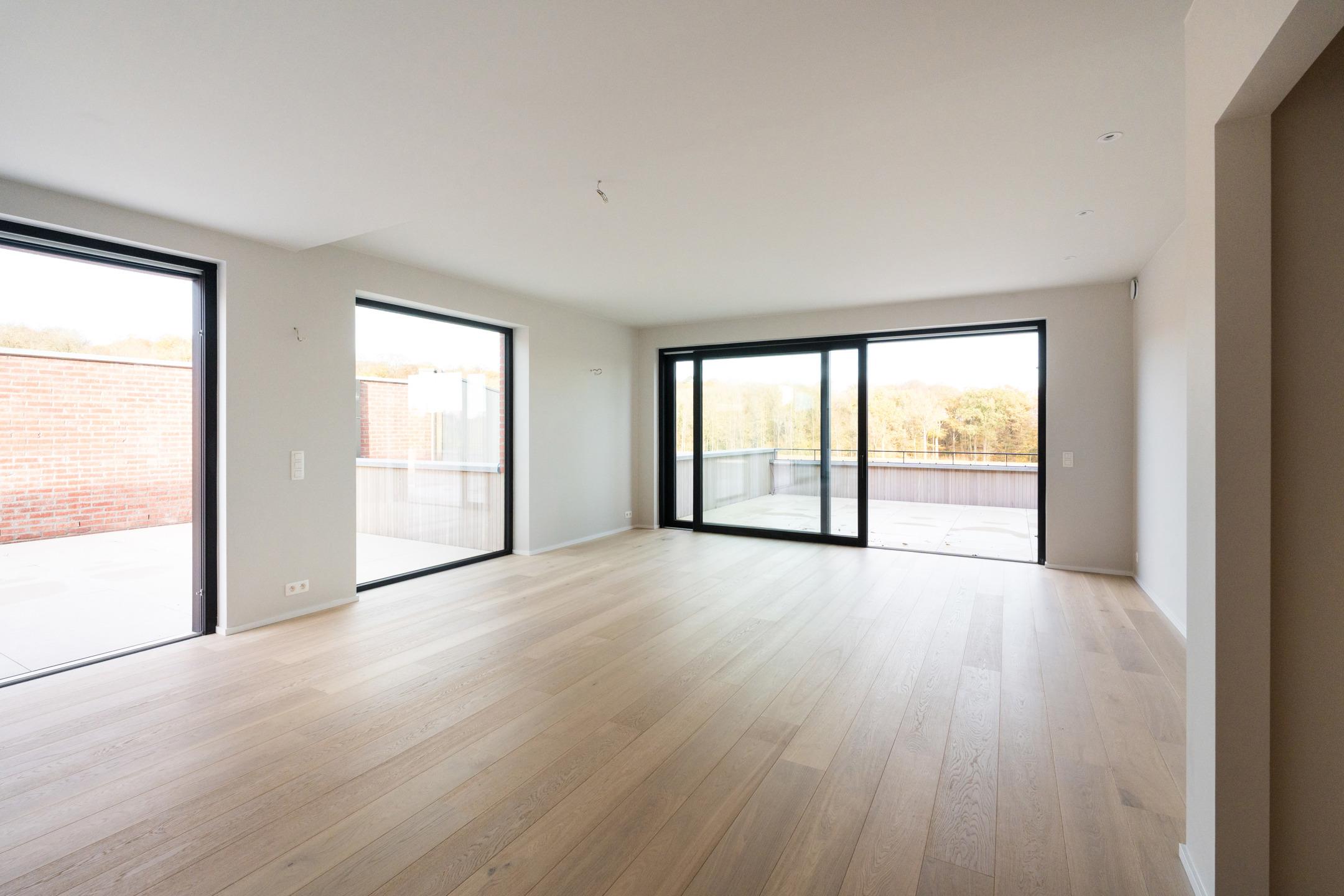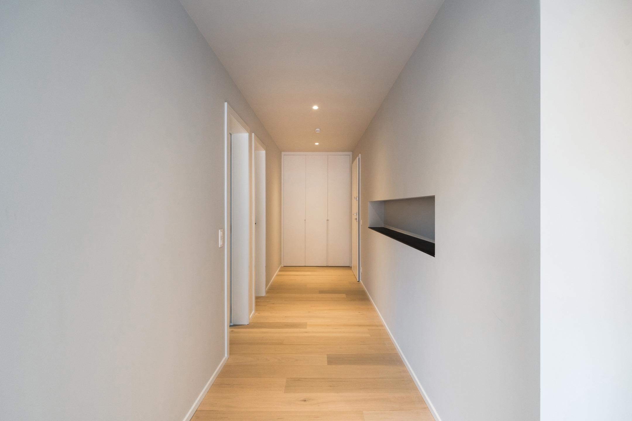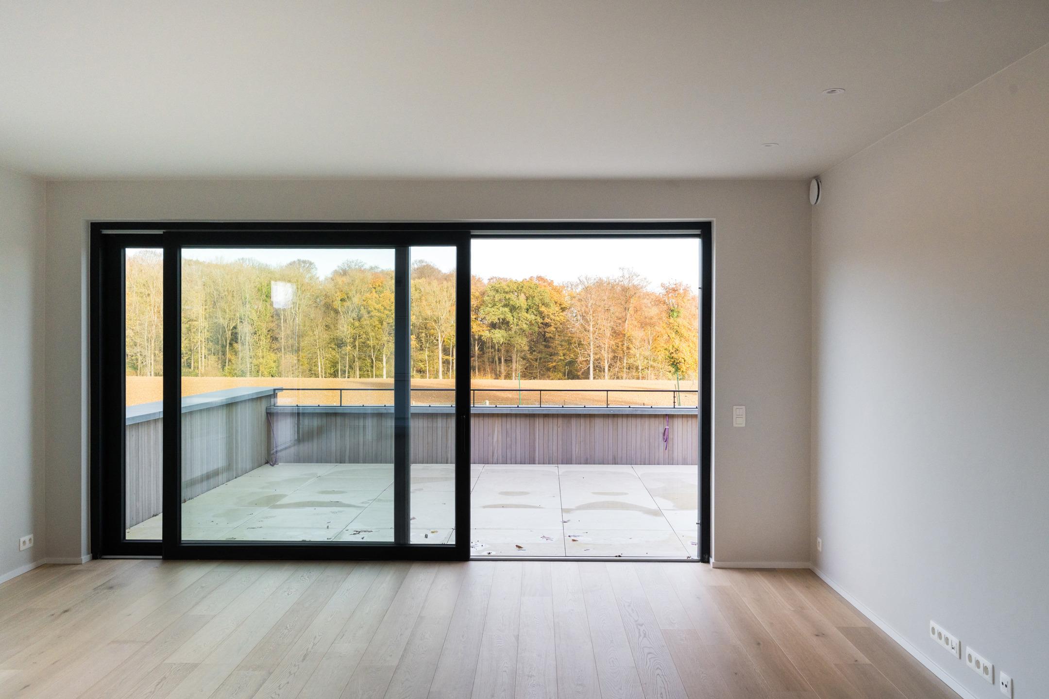 CHAUMONT-GISTOUX – Ideally located just a few minutes from Wavre and Louvain-la-Neuve and in the immediate vicinity of all amenities (organic shop “La Biosphère” at the foot of the building, bakery, supermarket, future Saint-Pierre clinic), beautiful NEW HIGH-STANDING APARTMENT (3bed/2shower) of 148 m² and its 145 m² TERRACES offering an EXCEPTIONAL UNOBSTRUCTED VIEW over the surrounding countryside. Located on the 1st floor, it consists of an entrance hall with built-in closet, guest toilet and laundry room, a 46.6 m² living room with fully equipped open kitchen opening onto the 2 terraces, a 22 m² master bedroom with access to the west-facing terrace and an adjoining shower room (double sink, shower, toilet), two other 13.6 m² bedrooms opening onto the rear terrace, a shower room (double sink, shower) and a 5 m² external storage room. The apartment offers HIGH-END FEATURES (armored entrance door, custom-made closets, underfloor heating, Miele appliances, …) and is part of a small co-ownership designed according to low-energy consumption criteria (solar panels, heat pumps, optimal insulation), ensuring optimal comfort and reduced environmental impact. EPC A. Cellar and garage at extra cost. Sale of the land under the registration tax regime (12.5%) and the constructions under the VAT regime (21%). To discover at L&P!