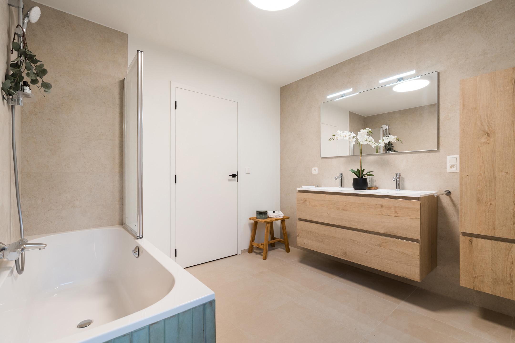 WAVRE - Quatre Sapins - Magnificent new 221 m² VILLA (4 bedrooms/2 bathrooms/convertible attic) set on 9 ares 57 ca of land. Perfectly oriented, this villa offers quality services. It comprises Ground floor: Entrance hall with cloakroom and guest toilet, large 45 m² living room with access to the garden, spacious fully-equipped kitchen, garage for one car and outside parking space. First floor: master bedroom with en-suite bathroom (bath - wc), 3 good-sized bedrooms (13 to 14 m²), shower room. Attic: large 70 m² attic. Heat pump with underfloor heating, photovoltaic panels, rainwater tank. Sale subject to registration fees and VAT. Find out more at L&P.