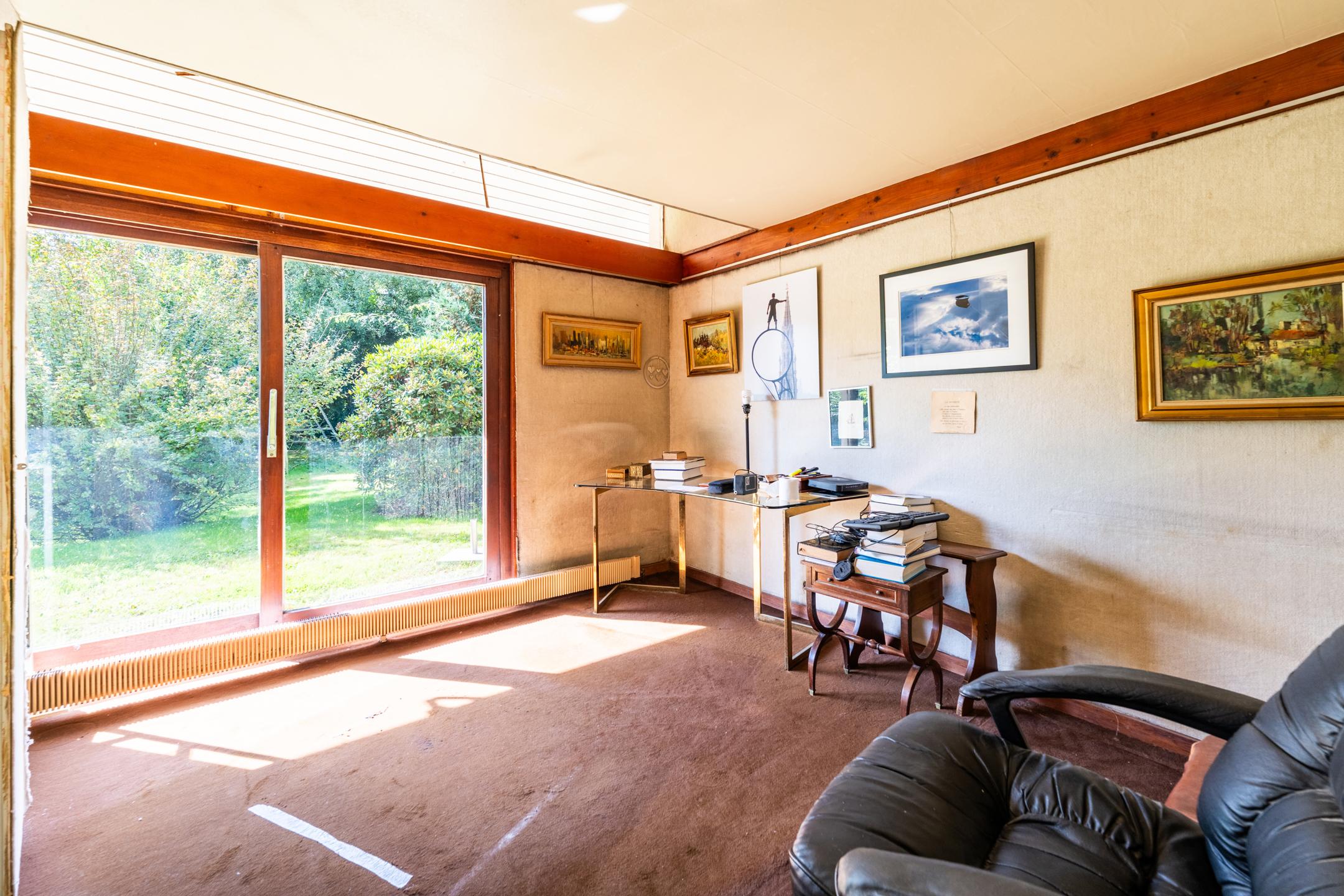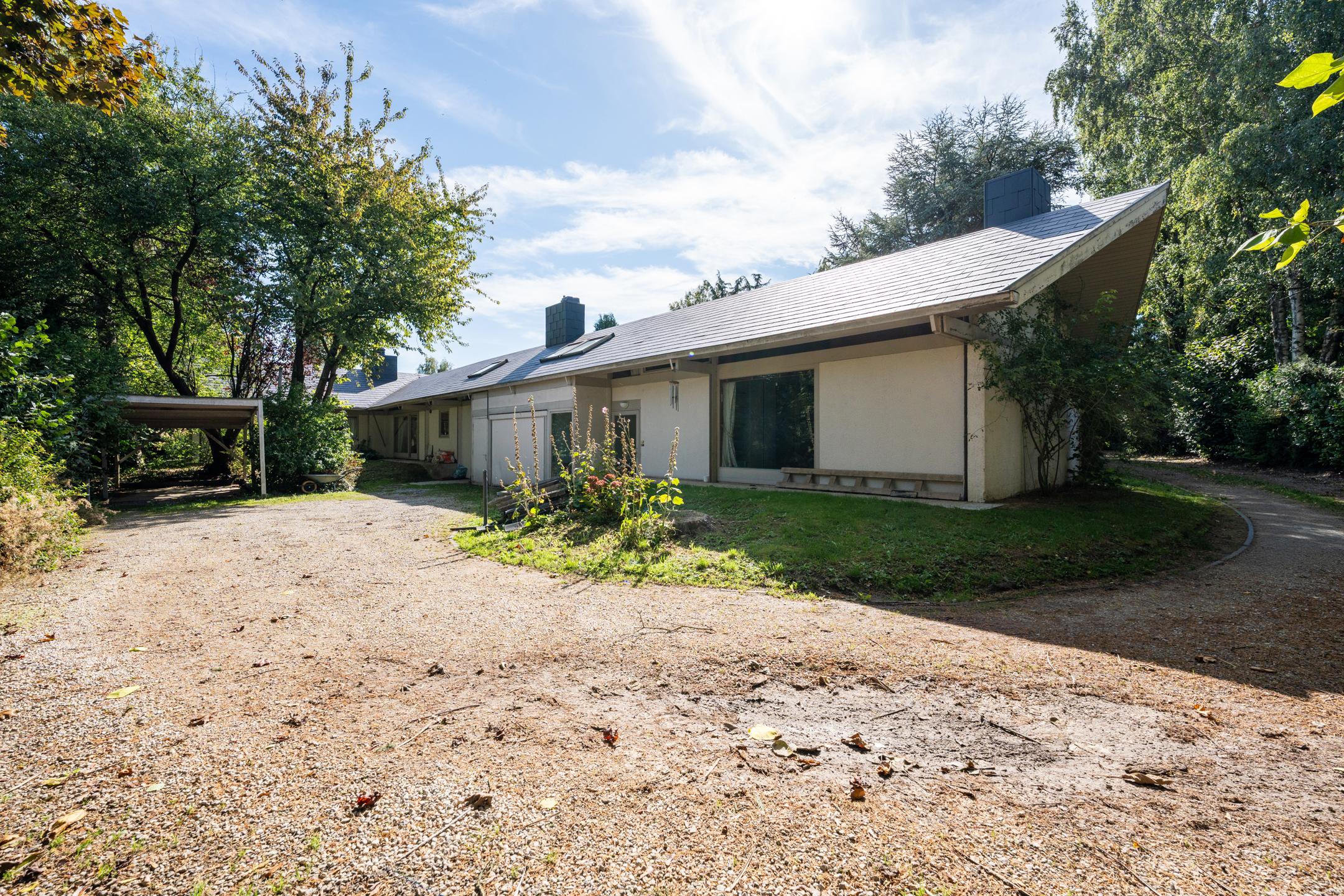 GENAPPE – Domaine 1815, Stunning single-storey VILLA (5BED/3BATH/GARAGE) of ± 320 m² designed by architect Baudouin Libbrecht. Built in 1973, this villa on a back plot with magnificent volumes is a true work of art, nestled in a lush green setting of 30 ares 60 ca. You will appreciate the use of fine materials, the garage, the wrap-around terrace, and the potential for a professional space.