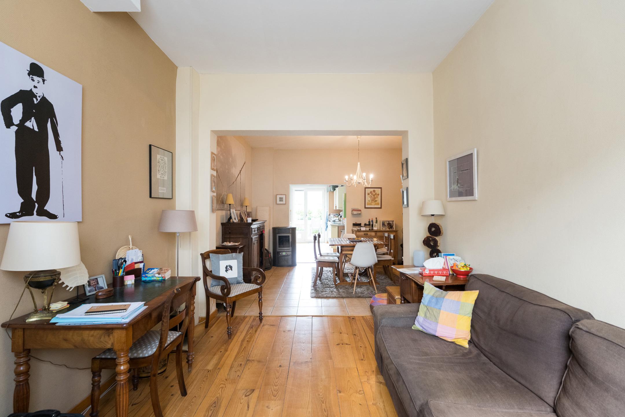 WOLUWE-SAINT-ETIENNE - Close to all amenities and access to the Ring - HOUSE (4bed/2bath) of +- 150m² living space with attractive rear GARDEN. First floor: entrance hall, living and dining room with pellet stove, fitted kitchen with access to terrace and garden facing northeast, bathroom (bath, washbasin) and toilet. 1st floor: staircase hallway, 2 bedrooms, one with toilet. 2nd floor: night hall, 3rd bedroom, attic converted into bedroom 4 with en-suite shower room + toilet and mezzanine. Basement: storage cellar with water softener, boiler room and laundry room. Discover it now at Latour & Petit.