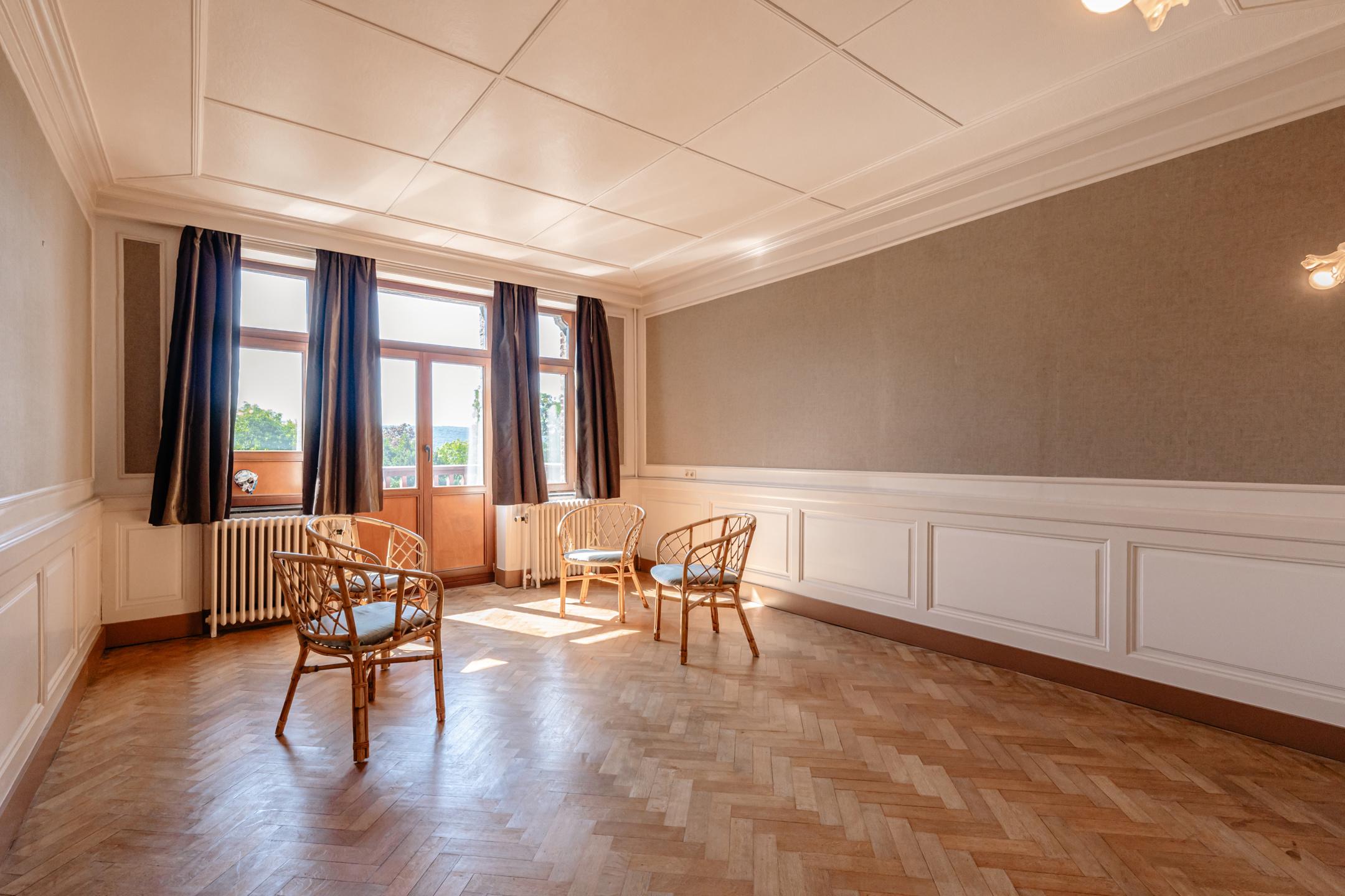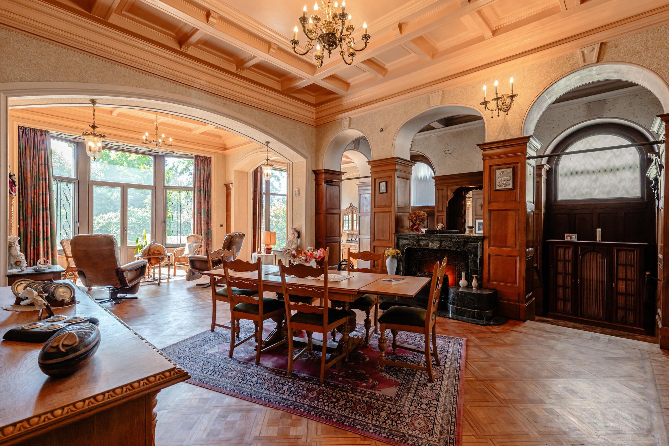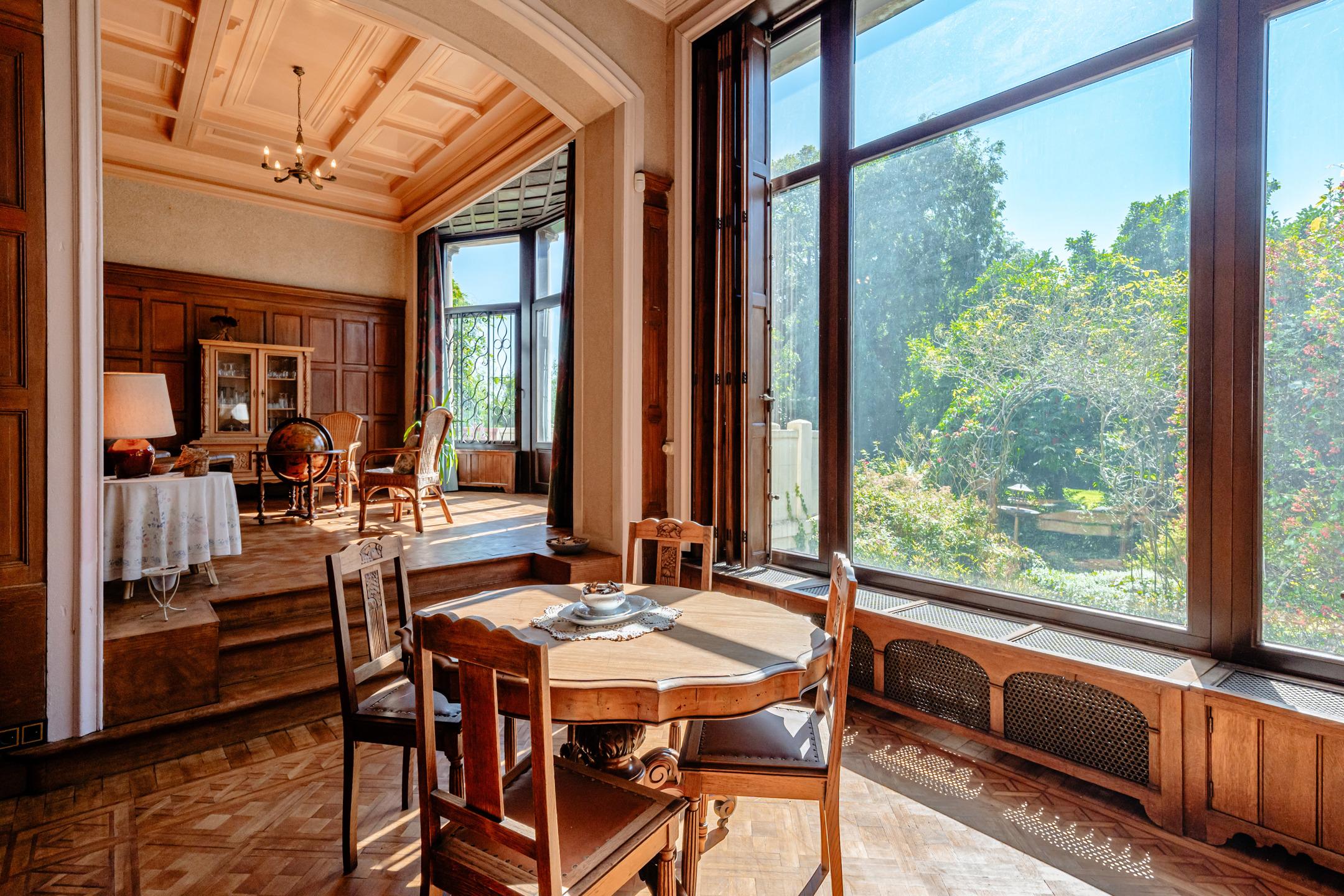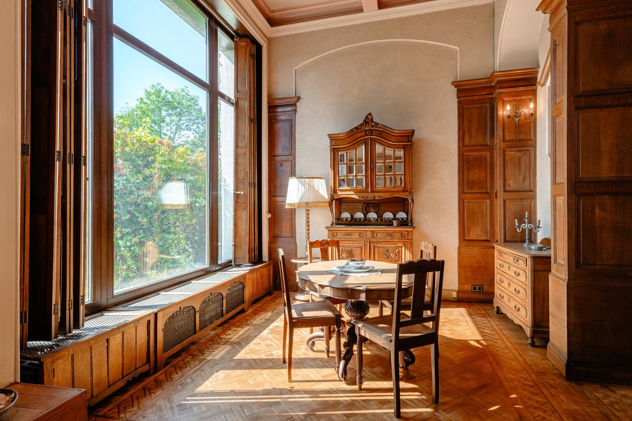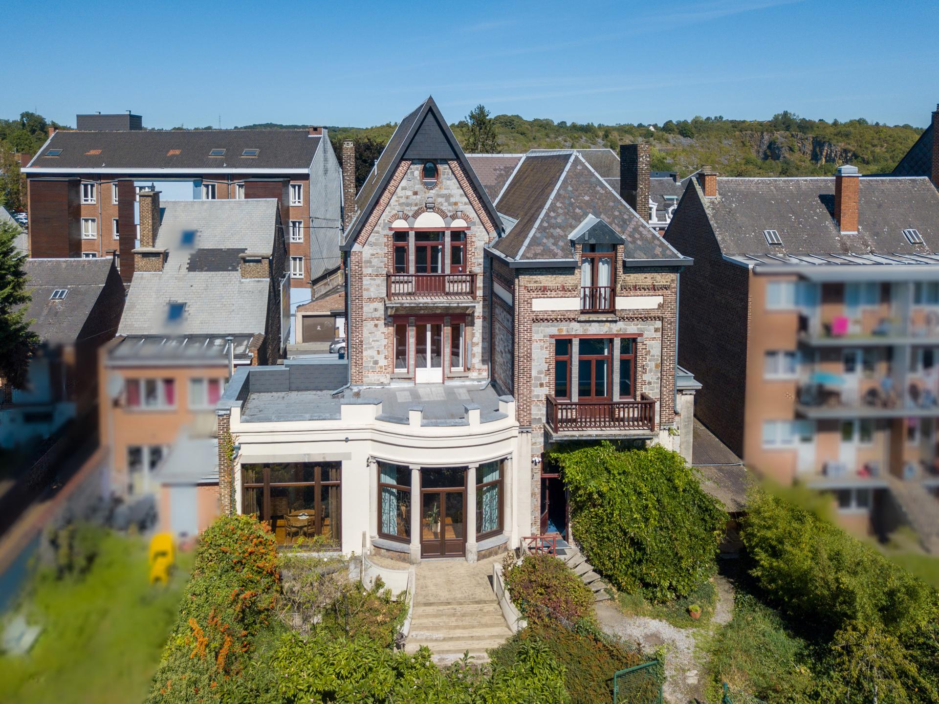 NAMUR, close to all amenities, superb VILLA (6 bedrooms + offices/2 bathrooms) built on a lovely 52.88-acre plot. The villa has five floors, offering over 500m² of living space. The mezzanine floor offers an entire level designed for one or more professional practices (with separate access). The first half-level houses an old kitchen with a covered area (potential pantry). The ground floor features a magnificent living room with an office/small lounge on the street side, with large doors that can be used to separate the room if desired. This floor also has a spacious entrance hall with separate WC, cloakroom and a superb wooden staircase, as well as a large solid oak kitchen with dining area. On the first floor, the landing leads to a games room, two comfortable bedrooms, a laundry room, a toilet and a master suite with dressing room and bathroom. The second floor, accessible via the same beautiful staircase, has three additional beautiful bedrooms, complemented by a shower room and a room that could be used as a third bathroom. A final flight of stairs leads to a loft with a period ceiling and parquet flooring. Nestled in the town centre, the building also enjoys a park of around 50 acres, featuring several cascading ponds, a gazebo, and attractive lawned and wooded areas. PEB E - 407 kWh/m² per year - 285,069 kWh per year - No. 20230907001630. To be discovered at LP on 081 303 404.