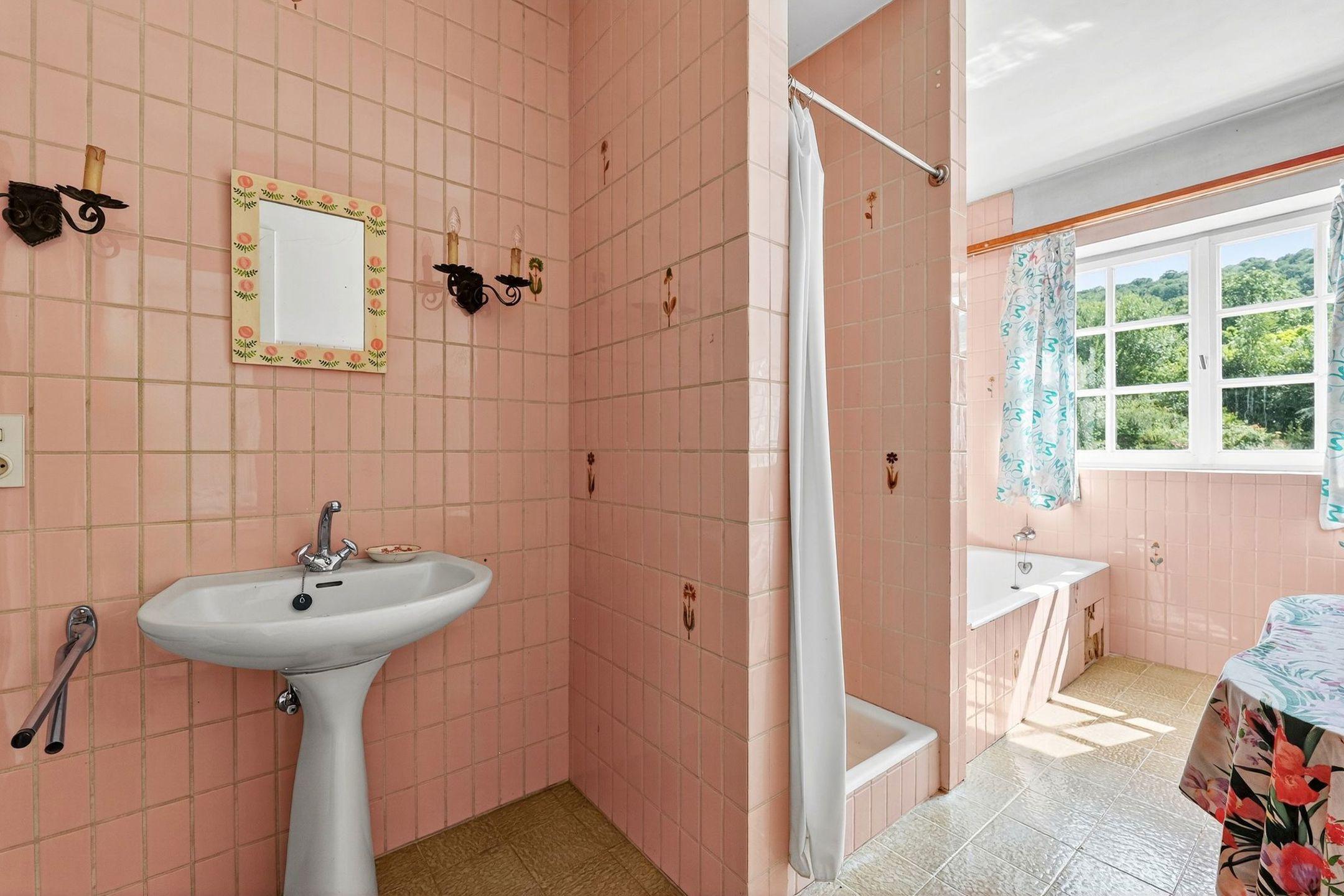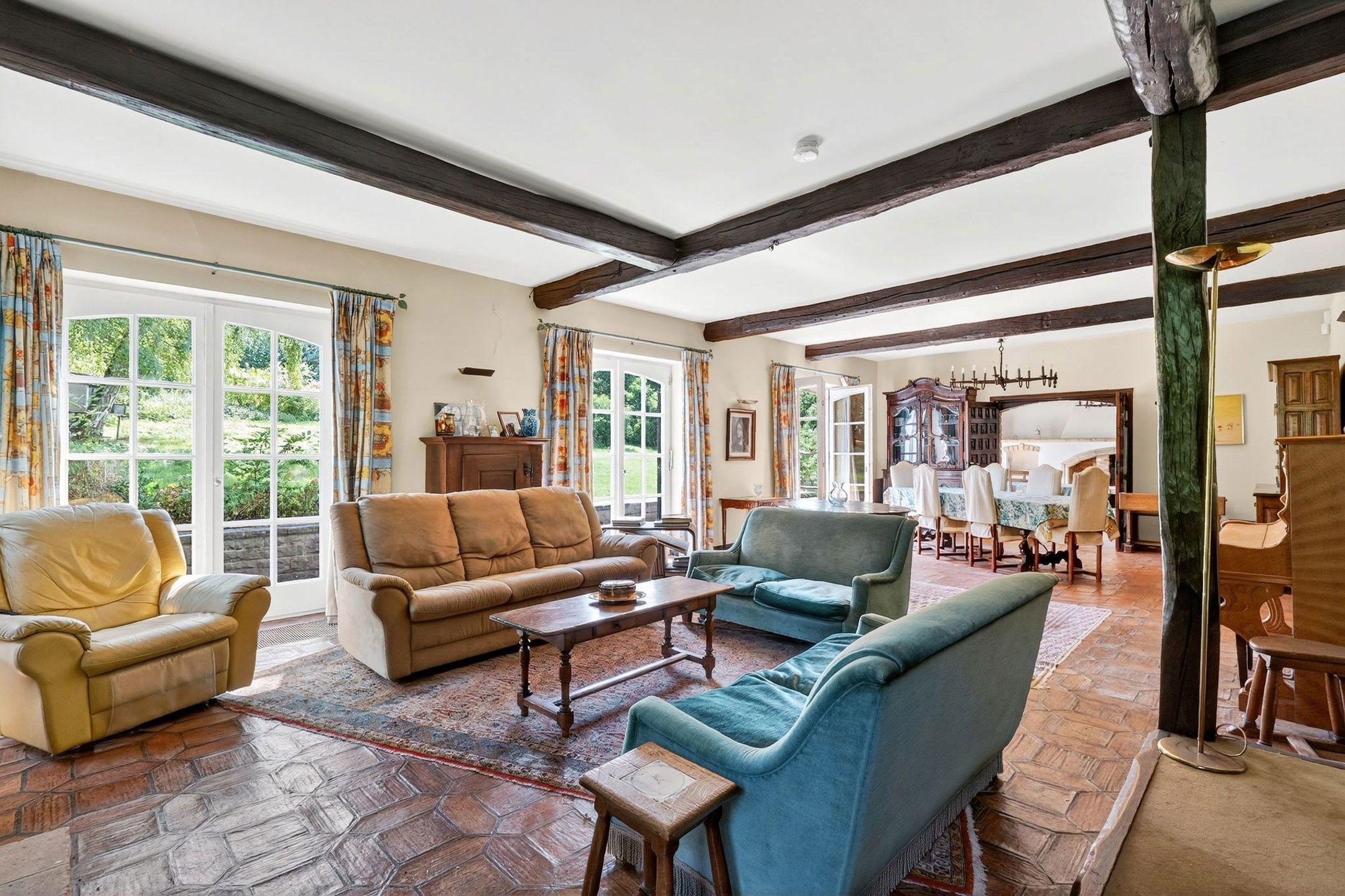 PROFONDEVILLE, in a peaceful setting, superb VILLA (7 bedrooms+office/2 bathrooms) built in 1971 on a pretty plot of 30.94 ares. The villa is now built on four levels, offering around 700 m² of built area, offering numerous project possibilities. The ground floor comprises a spacious entrance hall with wardrobe area and separate toilet, a study, a superb living room and dining room, both benefiting from an open fire, a large kitchen and a utility room. Directly adjoining the house is a beautiful double garage accessible from the kitchen. On the first floor, a vast landing and a night hall lead to a storeroom, a W.C., 6 bedrooms, 5 with washbasins, one with a shower and washbasin, and a master suite with its own bathroom. A trapdoor on the second landing provides access to a superb attic, which could potentially be converted, and covers more than one hundred square metres of sound, insulated space with a decent ceiling height despite the attic. The basement covers part of the house and houses the boiler room and storage space. The property sits on a plot of more than 30 ares, with a driveway leading to the garages, a swimming pool, terraces and a beautiful garden. Possibility of purchasing 1 or 2 additional 13-acre plots. PEB E - 398 kWh/m².an - 165 159 kWh/year - N°20231001006260. Find out more at Latour & Petit on 081/303.404!