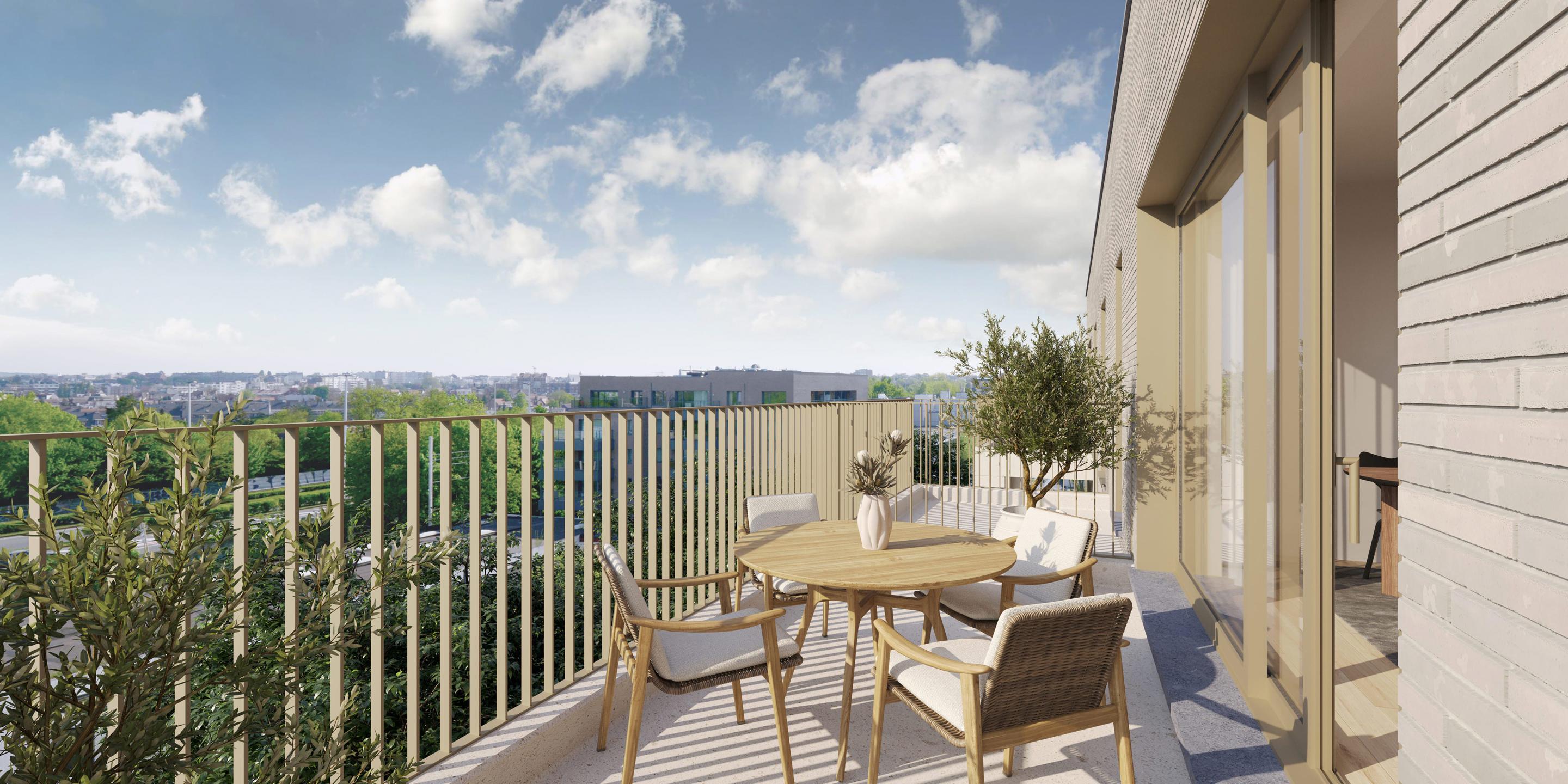 EVERE, à la lisière de Woluwe-St-Lambert, dans un quartier dynamique et en plein essor, magnifique APPARTEMENT NEUF (1ch/1sdd) de 73 m² avec une TERRASSE de 14 m² orientée sud-ouest et un beau JARDIN COMMUN. Situé au 1er étage, il se compose d'un hall d'entrée avec espace vestiaire et WC séparé. Séjour de 31 m² avec cuisine ouverte super équipée donnant accès à la terrasse. Chambre de 14 m², salle de douche (lavabo, douche) et une buanderie. Idéalement situé, l'appartement bénéficie d'un accès direct à de nombreuses facilités : OTAN, E40, Ring, aéroport, bus, tram, gare, commerces, écoles, parcs et centres sportifs, offrant un cadre de vie pratique et agréable. Performance énergétique avancée et accent mis sur la durabilité grâce à ses équipements (panneaux solaires, chauffage par le sol, pompes à chaleur, ventilation double flux, etc.). PEB A. Cave incluse et parking obligatoire en supplément. Local commun sécurisé pour les vélos et vélos-cargo. Vente du terrain sous le régime des droits d'enregistrement (12,5%) et des constructions sous le régime de la TVA (21%). Possibilité de TVA à 6%, sous conditions. A découvrir chez L&P !