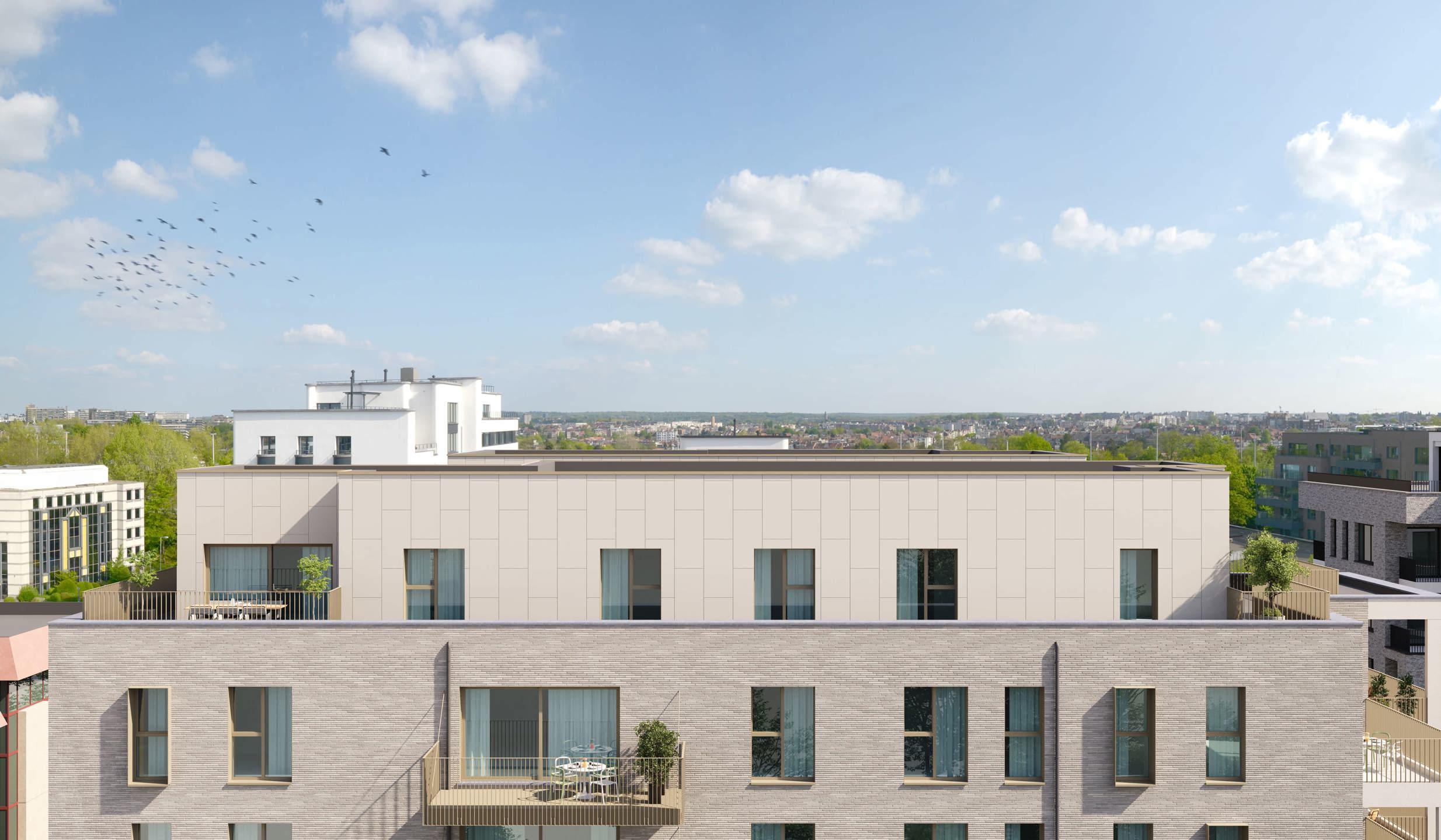 EVERE, à la lisière de Woluwe-St-Lambert, dans un quartier dynamique et en plein essor, magnifique PENTHOUSE NEUF (2ch/1sdb/1sdd) de 124,5 m² avec une vaste TERRASSE en "U" de 46,8 m² et un beau JARDIN COMMUN. Situé au 5ème étage, il se compose d'un hall d'entrée avec espace vestiaire et WC, un grand séjour traversant de 40 m² avec cuisine ouverte super équipée donnant accès à la terrasse. Une chambre parentale de 17,7 m² et sa salle de bain attenante (double lavabo, bain), une seconde chambre de 10,9 m² avec salle de douche attenante (lavabo, douche) et une grande buanderie. Idéalement situé, l'appartement bénéficie d'un accès direct à de nombreuses facilités (OTAN, E40, Ring, aéroport, bus, tram, gare, commerces, écoles, parcs et centres sportifs), offrant un cadre de vie pratique et agréable. Performance énergétique avancée et accent mis sur la durabilité grâce à ses équipements (panneaux solaires, chauffage par le sol, pompes à chaleur, ventilation double flux, etc.). PEB A. Cave incluse et parking obligatoire en supplément. Local commun sécurisé pour les vélos et vélos-cargo. Vente du terrain sous le régime des droits d'enregistrement (12,5%) et des constructions sous le régime de la TVA (21%). Possibilité de TVA à 6%, sous conditions. A découvrir chez L&P !