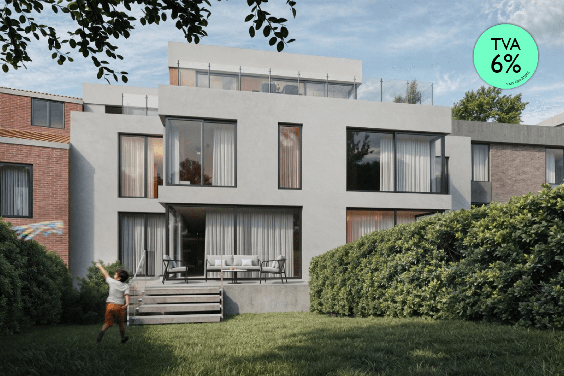 UCCLE - Dans un quartier résidentiel calme et verdoyant à proximité de nombreuses facilités (trams, bus, gare, commerces, écoles, parcs et infrastructures sportives), le projet "Résidence Renata" vous propose 4 LUXUEUX APPARTEMENTS (2 à 3 chambres) de 109 à 182 m², disposant chacun d'une ou plusieurs TERRASSES et/ou d'un JARDIN PRIVATIF ainsi que d'un JARDIN COMMUN. Situé en retrait de la voirie tout en restant parfaitement connecté à la vie urbaine, ce projet allie tranquillité et accessibilité. Chaque unité de ce petit immeuble contemporain a été conçu avec qualité pour offrir confort, luminosité et fonctionnalité, avec une attention particulière portée à la durabilité et aux performances énergétiques (GEOTHERMIE, PANNEAUX SOLAIRES, DOUBLE FLUX). PEB A. Cave incluse. Emplacement de parking en supplément. Local vélos. Vente du terrain sous le régime des droits d'enregistrement (12,5%) et de la construction sous le régime TVA (21%). Possibilité de TVA REDUITE à 6% SUR LA QUOTE-PART "CONSTRUCTIONS" sous conditions! A découvrir chez L&P!