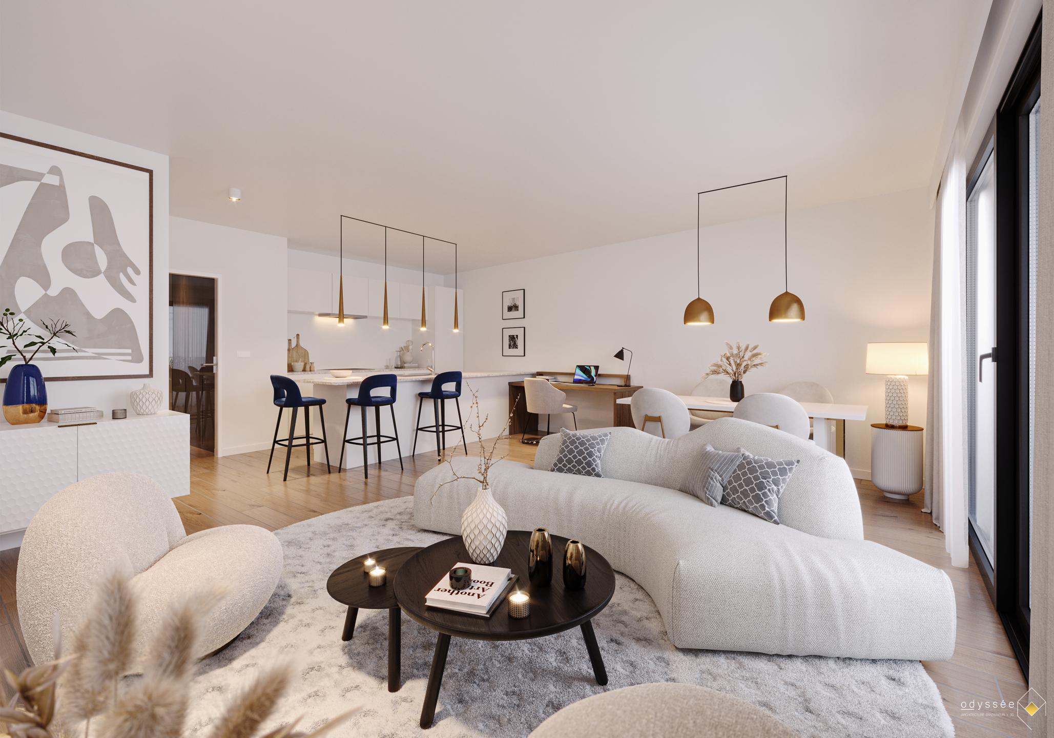 WOLUWE-SAINT-LAMBERT, en bordure d'une zone verte et proche de toutes les facilités (commerces, écoles fr/nl, infrastructures sportives, transports en commun, proximité du Ring et de la E40,...), le projet "TOMOWO" vous propose un magnifique APPARTEMENT NEUF (2ch/1sdb/1sdd) de 98 m² jouissant d'une belle TERRASSE. Situé au cinquième étage, il se compose d'un hall d'entrée avec espace vestiaire, WC et local technique/buanderie. Un séjour lumineux de 28 m² s'ouvrant sur la terrasse et une cuisine ouverte super-équipée. Un hall de nuit, une grande chambre avec salle de douche (lavabo, douche, WC) attenante, une seconde chambre et une salle de bain (lavabo, bain). En plus d’une situation exceptionnelle sur les hauteurs de Woluwe, ce projet vous séduira par sa qualité de construction et le soin particulier attaché aux finitions intérieures qui combleront les plus exigeants. Excellentes performances au niveau énergétique. Cave et parking en supplément. PEB: A-. Vente sous le régime des droits d'enregistrements (12,5 %) sur la valeur terrain et de la TVA (21%) sur les constructions. A découvrir chez L&P !