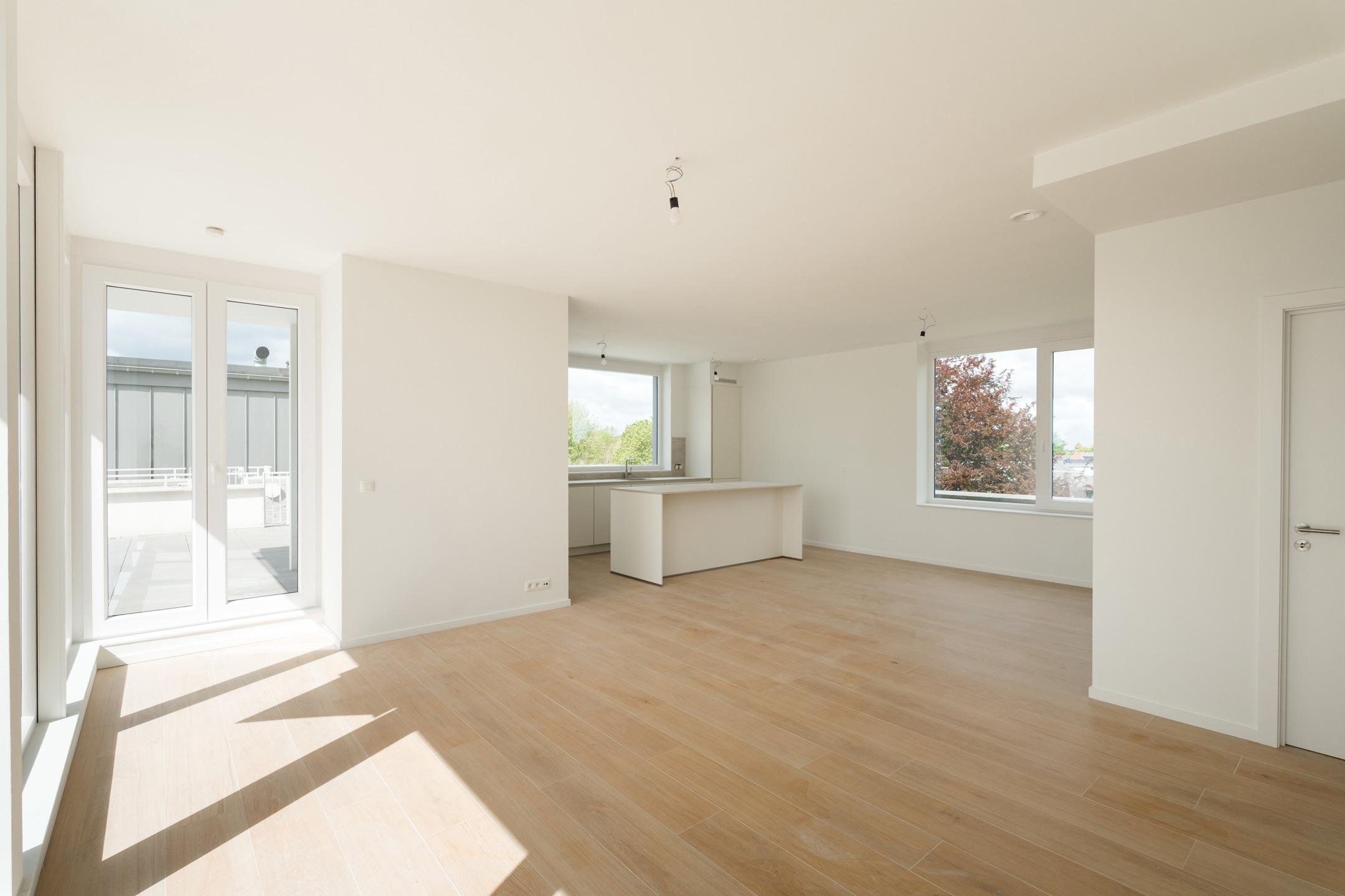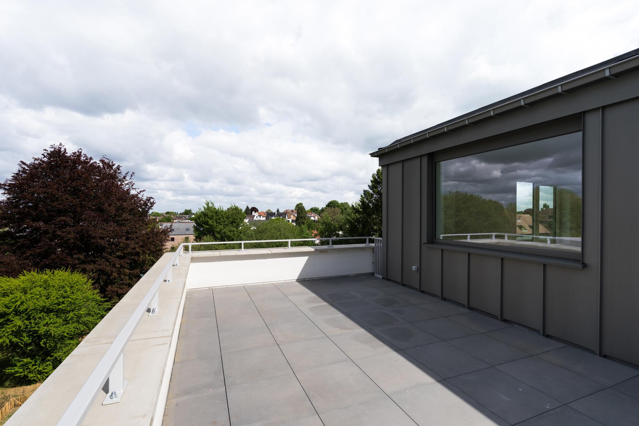 WATERLOO - idéalement situé à 200 m du centre ville et 850 m de la gare et à proximité de nombreuses facilités (écoles, commerces, salles de sport, restaurants), magnifique PENTHOUSE NEUF (3ch/1sdb/1sdd) de 130,50 m² avec 64,20 m² de TERRASSE. Il donne aussi accès à un joli JARDIN COLLECTIF de 20 ares. Situé au troisième étage, il se compose d'un hall d'entrée avec un WC invités. Un beau living lumineux avec une cuisine ouverte super équipée (avec îlot central) s'ouvrant sur la terrasse principale. Une buanderie séparée. Une suite parentale s'ouvrant sur la seconde terrasse avec espace dressing et salle de douche attenante (double lavabo, douche, WC). Deux autres chambres et une salle de bain (lavabo, bain). Architecture contemporaine, finitions intérieures de qualité et matériaux de construction garantissant un niveau élevé d'isolation thermique et acoustique. Achat de 2 parkings et 1 cave requis en supplément. Vente du terrain sous le régime des droits d'enregistrement (12,5%) et de la construction sous le régime TVA (21%*). Possibilité de TVA à 6%. PEB B. A découvrir sans attendre chez L&P !