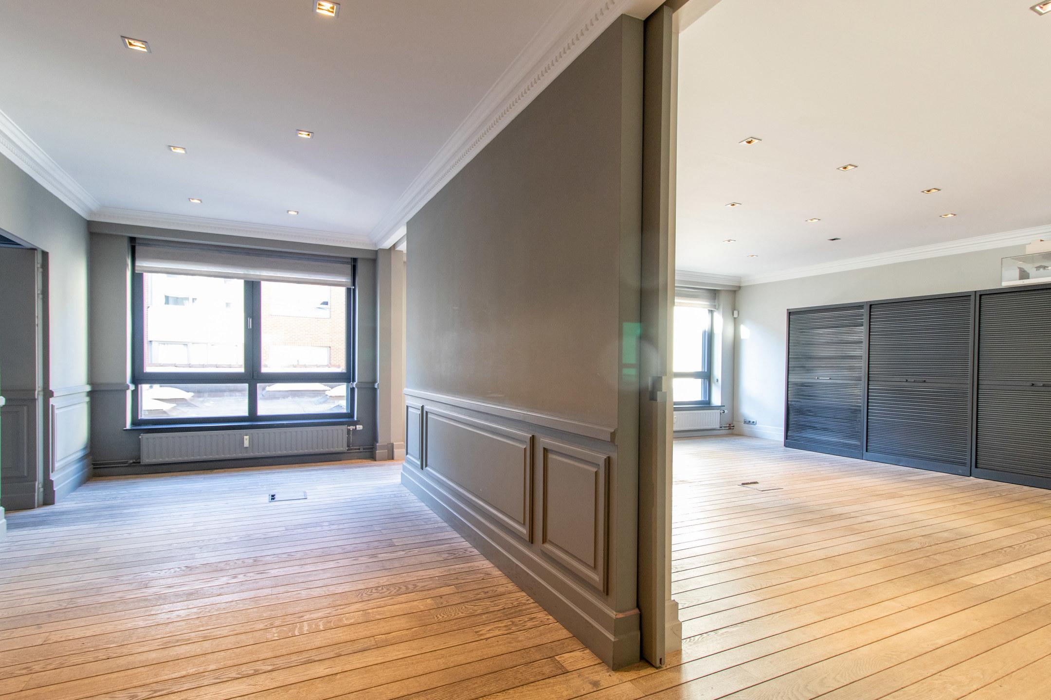 BRUXELLES, quartier Louise / Sablon. BUREAUX de ± 160m² idéalement situé au 1er étage d'un immeuble de caractère, à proximité des transports et commerces. Il se compose d'un hall d'entrée, premier bureau de ± 30m², deux toilettes séparée avec lave main, second bureau de ± 27m², spacieux espace ouvert de ± 31m², kitchenette, espace technique avec boiler individuel et salle de douche. RJ45. Alarme. Vidéophonie. Screen télécommandés. Emplacement de parking intérieur : +150€/mois. Provision de charges all-in : 450€/mois (Communs, Chauffage, eau et électricité). PI : 440€/mois. A découvrir chez L&P!