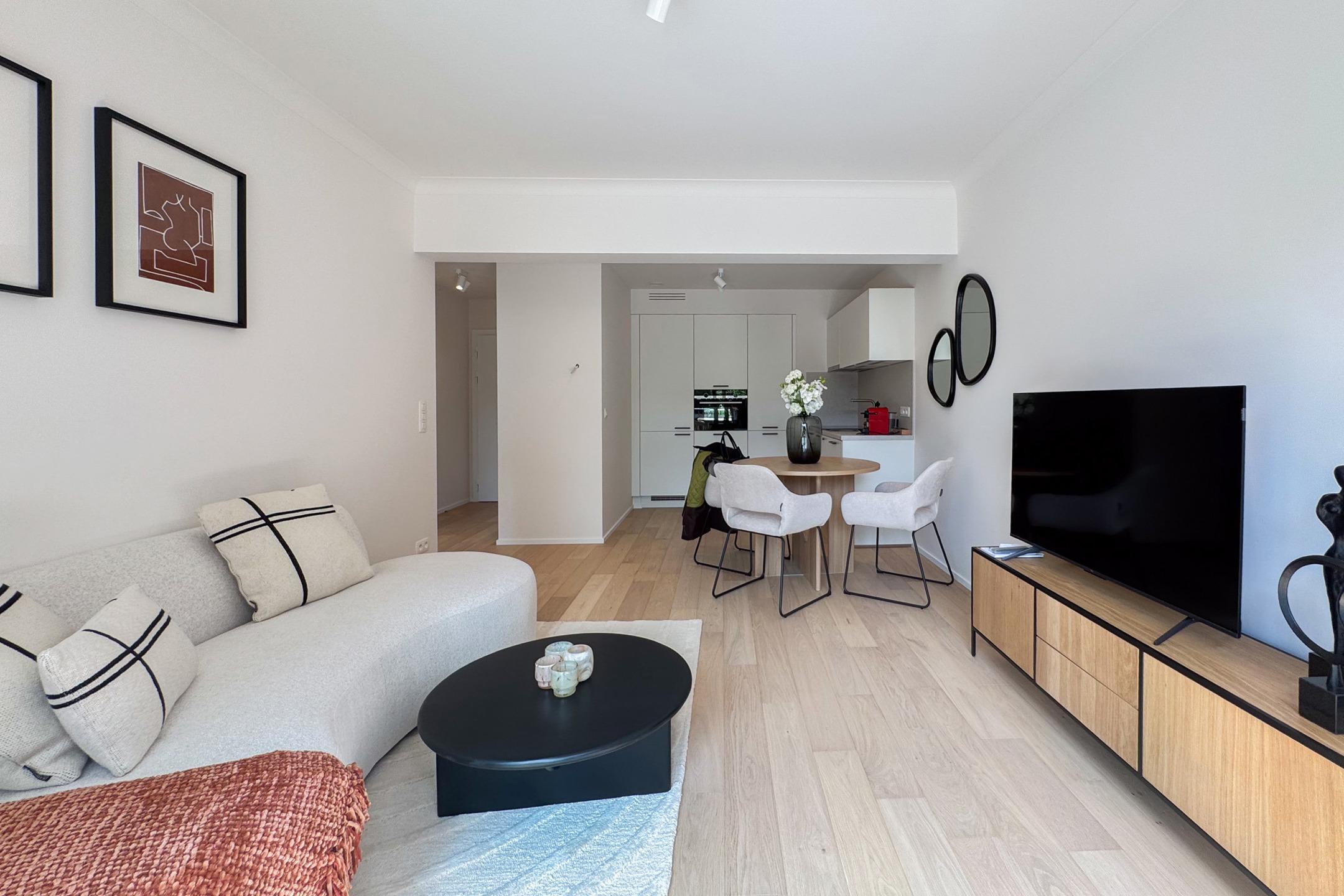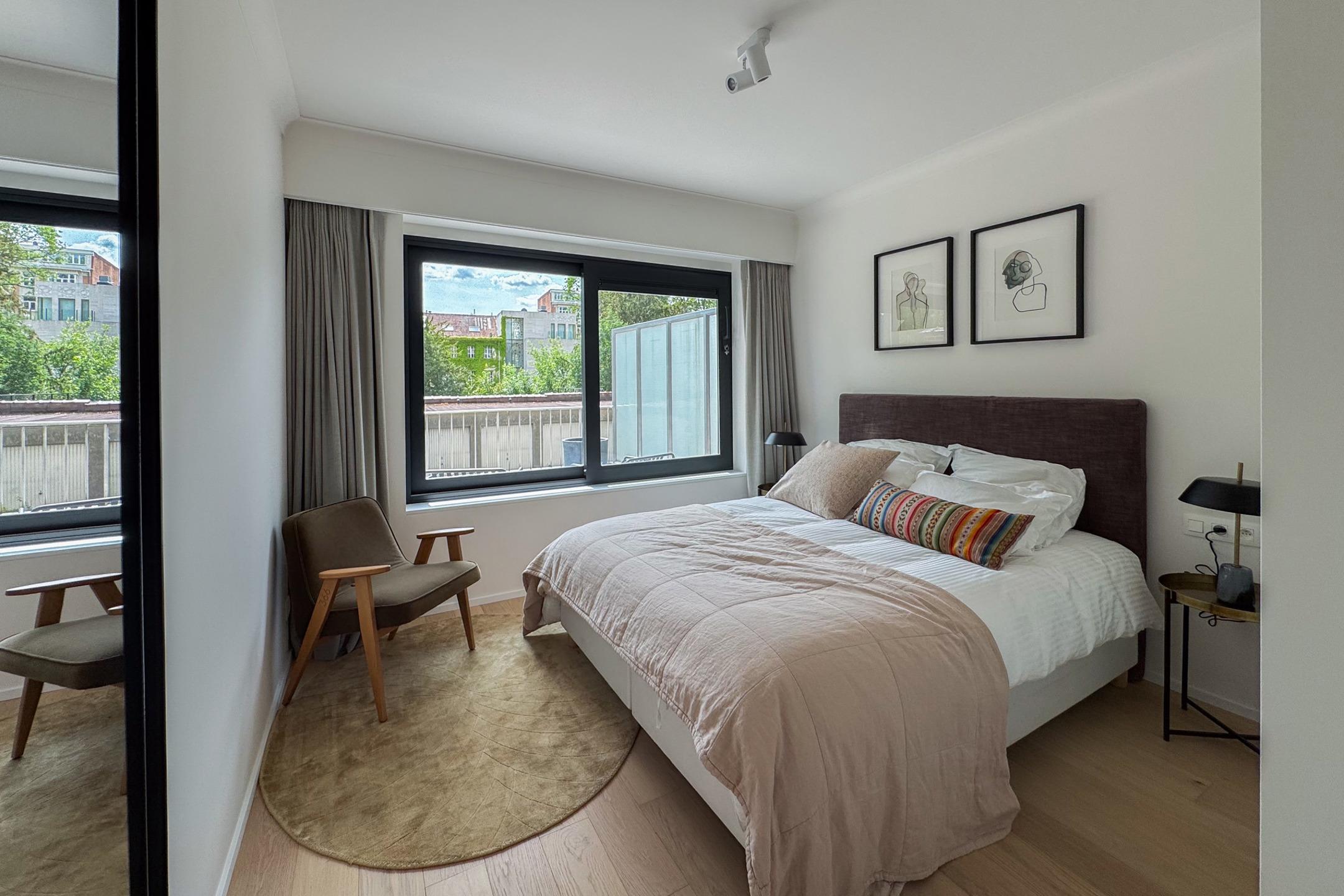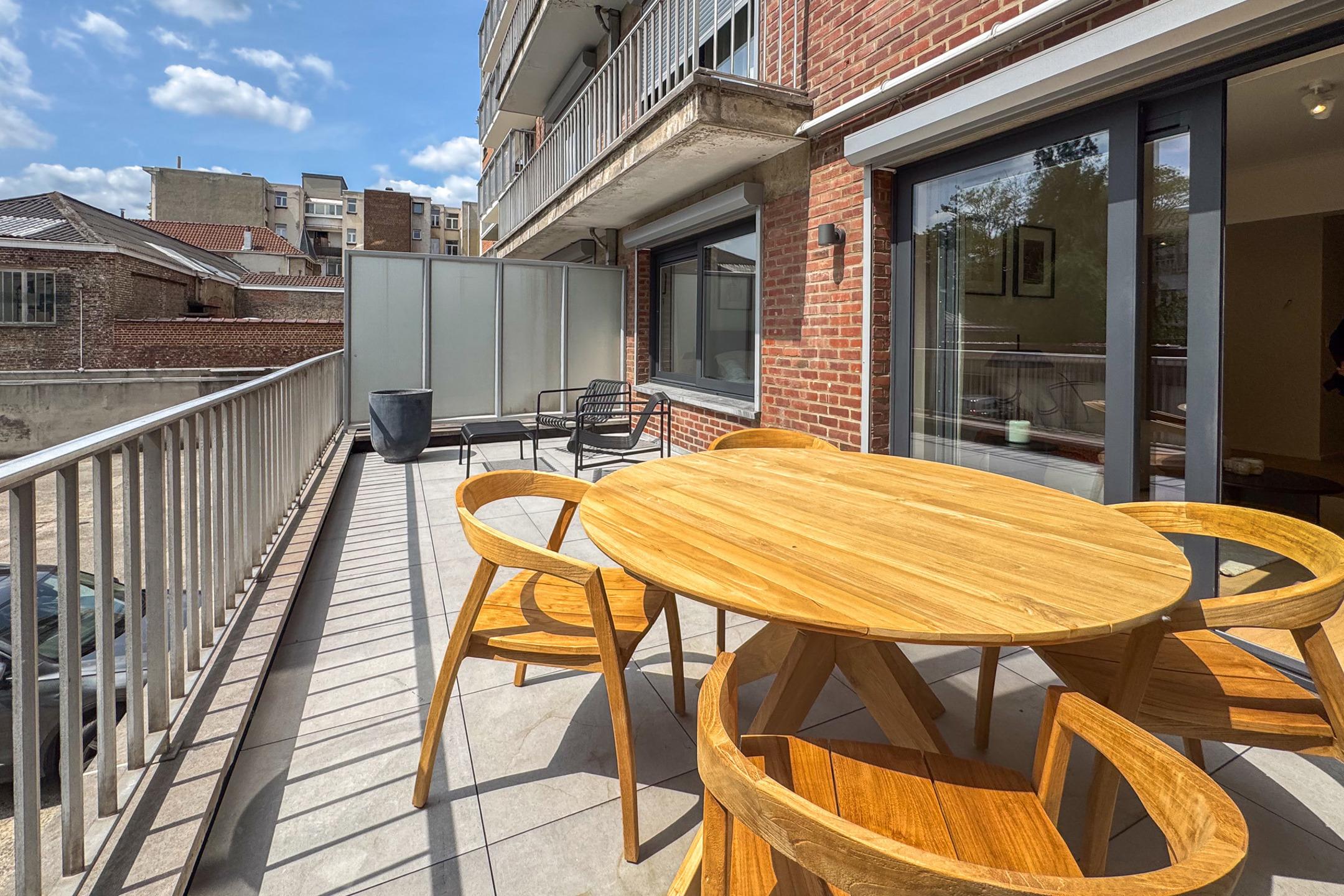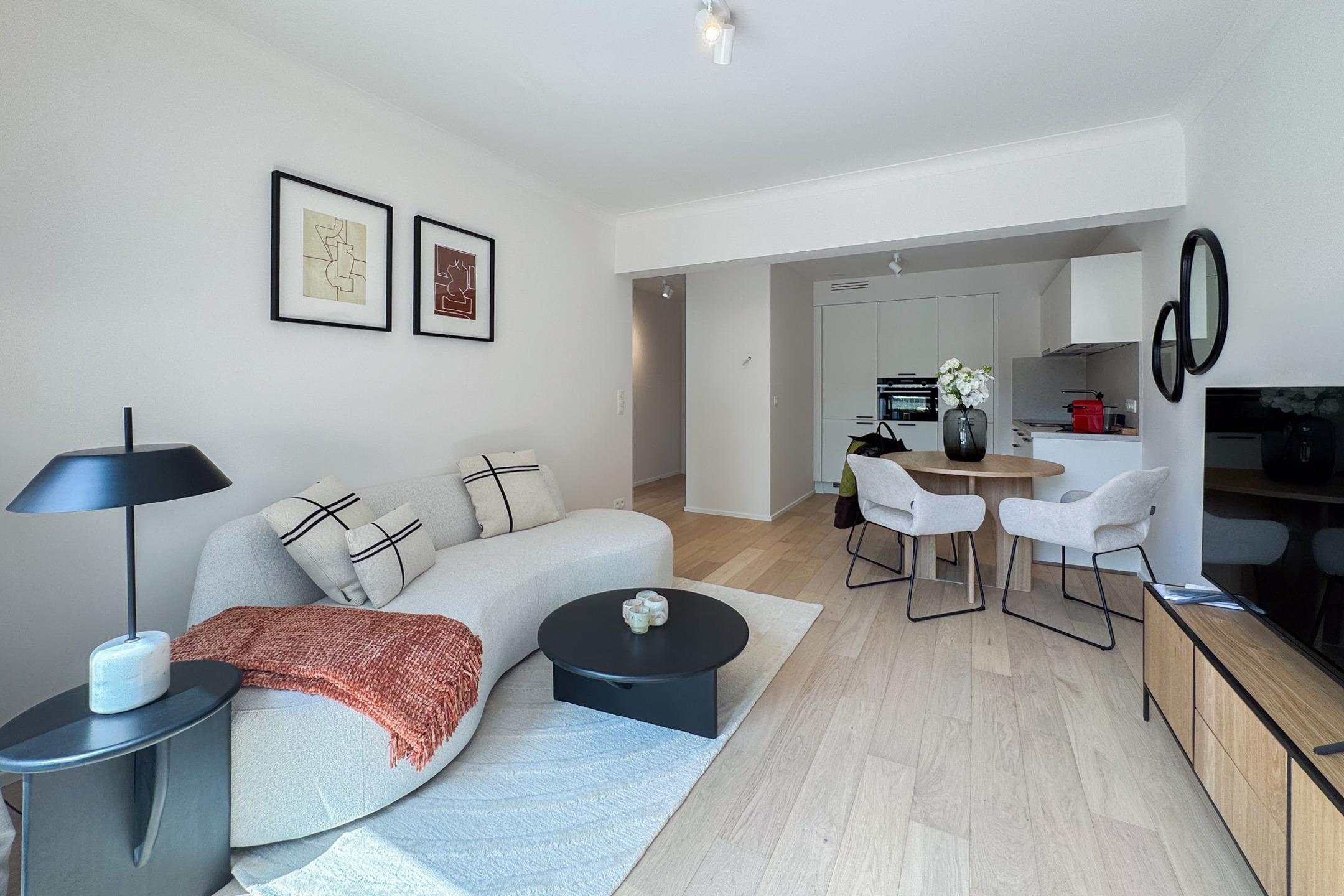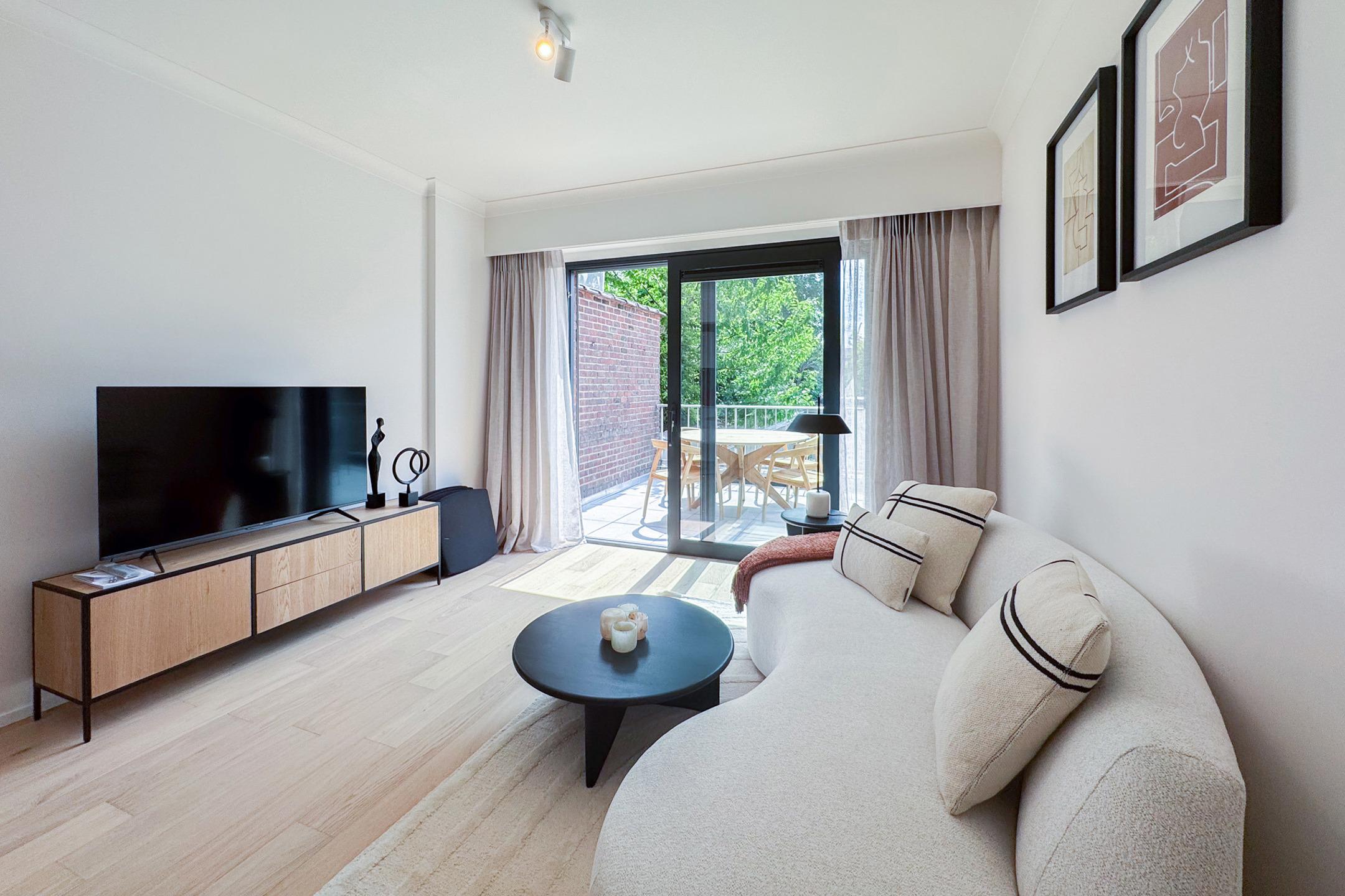 BRUXELLES - situé à deux pas du Bois de la Cambre et de l'Avenue Franklin Roosevelt, proche des transports et commerces, magnifique APPARTEMENT (1ch/1sdd) meublé de 1ère occupation. Il se situe au rez-de-chaussée avec une belle terrasse orientée Sud. Il se compose d'un hall d'entrée, vestiaire, lumineux séjour/salle à manger de ±21m² avec cuisine ouverte équipée, accès à la terrasse de ±20m², chambre de ± 12m² et salle de douche avec toilettes. Volets électriques. Double flux. Possibilité de parking dans l'immeuble ( +150€). Provisions de charges : 200€ (Communs, chauffage, assurance). PEB : C-. A découvrir chez L&P !