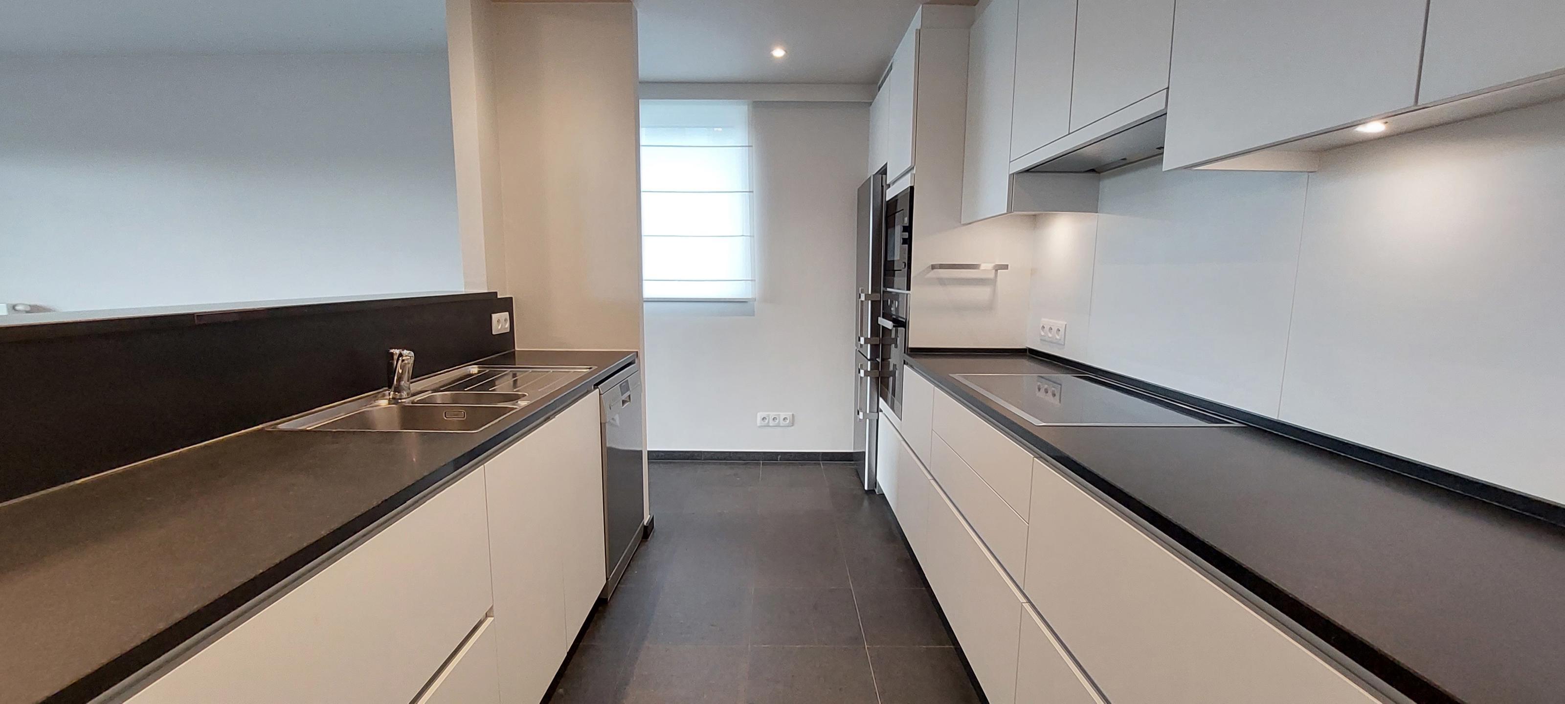 WOLUWE SAINT LAMBERT, dans une rue calme à proximité du Shopping de Woluwe (Metro Roodebeek). Magnifique APPARTEMENT (2CH/2SDB) de 100m² avec garage et grande terrasse plein sud. Situé au 3ème étage, orienté vers une zone verte, avec une vue exceptionnelle, il offre un hall d'entrée avec vestiaire et toilettes, lumineux séjour de 30 m² en carrelage, superbe cuisine ouverte super équipée. Buanderie. Deux chambres de 14 et 10m² en parquet. Magnifique salle de bain tout confort, salle douche, 1WC séparé. Luminaires et rideaux inclus. Excellentes performances énergétiques, ventilation double flux, isolation dernières normes et finitions de grandes qualités. Provision de charges de 175€/mois (communs, chauffage et eau chaude). PEB "B+". A découvrir en exclusivité chez L&P.