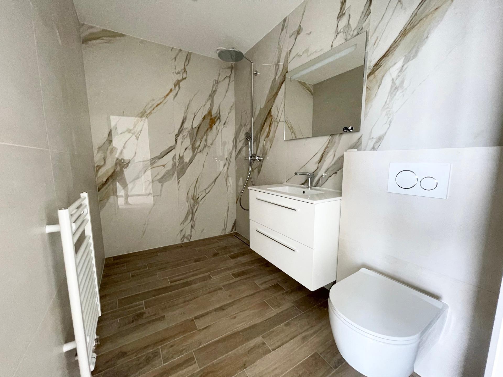 WOLUWE-SAINT-LAMBERT, à proximité du shopping et du métro Roodebeek. Beau PENTHOUSE NEUF (3ch/3sdb) de 205m² avec une terrasse (150m²). Situé au 7ème et dernier étage, il se compose d'un hall d'entrée avec vestiaire intégré et toilette, lumineux living (73m²) et donnant accès à la terrasse, avec cuisine ouverte super-équipée, une buanderie, 3 chambres (34.5m² - 14m² - 14m²) avec placards intégrés. Une salle de bains et 2 salles de douche. Au sous-sol, vous disposez de deux emplacement de parking intérieur (+350€) avec prise électrique et possibilité de placer un chargeur de voiture. Local vélos. Local poubelles. Provision pour charges communes : 400 €/mois (communs). PEB : B. A découvrir chez L&P !