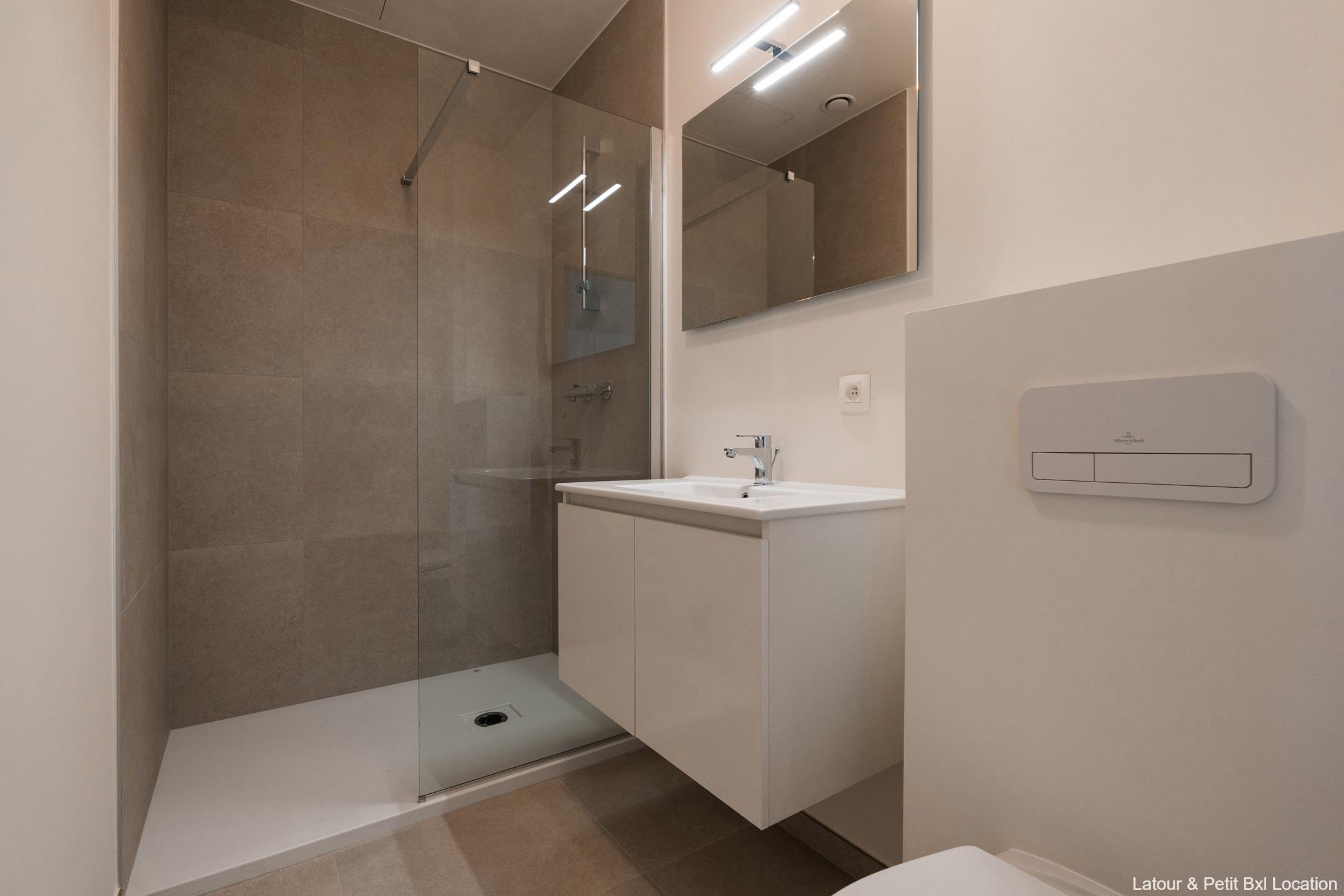 WOLUWE-SAINT-LAMBERT - Idéalement situé à proximité du shopping de Woluwe et des grands axes, dans un quartier agréable, magnifique STUDIO NEUF (0Ch/1SDD) de ± 35m² avec TERRASSE OUEST. Au 3ème étage d'un immeuble neuf, il se compose d'un hall d'entrée avec une salle de douche et toilette, une buanderie séparée, lumineuse pièce de vie avec élégante cuisine ouverte super équipée donnant sur la terrasse orientée OUEST de 11 m². Possibilité emplacement de parking (+125€/mois). Cave. Charges : +75€/mois de provision (assurance abandon de recours, entretien des communs). Luminaires et rails inclus. Excellente performance énergétique, PEB A- (39,43kWh/m²/an). À découvrir chez L&P!