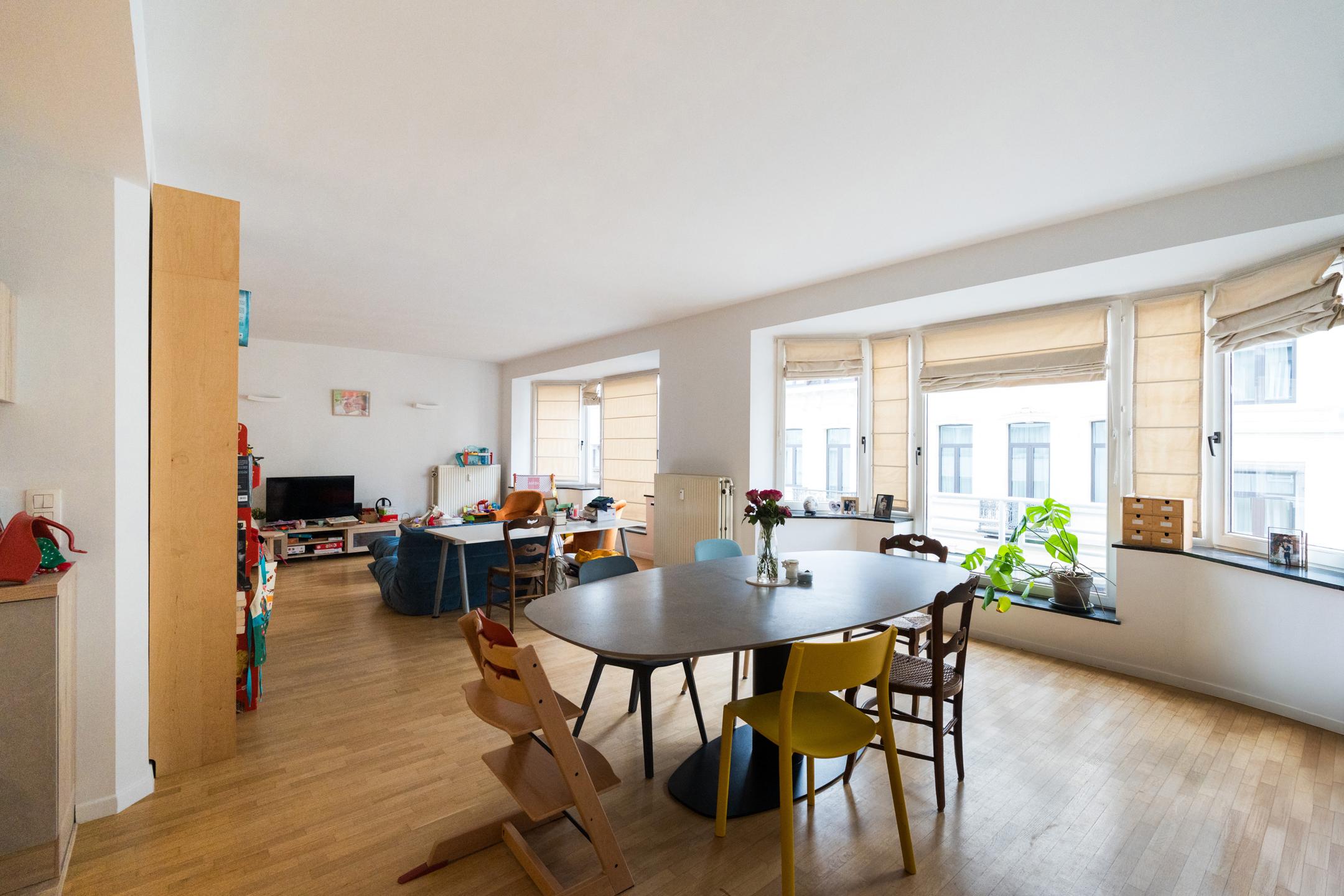 BRUXELLES – À la limite d’Ixelles et du quartier du Châtelain, et à proximité immédiate de la place Stéphanie. Bel APPARTEMENT 1 chambre actuellement aménagé en un APPARTEMENT (2ch/1sdb/1sdd) de ± 133 m² (Bruts selon PEB) avec une TERRASSE arrière de ± 5,5 m² (orientée Sud-Est) avec un EMPLACEMENT DE PARKING INTÉRIEUR (obligatoire à 30 000 €) et une CAVE. L'appartement se situe au 4ème étage et se compose comme suit : Un vaste hall d’entrée avec vestiaire et armoires de rangement encastrées, une toilette pour invités avec lave-mains, un spacieux et lumineux séjour de ± 41 m² avec un espace bureau, une cuisine ouverte et équipée de ± 13 m², un hall de nuit, une chambre de ± 15 m² avec dressing encastré, une salle de bain (bain et douche) attenante de ± 7,5 m² avec accès à la terrasse arrière de ± 5,5 m² (orientée Sud-Est), une seconde chambre de ± 13 m² avec sa salle de douche attenante. En sous-sol : un emplacement de parking intérieur (obligatoire à 30.000€) et une cave. PEB : C- .Chaudière collective au gaz - Châssis double vitrage en bois - Plancher en bois - Ascenseur - Vidéophonie - Syndic. Libre à l'acte. Un bien à découvrir en exclusivité avec Latour & Petit !