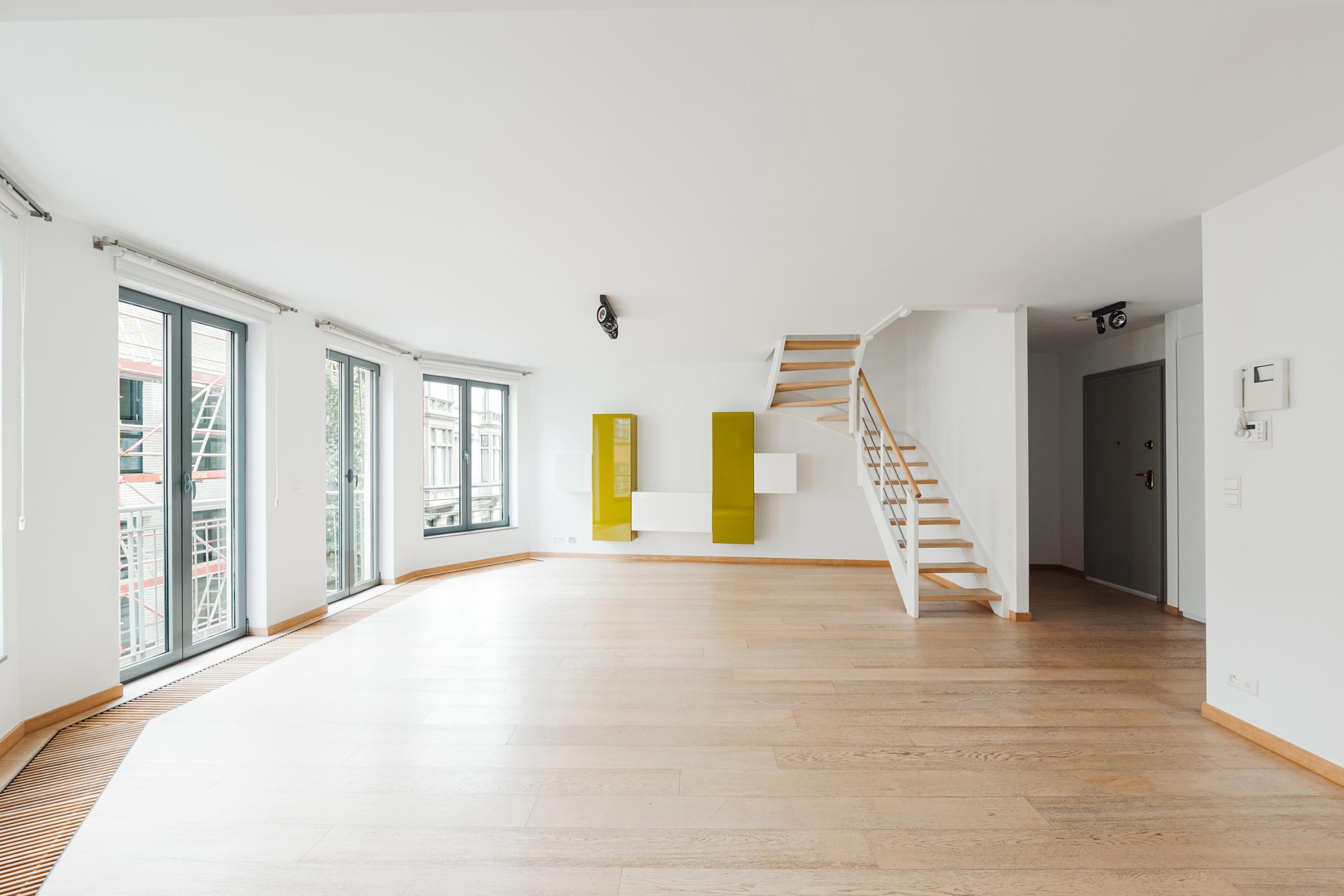 SAINT-GILLES,, à proximité immédiate de la Place Stéphanie, très bel appartement DUPLEX étendu sur le 2ième et 3ième étage (3ch/1sdb/1sdd) de ±140m² qui se compose comme suit : Hall d’entrée avec espace vestiaire, toilette invités, living / salle à manger ( ± 45m²) avec cuisine ouverte super-équipée. Le living est agrémenté d’un balcon. A l’étage on retrouve le hall de nuit, 3 chambres ( ± 11m²/± 12m²/ ± 15,30m²), dont la grande chambre avec sa salle de bain "en suite", une toilette séparée ainsi qu'un salle de douche / buanderie. Aux sous-sols : une cave complète le bien. 2 emplacements de parking en option. PEB: "C": 107 kwh/m²/an - Electricité non conforme (infractions mineures). A découvrir en exclusivité chez Latour et Petit !