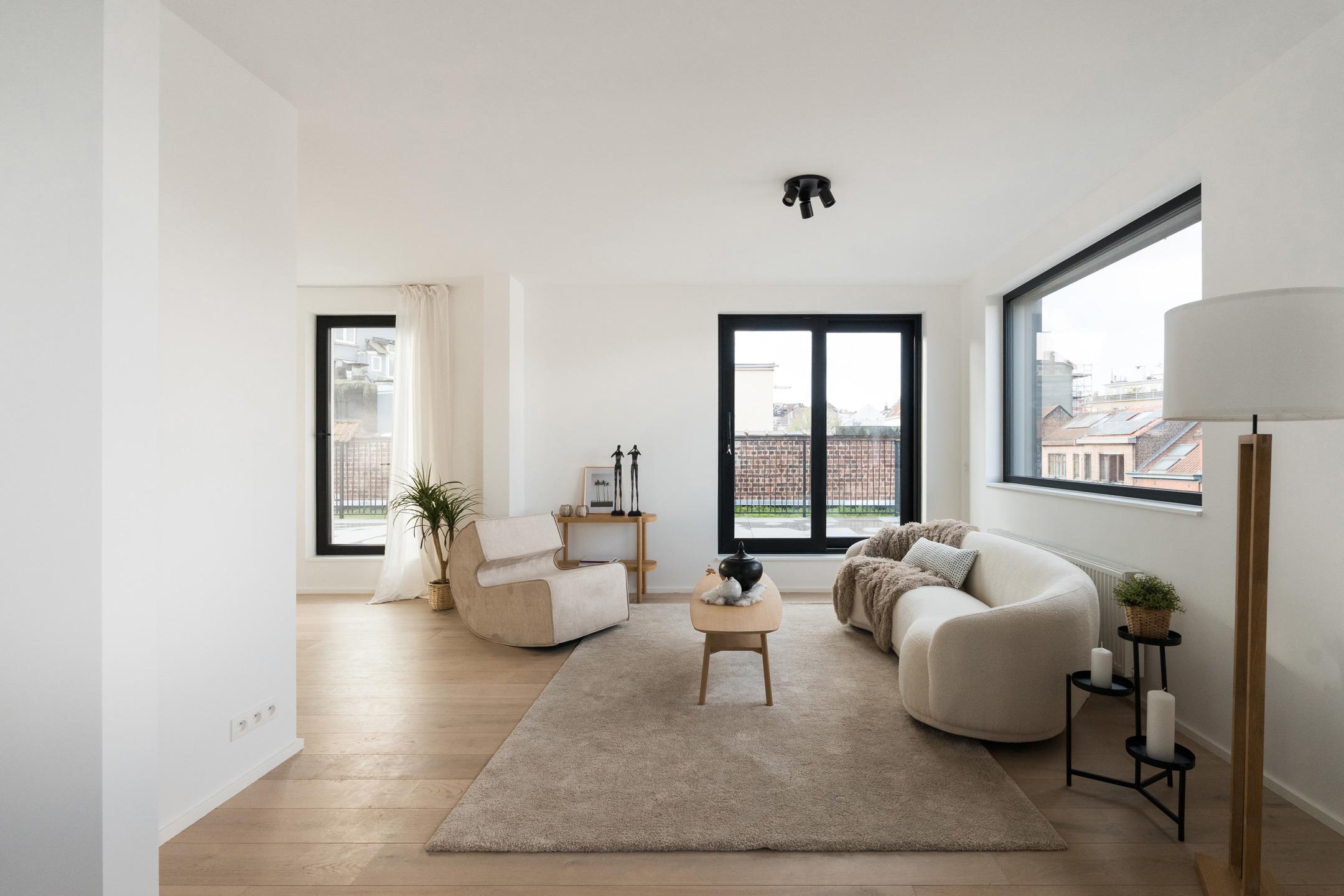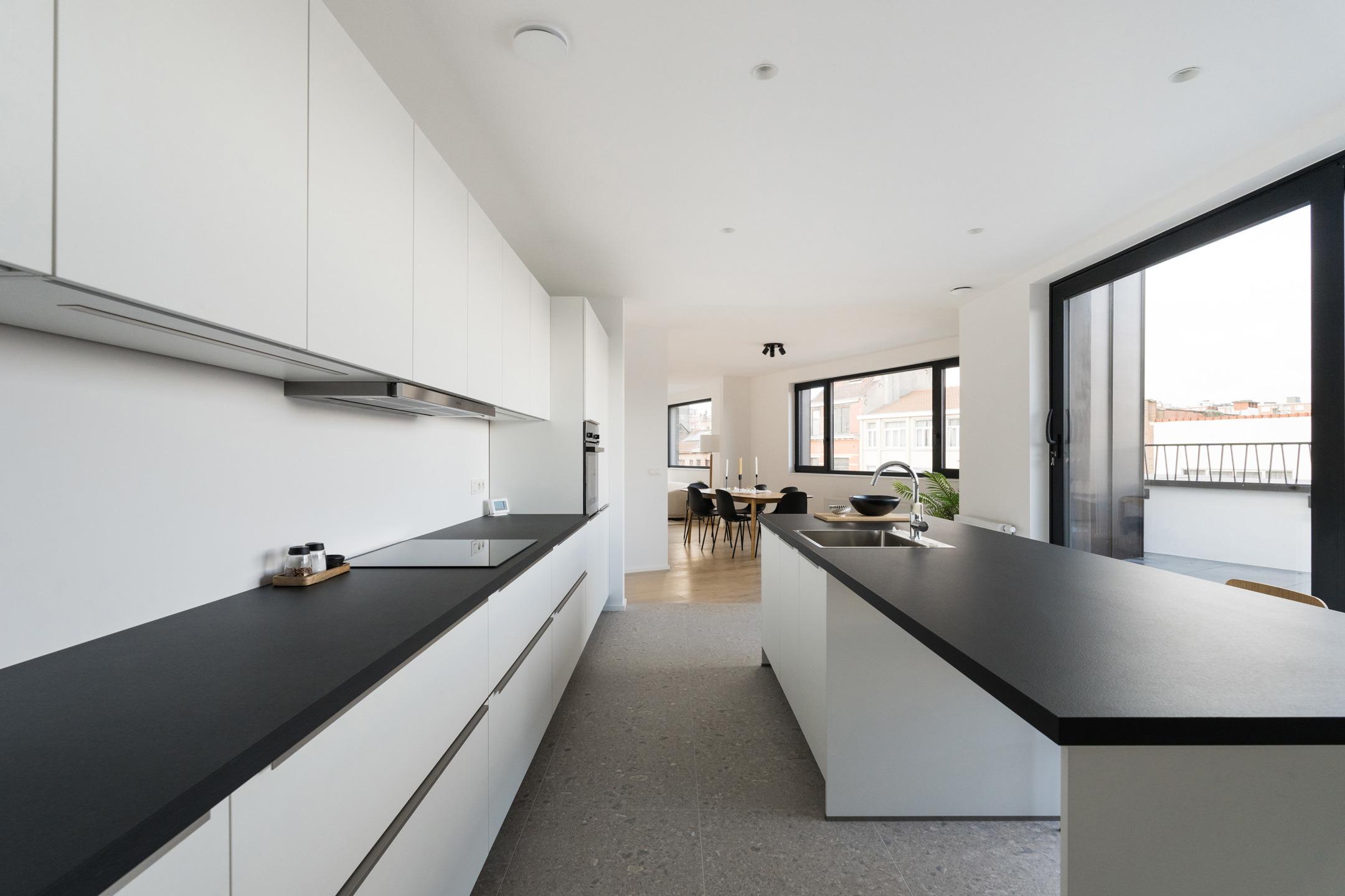 SCHAERBEEK, non loin de la place Meiser, à proximité immédiate de toutes les facilités, ainsi que des diverses formes de transports publics et des axes routiers les plus importants de l’Est de Bruxelles, le projet "F-Square" propose un PENTHOUSE NEUF (3ch) avec 2 GRANDES TERRASSES offrant une vue dégagée et verdoyante. Situé seul au 3ème étage avec accès direct et sécurisé par l'ascenseur, il se compose d'un hall d'entrée avec WC invités et buanderie, un beau séjour lumineux s'ouvrant sur la terrasse sud-ouest et une grande cuisine ouverte super-équipée avec îlot central s'ouvrant sur la seconde terrasse. Une chambre de 17 m² et sa salle de bain (double lavabo, bain, douche) privative. Une deuxième chambre et sa salle de douche (lavabo, douche). Un hall de nuit avec WC, une 3ème chambre donnant sur la terrasse principale et sa salle de douche (double lavabo, douche) attenante. Doté d’une enveloppe performante à très basse énergie, l'appartement jouit d’un niveau de prestations élevé dans ses finitions et équipements. Ce projet vous offre à la fois une localisation urbaine, des vues agréables sur de grands espaces verts et un calme insoupçonné. Parking et cave requis en supplément. 2 emplacements de vélo compris. Vente du terrain sous le régime des droits d'enregistrement (12,5%) et de la construction sous le régime TVA (21%). PEB B+. A découvrir sans attendre chez L&P !