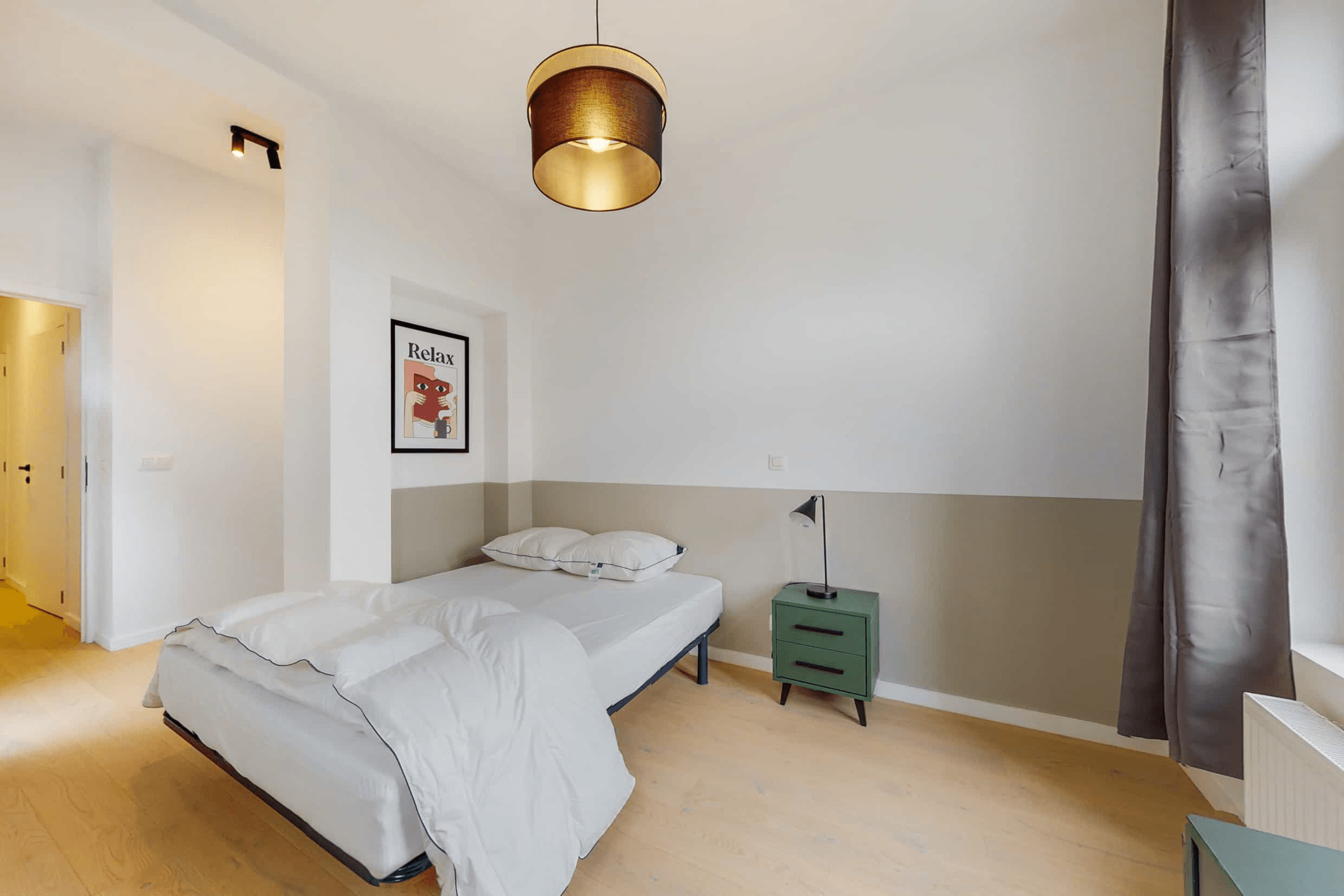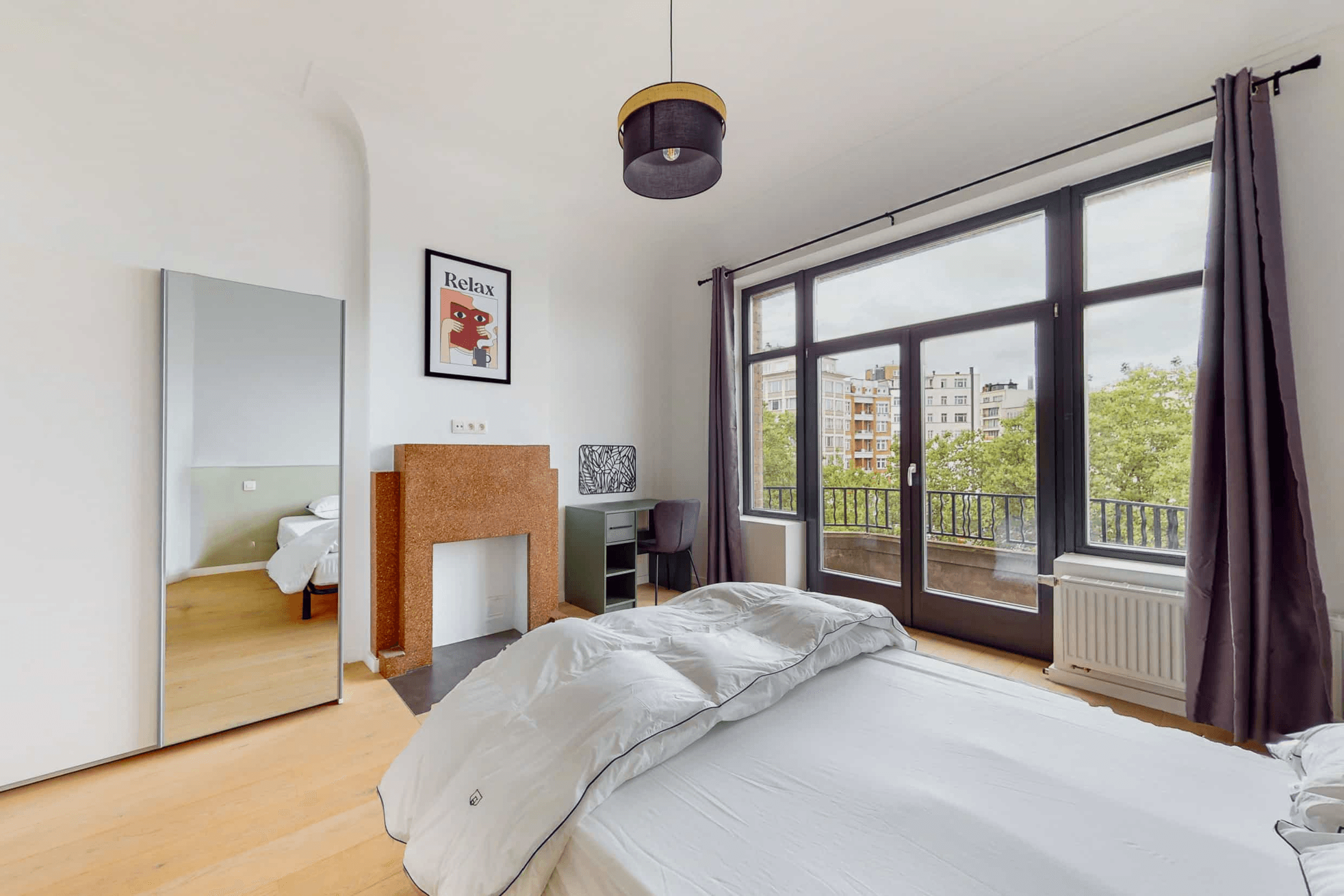 SCHAERBEEK, Quartier Meiser, à proximité de toutes les facilités, dans une petite copropriété de 4 lots - Bel APPARTEMENT duplex de 190m² (selon PEB) avec TERRASSES et DEUX CAVES, actuellement aménagé en colocation meublée de 6 chambres. L’appartement est composé comme suit : Au 3ème étage : Un hall d’entrée, 4 chambres toutes parfaitement meublées avec lit double, bureau individuel et armoire de rangement, 2 salles de douche dont une avec toilette, une toilette séparée, une buanderie et un balcon. Au 4ème étage (sous-combles) : Un séjour, une cuisine hyper-équipée avec coin repas, 2 chambres et deux terrasses de +/- 14m² et 7,5m². Au sous-sols : deux caves. PEB : D+. Chaudière individuelle au gaz. Electricité conforme jusque 2047. Précompte immobilier 2025 : 1477,08€. Zone non inondable. Revenu locatif actuel : 4780€/mois charges forfaitaires comprises. Idéal pour un investissement. À découvrir sans tarder chez L&P !
