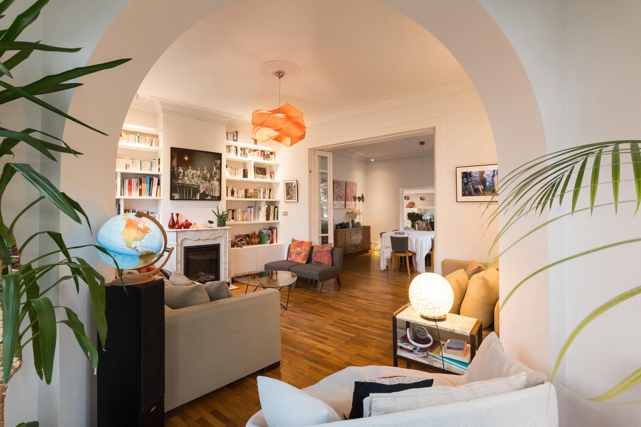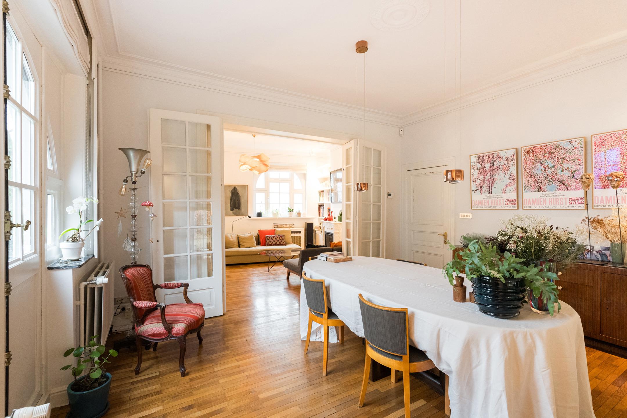 SCHAERBEEK, situé dans le quartier de Fleurs, magnifique Maison 3 façades coup de cœur (5ch/2bur/3sdb) de +/- 430m² bruts dont 352m² habitables sise sur un terrain de 3 ares 67 ca orienté Nord-Est. Construite début XXème et entièrement remise à neuf en 2018, elle se compose comme suit : Au rez-de-chaussée, hall d’entrée, espace vestiaire, toilette visiteurs, cuisine super-équipée avec îlot central, magnifique puits de lumière, salon avec feu ouvert au gaz, salle à manger, salle de jeux, espace bureau pour les enfants avec accès à la terrasse et au jardin. A l'entre-étage; chambre 1 (20m²). Au 1er étage; hall de nuit, chambre 2 principale avec dressing et salle de bain privative, bureau avec vue sur le puits de lumière. A l'entre-étage: bureau (20m²). Au 2ème étage: palier, 3 chambres avec mezzanine dont une avec salle de douche (11m², 14m² et 15m²) et une salle de bain. Au sous-sol, différentes caves de rangements, à vins, chaufferie, buanderie et garage. Électricité conforme, PEB D- ( 197(kWh/m²/an)). Un bien d'exception à découvrir sans plus attendre chez L&P !