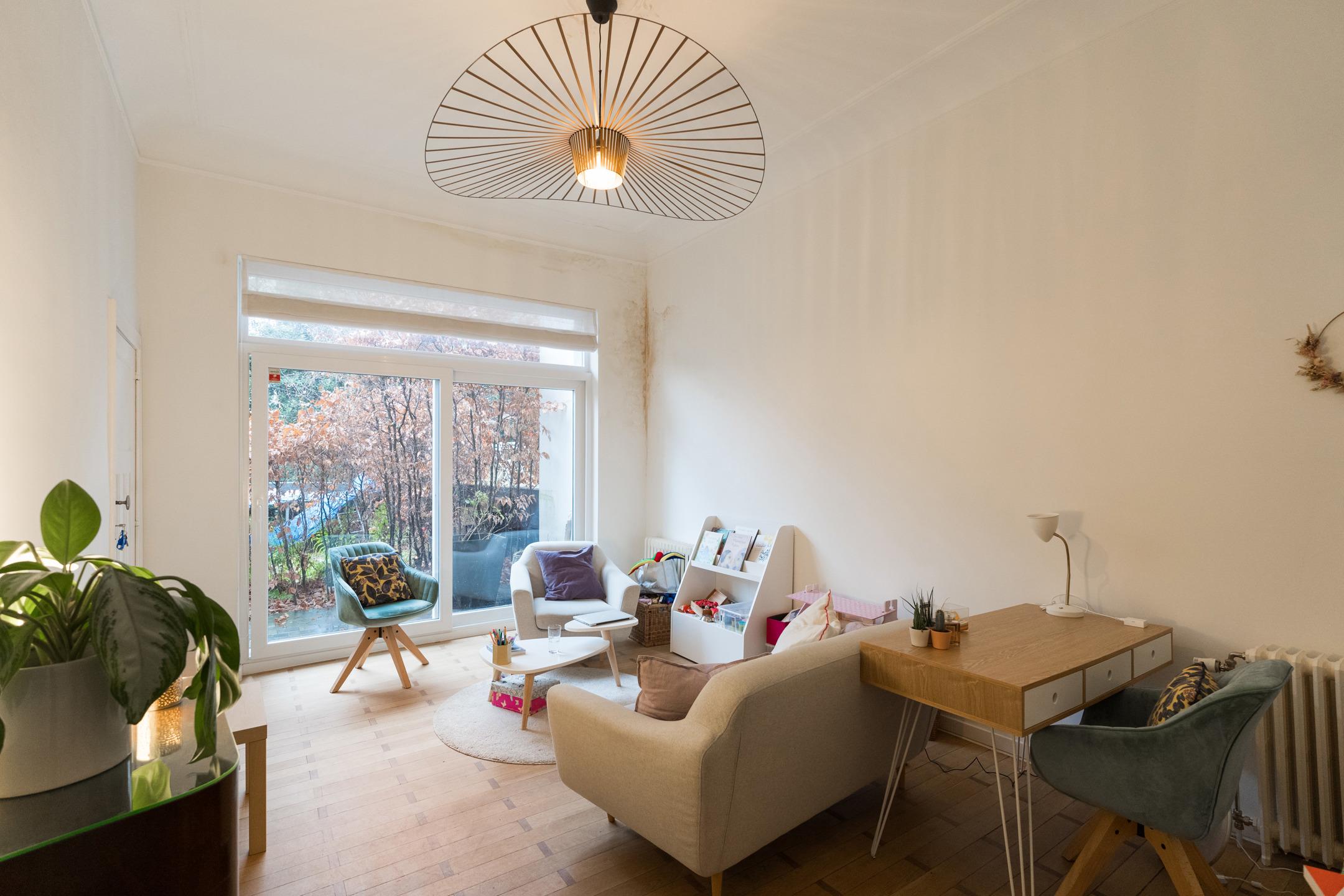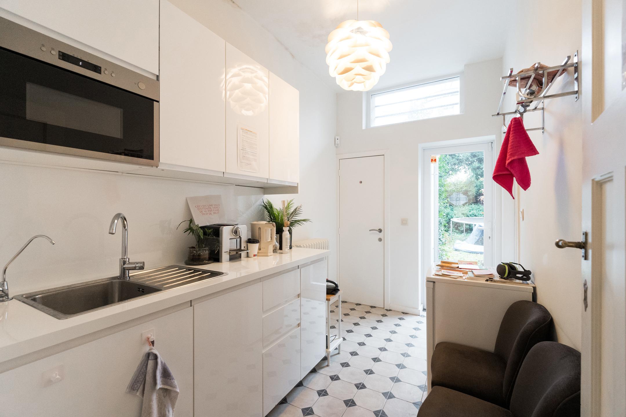 SCHAERBEEK, quartier des Fleurs. MAISON (5ch/2bur/5sdb) de 230m² construits sur un terrain de 1 are 58 ca avec jardin orienté Nord-Est. Construite en 1921 avec des matériaux de qualité et entièrement rénovée en 2017, elle se compose comme suit: Hall d'entrée, toilette visiteurs avec lave mains séparé, kitchenette, 2 espaces bureaux, accès vers le jardin. Au 1er étage, hall de nuit, chambre 1 avec salle de douche attenante, chambre 2, salle de douche, cuisine équipée avec espace déjeuner. Au 2ème étage: studio comprenant cuisine, chambre (3) et salle de douche avec wc , chambre 4 avec salle de douche. Sous toiture: chambre 5 avec une douche et un évier. Au sous-sol: buanderie, local technique avec la chaudière, cave à provisions. Electricité conforme, PEB: E (248(kWh/m²/an)). Le bien est actuellement loué à 4454.82€ .A découvrir en exclusivité chez L&P!
