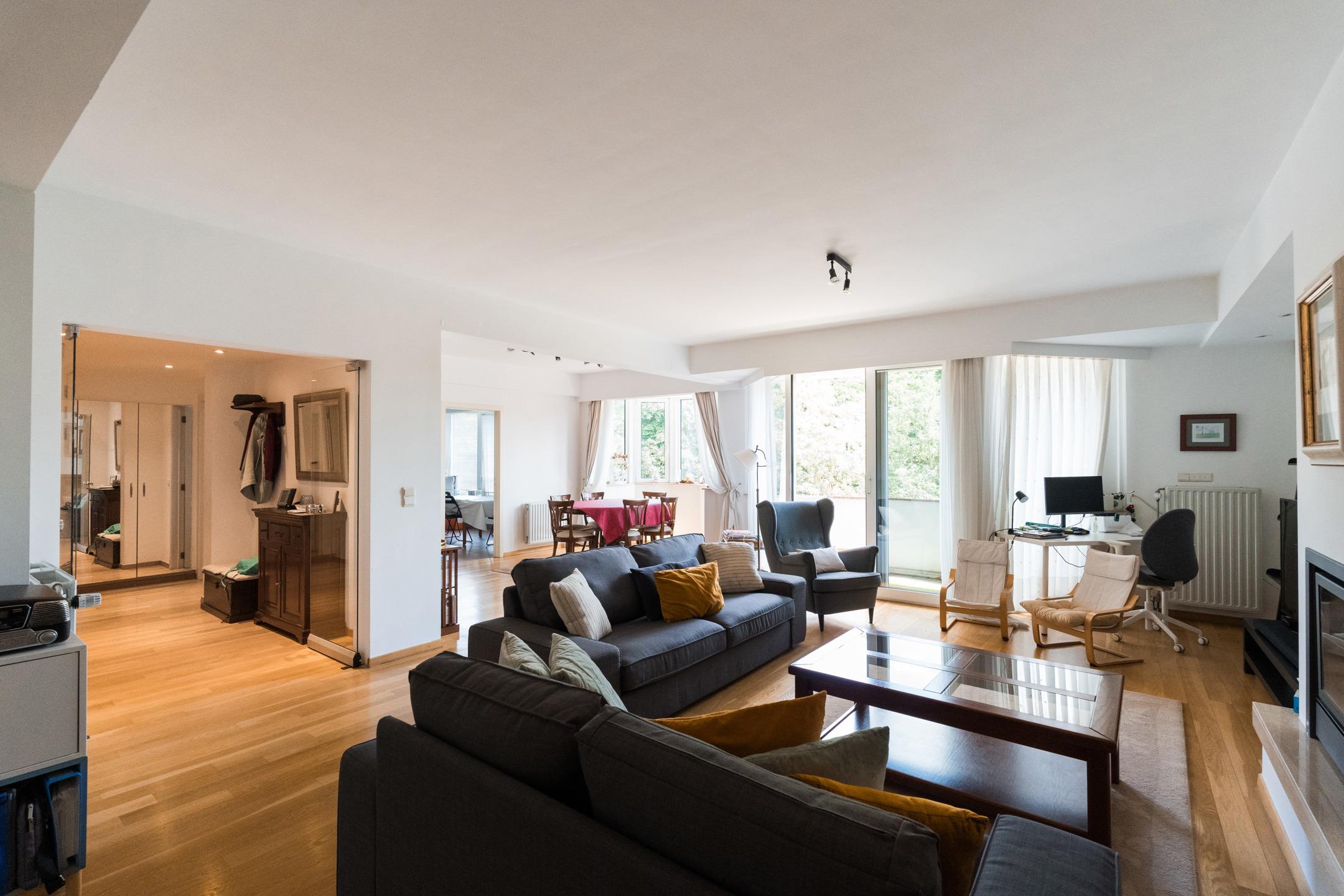 BRUXELLES-VILLE, face au Parc du Cinquantenaire, dans un immeuble de dix unités des années 90, un spacieux et lumineux APPARTEMENT situé au 6ème étage (3ch/3sdb) de 183 m² de superficie PEB avec 3 terrasses. Il se compose d’un hall d’entrée avec vestiaire, toilette avec lave-mains, réceptions (57 m²) comprenant le salon avec insert et la salle à manger, jouissant d'une superbe vue sur le Parc du Cinquantenaire et d'un accès à un balcon face au parc, cuisine équipée avec coin à déjeuner (20 m²), réserve et buanderie, hall de nuit avec placards desservant deux chambres (19 m² et 12 m² dont une avec accès à une terrasse) avec leurs salle de bains respectives (lavabo posé sur meuble, baignoire et wc indépendant). Une suite de 26 m² comprenant un hall de nuit avec placards intégrés, la chambre (15 m²) avec accès à une terrasse (4m²) et une salle de bains attenante (double lavabo posé sur meuble, baignoire et wc). Charges communes mensuelles : +-275€ de moyenne. PEB C+. CE conforme. Cave et parking compris dans le prix. Loué 2.500€ + 300€ de charges. Un bien de standing idéalement situé à découvrir en exclusivité chez Latour et Petit !