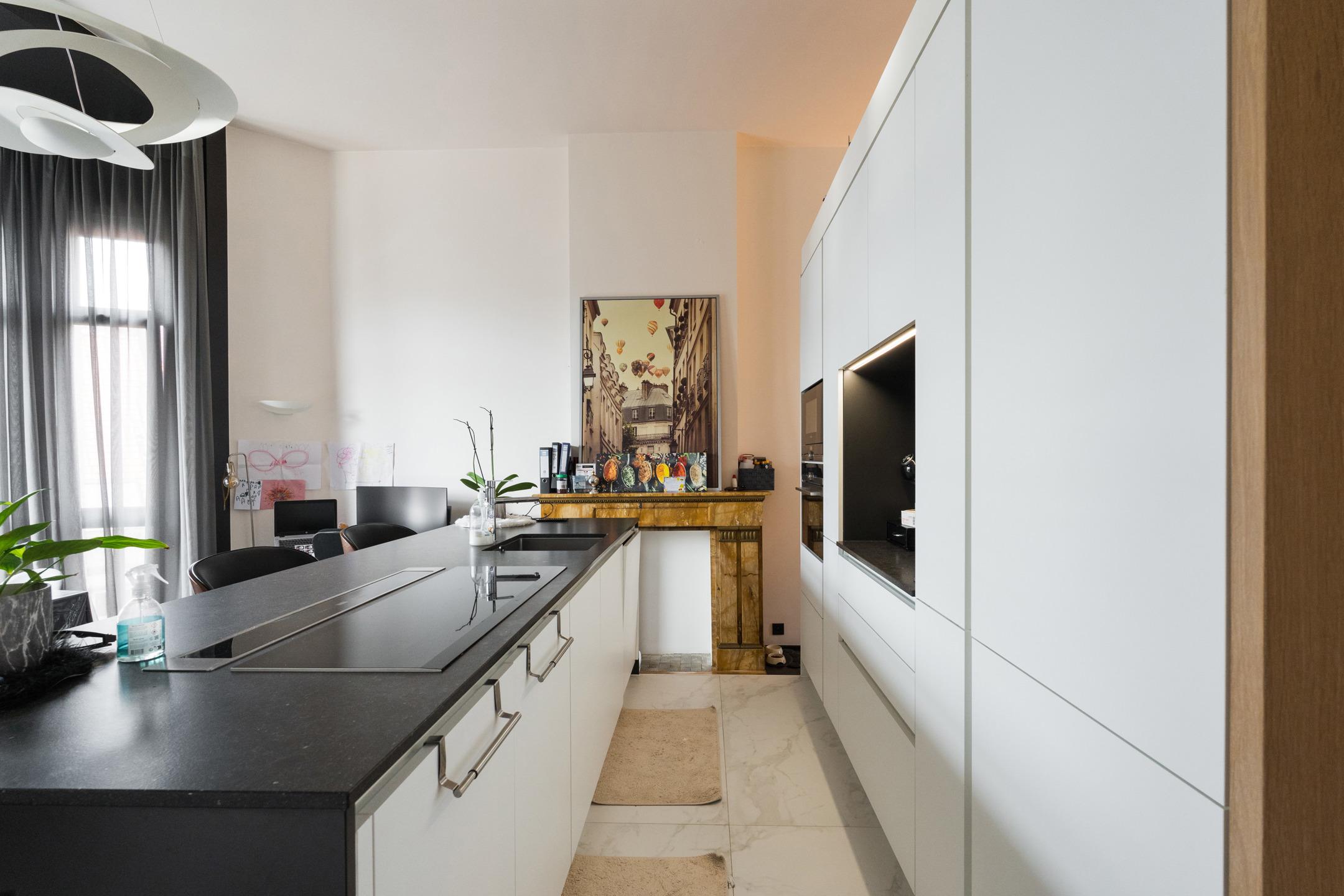-------SOUS-OPTION ------ETTERBEEK - Entre le Cinquantenaire et Montgomery - Magnifique APPARTEMENT(2ch/2sdb/PEB"B"!!) de +- 119m² avec TERRASSE et possibilité d'acquérir un emplacement PARKING. Situé au 2ième étage d'un Hôtel Particulier de style "Beaux-Arts" de 1913, superbement rénové, le bien se compose comme suit: entrée sécurisée, très beau salon avec cheminée en marbre décorative et moulures au mur, vestiaire, toilette séparée, salle de bains, espace buanderie, cuisine ouverte, espace à diner situé dans le bow-window, première chambre avec salle de douche attenante et accès à la terrasse, seconde grande chambre à l'avant. Cave au sous-sol et possibilité d'acquérir un emplacement parking. Certificat électrique conforme. PEB "B": 85 kwh/m²/an. Appartement alliant magnifiquement bien l'ancien et le nouveau, à découvrir en exclusivité chez Latour et petit!