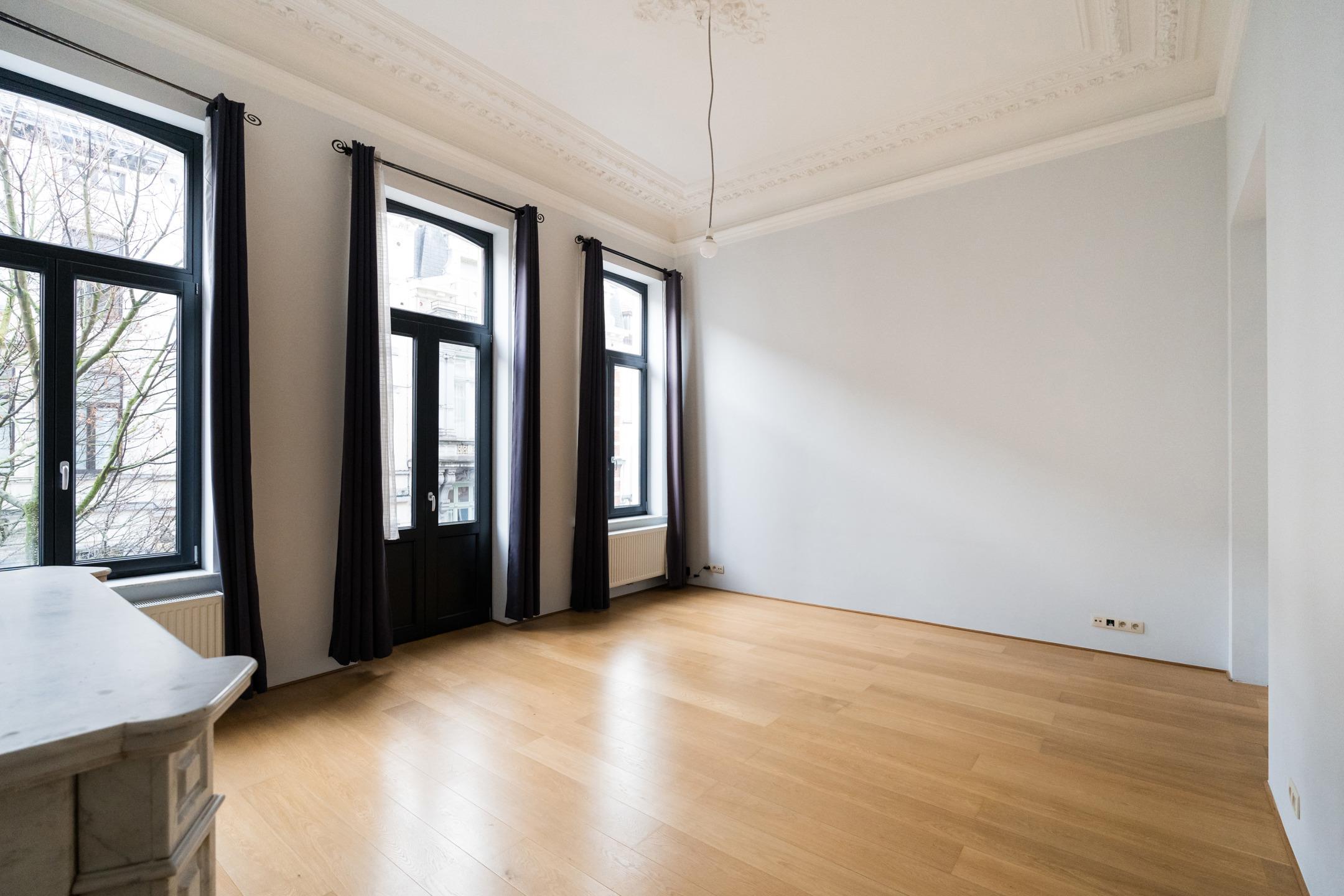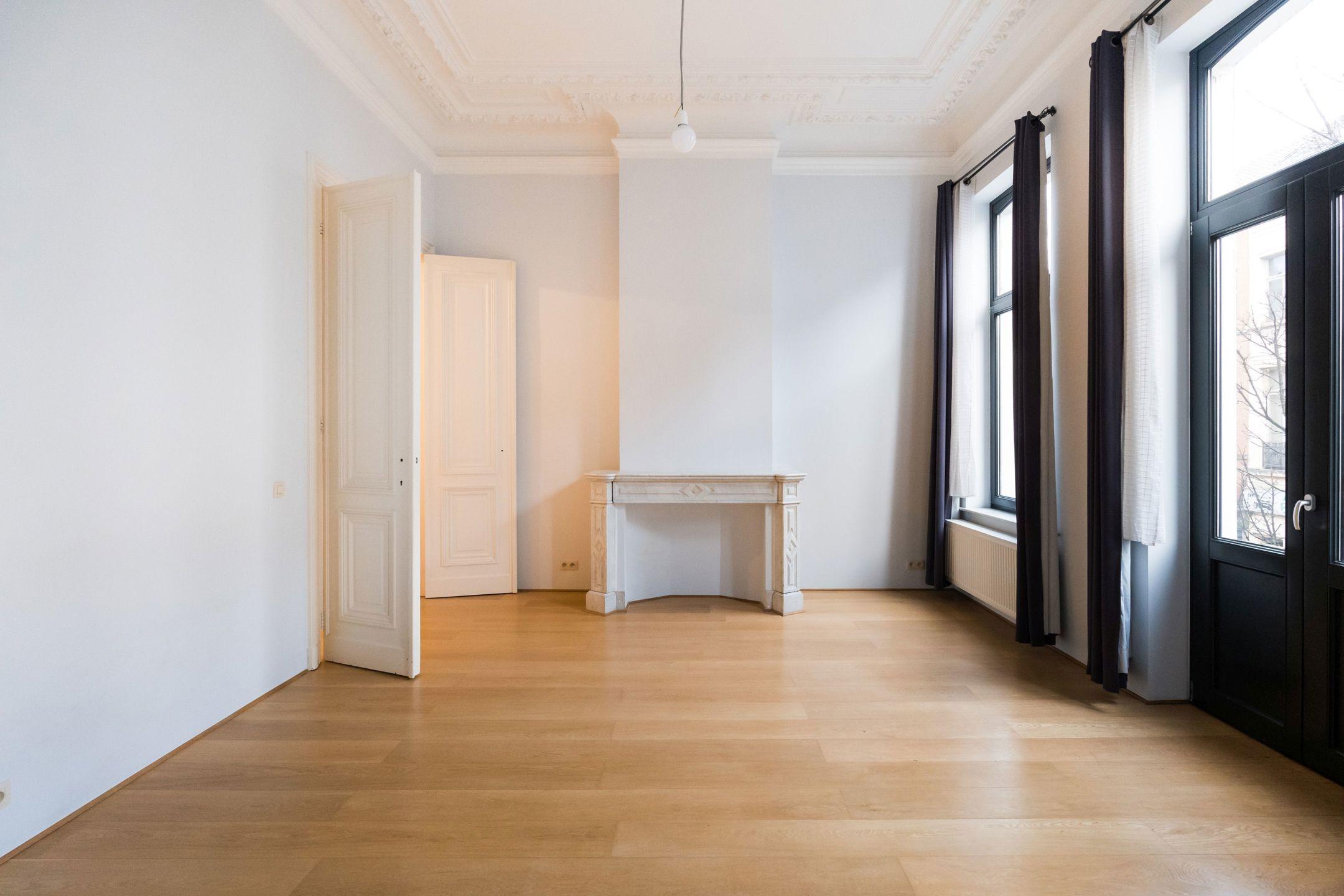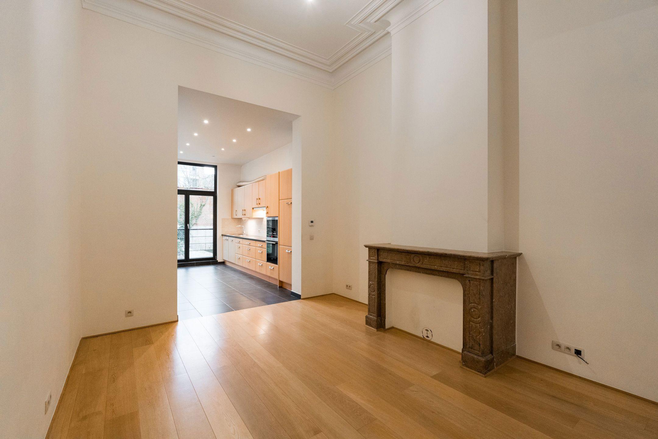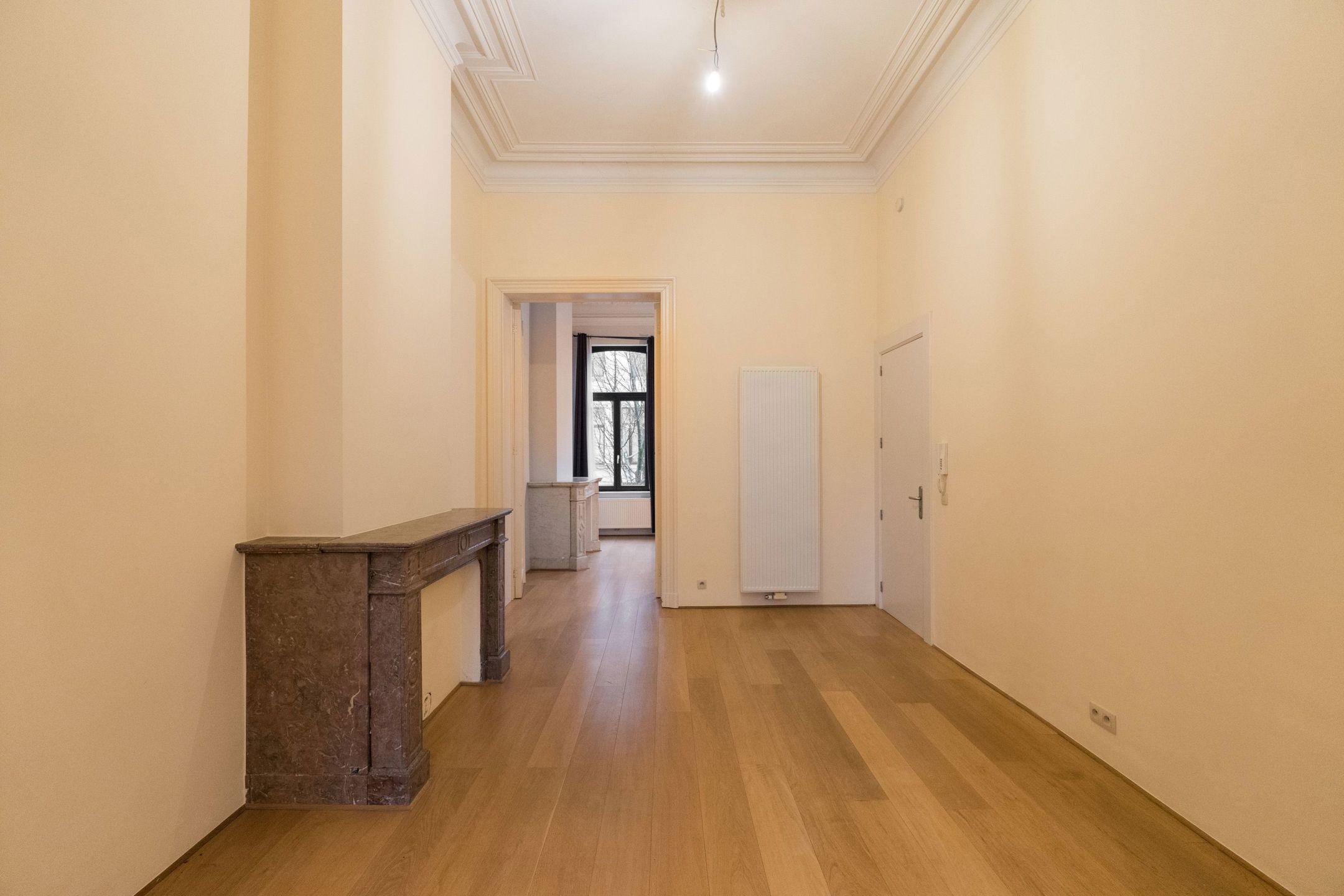 IXELLES, a proximité immédiate des institutions européennes, proche de la place Flagey, de la place Jourdan et de la place Saint-Boniface : APPARTEMENT (1chambre/1bur/1sdb), situé au 1er étage et 1er entresol (103 m² de superficie PEB) dans une petite copropriété de 3 lots. Ce très élégant appartement de caractère situé dans une belle maison de Maître fin 19ème siècle entièrement rénovée en 2010 se compose comme suit : une magnifique pièce de vie/chambre en façade avant (+- 28m²) ouvrant sur un petit balcon et une pièce centrale (+-20m²), très belle hauteur sous plafond de 4 m et splendides moulures et cheminées en marbre, une buanderie, une spacieuse cuisine équipée semi ouverte avec une grande baie vitrée donnant sur le jardin à l’arrière. Quelques escaliers en chêne mènent à l’espace nuit composé d’une belle salle de bains (lavabo, baignoire, douche italienne, WC) (+-7m²) et d’une chambre/bureau (+-9m²) située à l’arrière avec vue sur le jardin et qui dispose d’un dressing intégré dans le sas d’entrée. PEB C-. Electricité conforme. RU du 19/02/2025 disponible sur demande. Un très bel appartement à découvrir en exclusivité chez Latour et Petit!