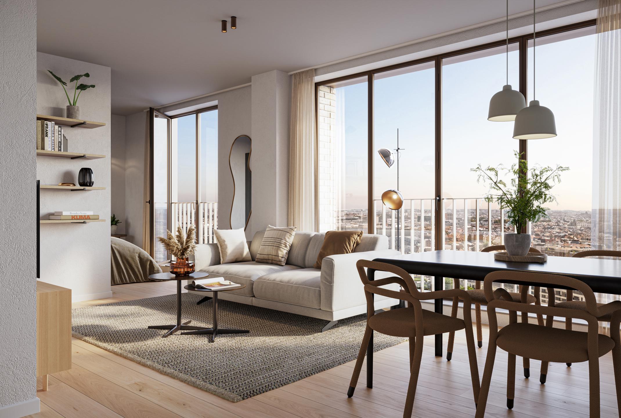 EVERE - Placé stratégiquement aux portes de la capitale, entre l'aéroport et le centre ville, à proximité immédiate du siège de l'OTAN, de nombreux sièges de grandes entreprises, et d'écoles internationales, magnifique STUDIO/SUITE NEUF (1sdd) de 48,2 m² bénéficiant d'un joli JARDIN COMMUN sécurisé en intérieur d'îlot. Situé au 1er étage, il se compose d'un hall d'entrée avec espace vestiaire, une pièce de vie de 16,6 m² avec cuisine ouverte super-équipée, un espace nuit cloisonné de 9,5 m², une salle de douche (lavabo, douche, WC) et une buanderie. Ce studio se situe dans un projet résidentiel à l'architecture moderne qui met l'accent sur la durabilité environnementale (GEOTHERMIE, PANNEAUX SOLAIRES, récupération des eaux de pluie,...), des finitions de haute qualité et des espaces de vie confortables et lumineux. Il permet également de profiter de transports en commun (bus, tram et train) au pied de l'immeuble. PEB A. Cave en supplément. Local commun sécurisé pour les vélos et vélos-cargo. Vente du terrain sous le régime des droits d'enregistrement (12,5%) et des constructions sous le régime de la TVA (21%). Possibilité de TVA à 6%, sous conditions. A découvrir chez L&P !