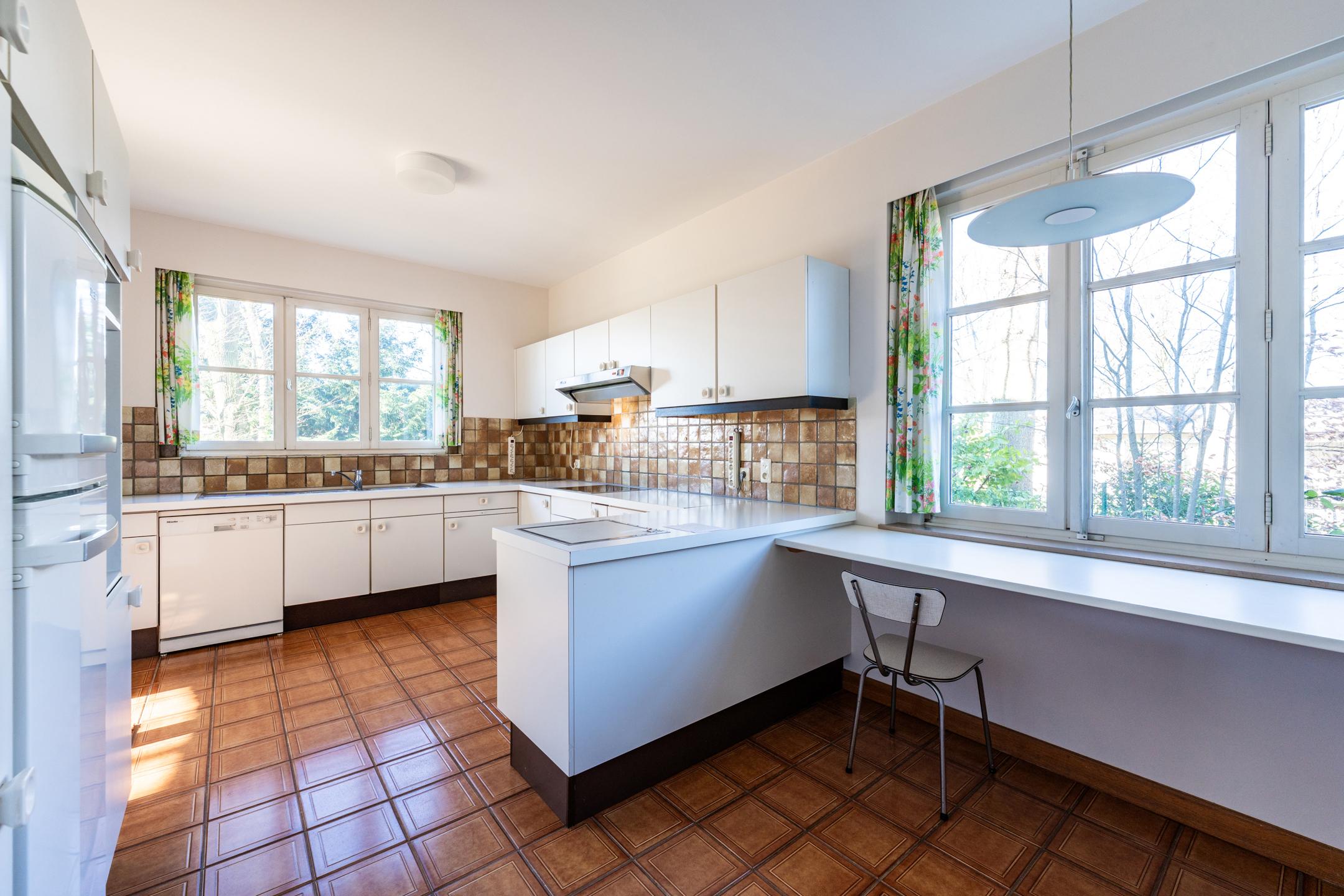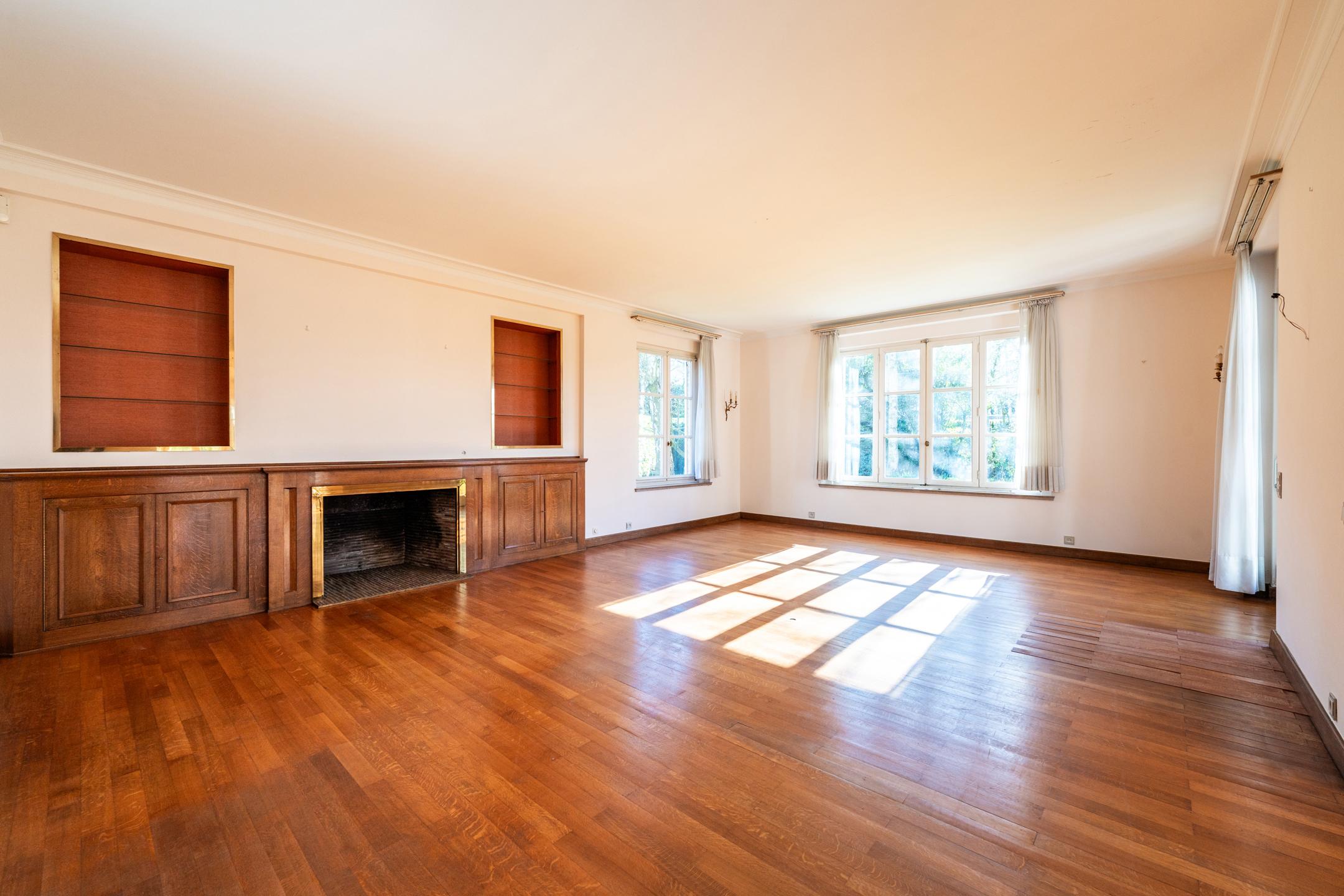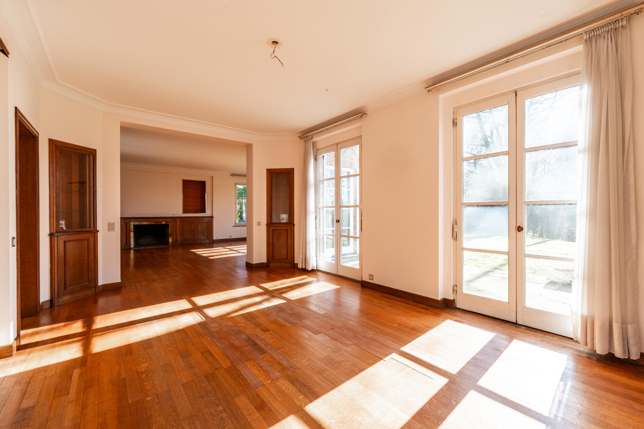 WOLUWE-SAINT-PIERRE, dans l’un des quartiers résidentiels les plus prisés, au bout d’un clos particulièrement calme et verdoyant, à deux pas de la place Dumon et de toutes les facilités, découvrez cette lumineuse villa à rénover construite en 1976 par l’architecte de Bellefroid, nichée sur une magnifique parcelle arborée de ± 11,67 ares orientée plein sud avec une vue imprenable sur la forêt. Développant une superficie d’environ ± 381 m² (selon PEB) et répartie sur 3 niveaux, cette propriété de caractère offre de superbes volumes et un potentiel exceptionnel. Au rez-de-chaussée, un spacieux hall d’entrée avec vestiaire et toilette invités mène vers un vaste séjour de ± 60 m² avec feu ouvert et salle à manger, baigné de lumière et ouvert sur une agréable terrasse couverte ainsi que sur le jardin plein sud. Une cuisine équipée de ± 15 m² avec arrière-cuisine complète ce niveau. À l’étage, le hall de nuit dessert 5 chambres (± 18, 17, 17, 12 et 8 m²), 2 salles d’eau, 2 dressings, 2 WC ainsi qu’un accès au grenier de rangement sous combles. Le sous-sol propose de nombreux espaces fonctionnels : grande cave de rangement, cave à vin, buanderie, chaufferie et vaste garage pouvant accueillir 3 voitures. Caractéristiques : châssis en bois double vitrage (ancien), nombreux rangements intégrés, volets manuels, système d’alarme, thermostat, chaudière au gaz (2005). PEB : F – 288 kWh/m²/an. Électricité non conforme. Un bien rare au fort potentiel, idéal pour les amateurs de rénovation souhaitant créer une maison familiale d’exception dans un environnement calme, verdoyant et idéalement situé à proximité des commerces, écoles et transports. À découvrir sans tarder !