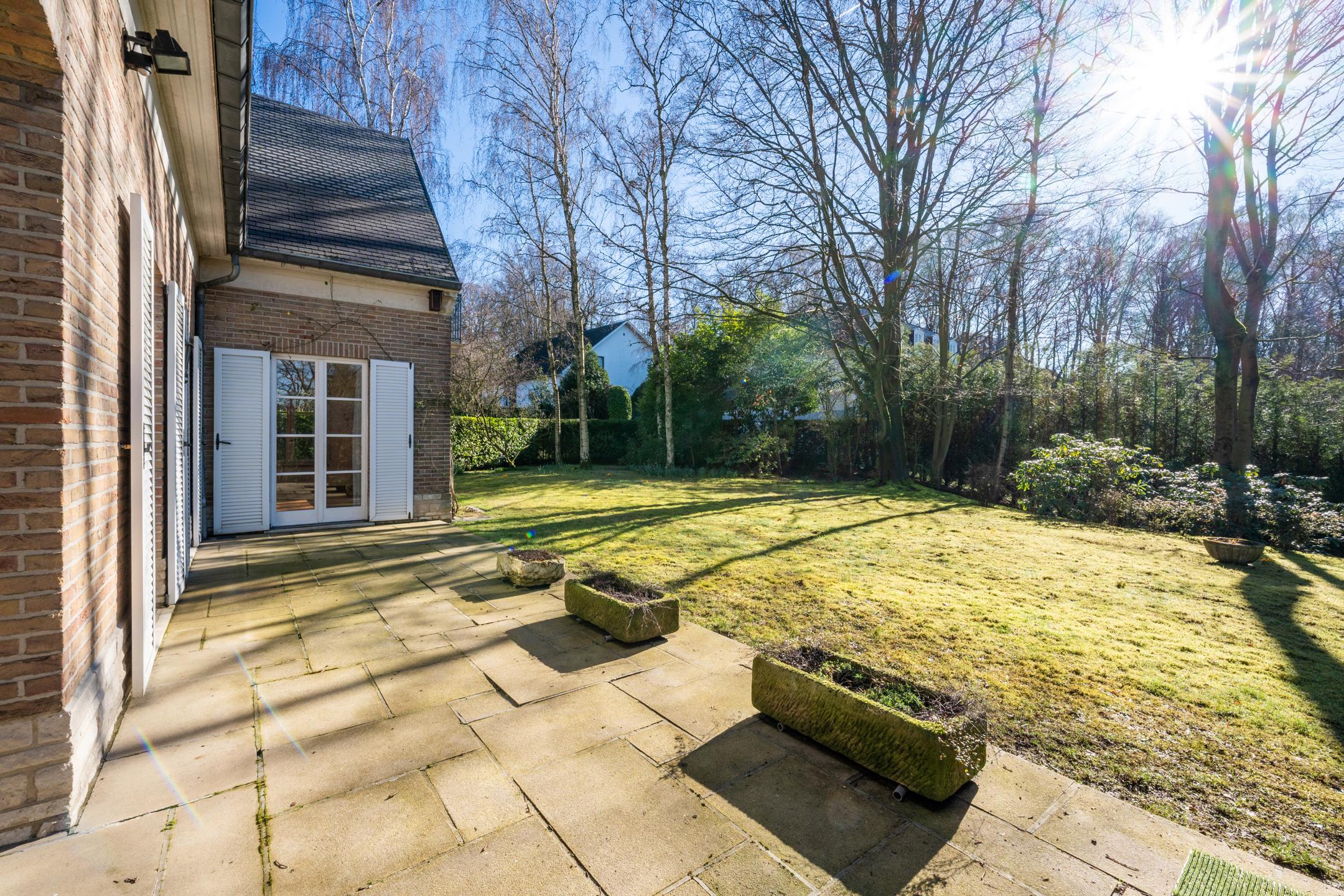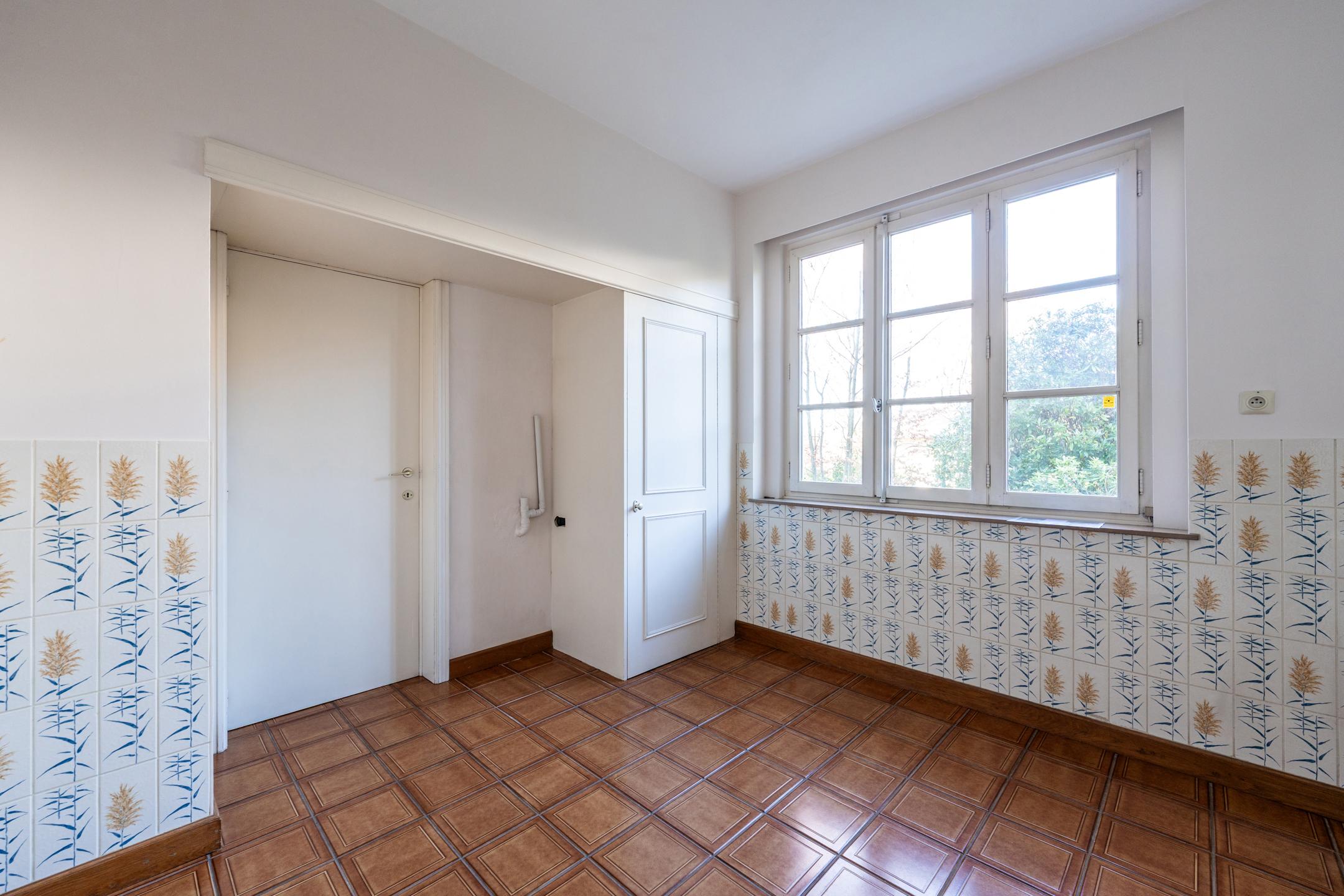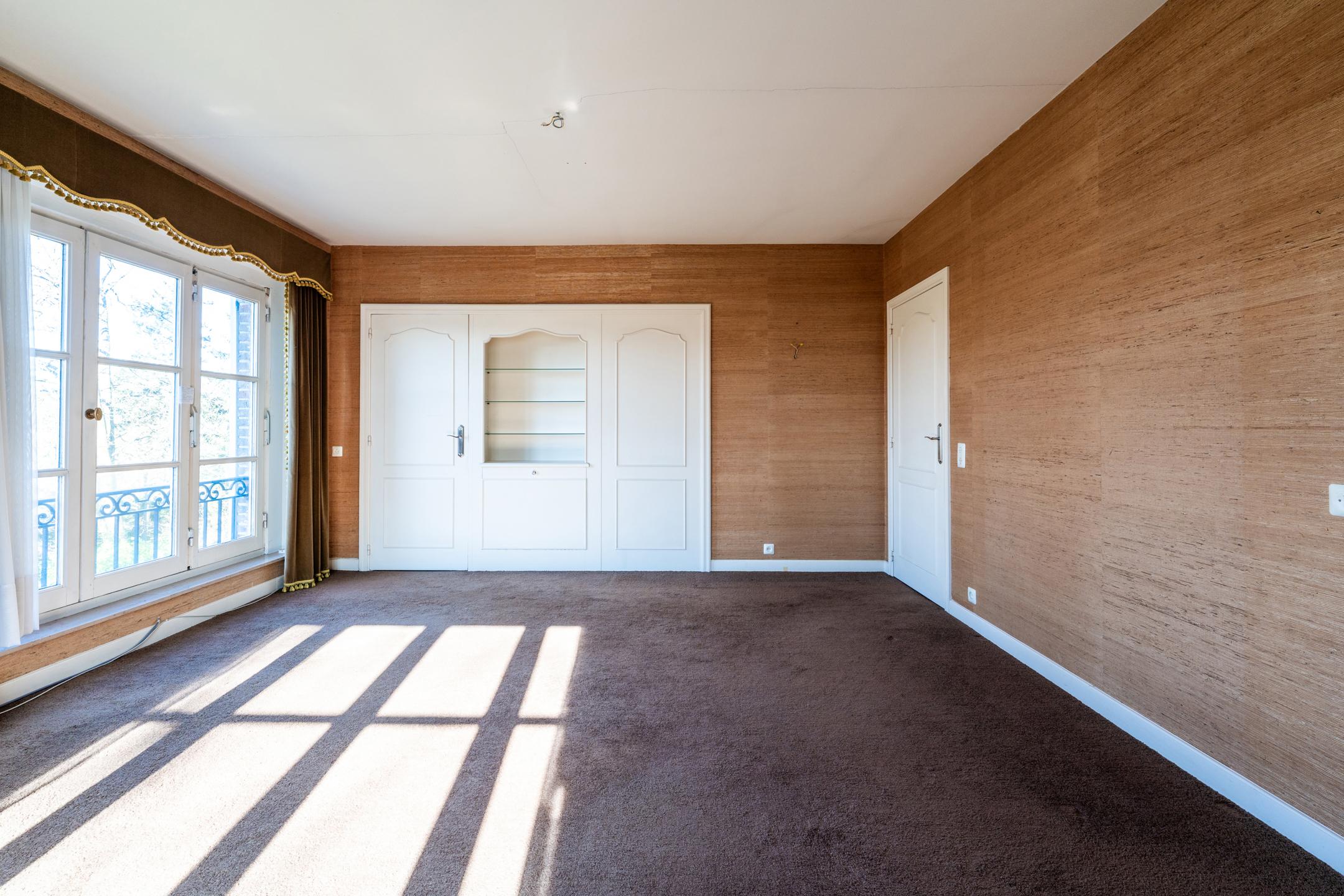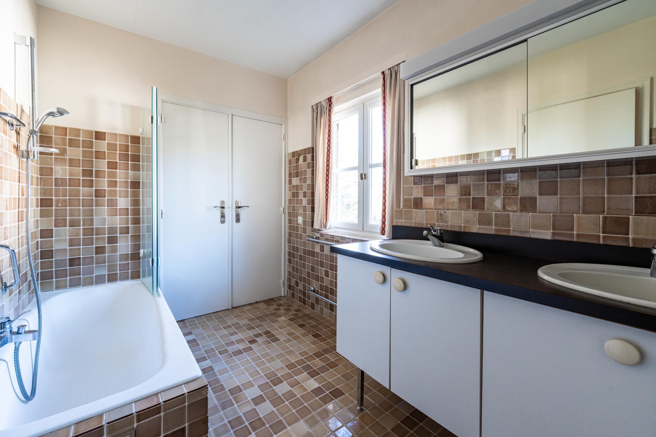 WOLUWE-SAINT-PIERRE, dans l’un des quartiers résidentiels les plus prisés, au bout d’un clos particulièrement calme et verdoyant, à deux pas de la place Dumon et de toutes les facilités, découvrez cette lumineuse villa à rénover construite en 1976 par l’architecte de Bellefroid, nichée sur une magnifique parcelle arborée de ± 11,67 ares orientée plein sud avec une vue imprenable sur la forêt. Développant une superficie d’environ ± 381 m² (selon PEB) et répartie sur 3 niveaux, cette propriété de caractère offre de superbes volumes et un potentiel exceptionnel. Au rez-de-chaussée, un spacieux hall d’entrée avec vestiaire et toilette invités mène vers un vaste séjour de ± 60 m² avec feu ouvert et salle à manger, baigné de lumière et ouvert sur une agréable terrasse couverte ainsi que sur le jardin plein sud. Une cuisine équipée de ± 15 m² avec arrière-cuisine complète ce niveau. À l’étage, le hall de nuit dessert 5 chambres (± 18, 17, 17, 12 et 8 m²), 2 salles d’eau, 2 dressings, 2 WC ainsi qu’un accès au grenier de rangement sous combles. Le sous-sol propose de nombreux espaces fonctionnels : grande cave de rangement, cave à vin, buanderie, chaufferie et vaste garage pouvant accueillir 3 voitures. Caractéristiques : châssis en bois double vitrage (ancien), nombreux rangements intégrés, volets manuels, système d’alarme, thermostat, chaudière au gaz (2005). PEB : F – 288 kWh/m²/an. Électricité non conforme. Un bien rare au fort potentiel, idéal pour les amateurs de rénovation souhaitant créer une maison familiale d’exception dans un environnement calme, verdoyant et idéalement situé à proximité des commerces, écoles et transports. À découvrir sans tarder !