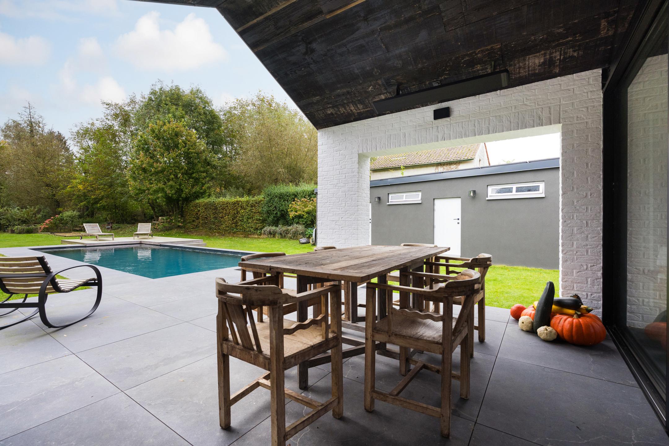 Au rez-de-chaussée : Hall d’entrée avec vestiaire et toilette invité. Séjour TV avec FO, salle à manger et cuisine SIEMATIC (Electro Miele), deuxième séjour avec F.O. à cassette, troisième séjour donnant sur la terrasse couverte et la piscine neuve. Salle de bains complète (bain, douche, double vasque, toilette), bureau complètement meublé, et chambre au-dessus du bureau. A l’étage de la partie principale : Hall de nuit avec espace bureau, deux chambres, salle de bains (bain, douche, double vasque, toilette). Au niveau des extérieurs : Parking, terrasse avant en IPE et pavé, terrasse arrière couverte et chauffée avec possibilité de placer une petite cuisine, piscine neuve (2023) avec margelle en pierre naturelle, jardin soigneusement aménagé terrain de pétanque, différentes annexes dont pour les techniques piscine, potager avec bac en acier Corten, poulailler. Au niveau technique : Toiture récente voire neuve – panneaux solaires (22) –électricité conforme – Technique piscine automatique – volet solaire chauffant pour la piscine, chaudière au gaz avec citerne enterrée. Électricité desservant l’entièreté du terrain. PEB en attente. A visiter en exclusivité avec Latour et Petit.