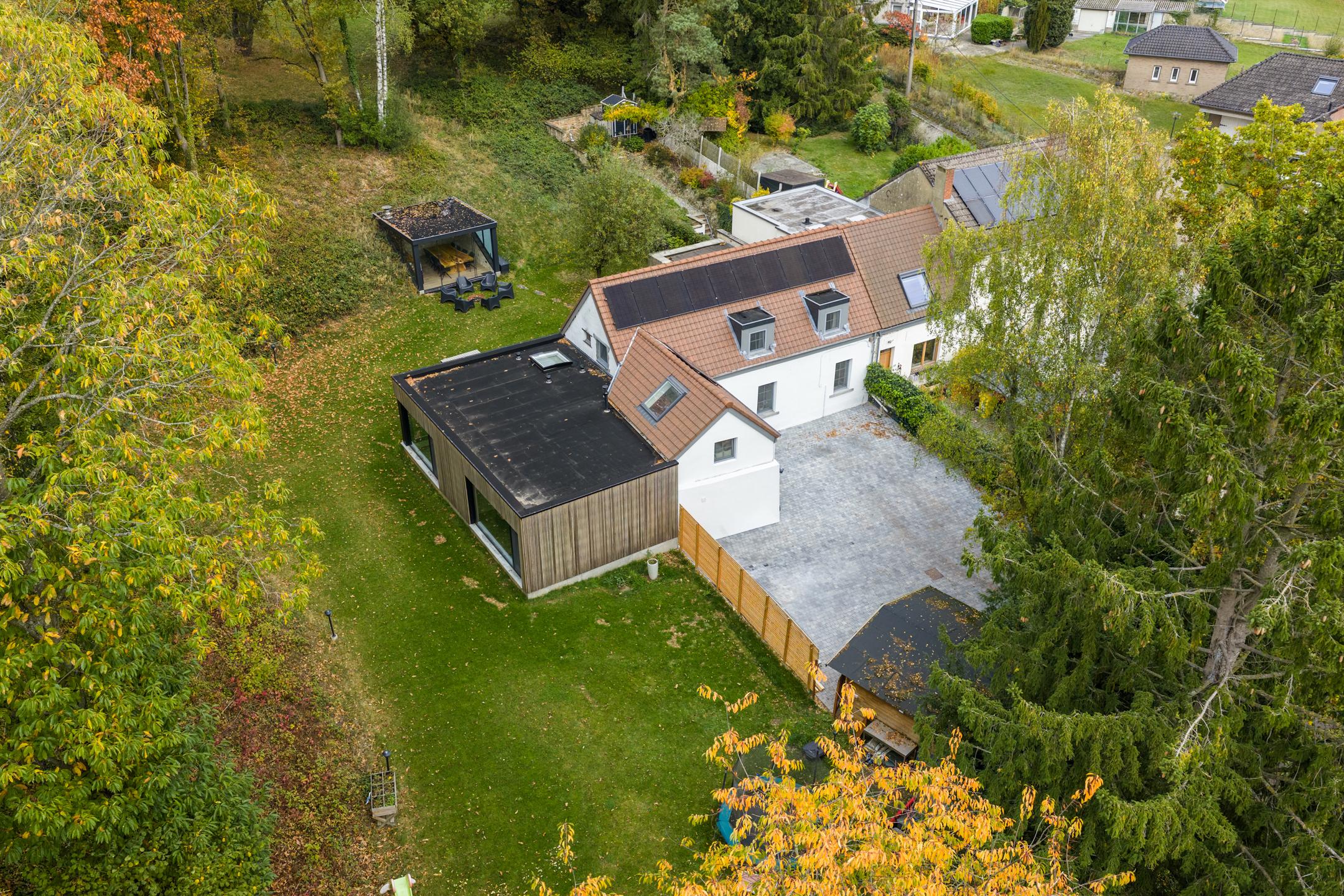 Braine-l’Alleud – Charmante MAISON + TERRAIN A BÂTIR (4CH/2SDB/BUREAU) de ± 230 m² habitables en très bon état général offrant de superbes volumes et une agréable luminosité. Terrain de 29 ares 84 ca. au cœur d’un environnement verdoyant. Présence d’un beau jardin, d’une agréable terrasse, d’une cuisine extérieure couverte, d’un parking et d’un terrain constructible. Au rez-de-chaussée : Hall d’entrée, vestiaire et toilette séparée, cuisine avec coin à déjeuner, salle à manger, séjour avec accès au jardin. Partie nuit : chambre 1 avec placards sur mesure et rétro-projecteur encastré, bureau, salle de bains (toilette, simple vasque, et douche dans le bains) – construit comme un grand local adaptable à une profession libérale. A l’étage : Hall de nuit, chambre 2, chambre 3, salle de bains (simple vasque, toilette séparée et bains), espace polyvalent avec petite mezzanine et chambre 4. Au niveau des extérieurs : Parking, terrasse, jardin magnifiquement arboré et éclairé, cabane de rangement, annexe pour les techniques, cuisine extérieure couverte avec barbecue. Terrain constructible. Au niveau des techniques : PEB C - 189kwh/m².an - n°20251009021706, électricité conforme, chaudière au gaz à condensation de 2025, boiler indépendant, châssis en PVC double vitrage (2015) et aluminium double vitrage (2025) avec moustiquaires et screen, adoucisseur d’eau, 12 panneaux photovoltaïques (2025), nouvelle toiture (2025), chauffage par le sol dans l’annexe. Maison spacieuse pleine de charme offrant un cadre extraordinaire à découvrir sans plus attendre !