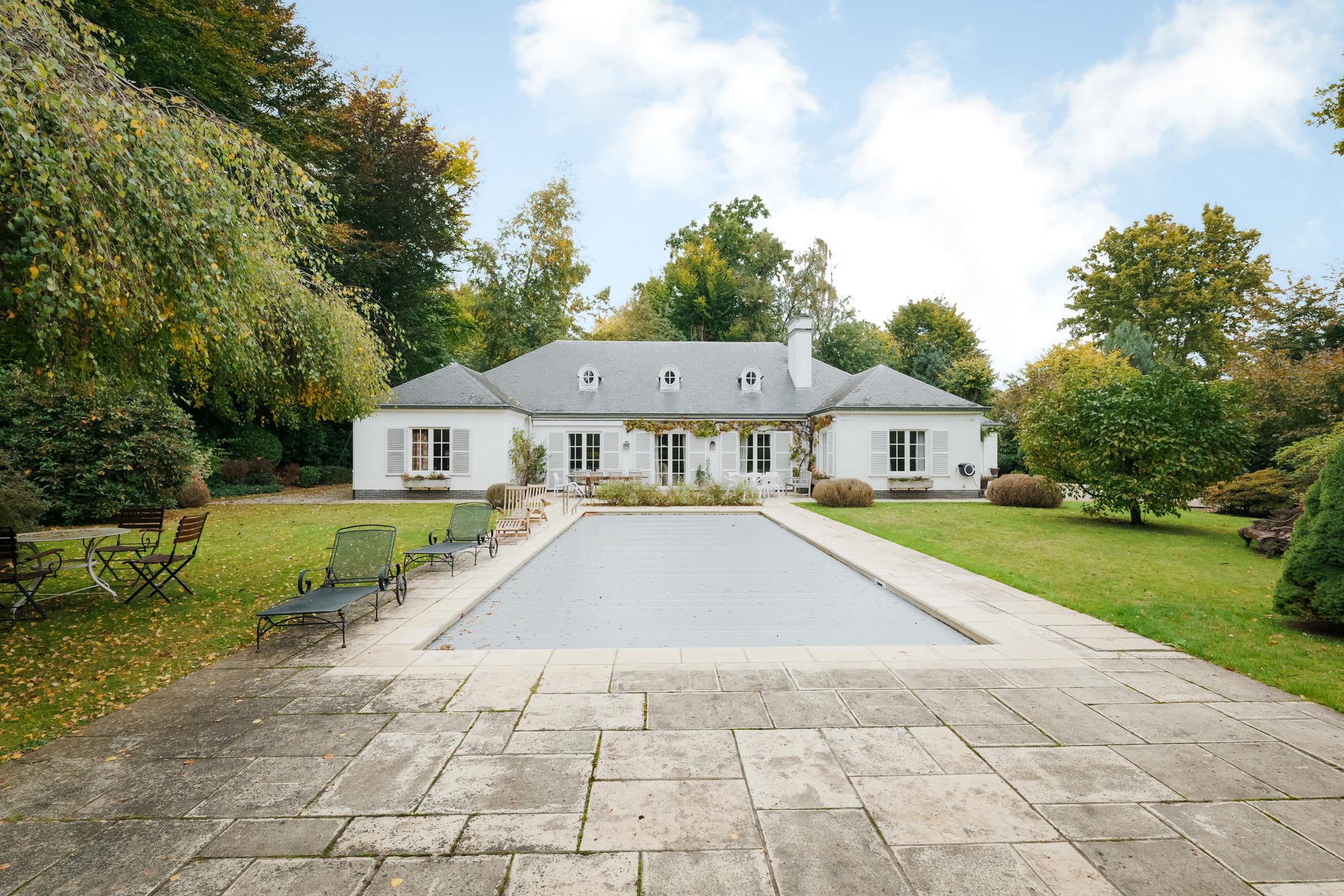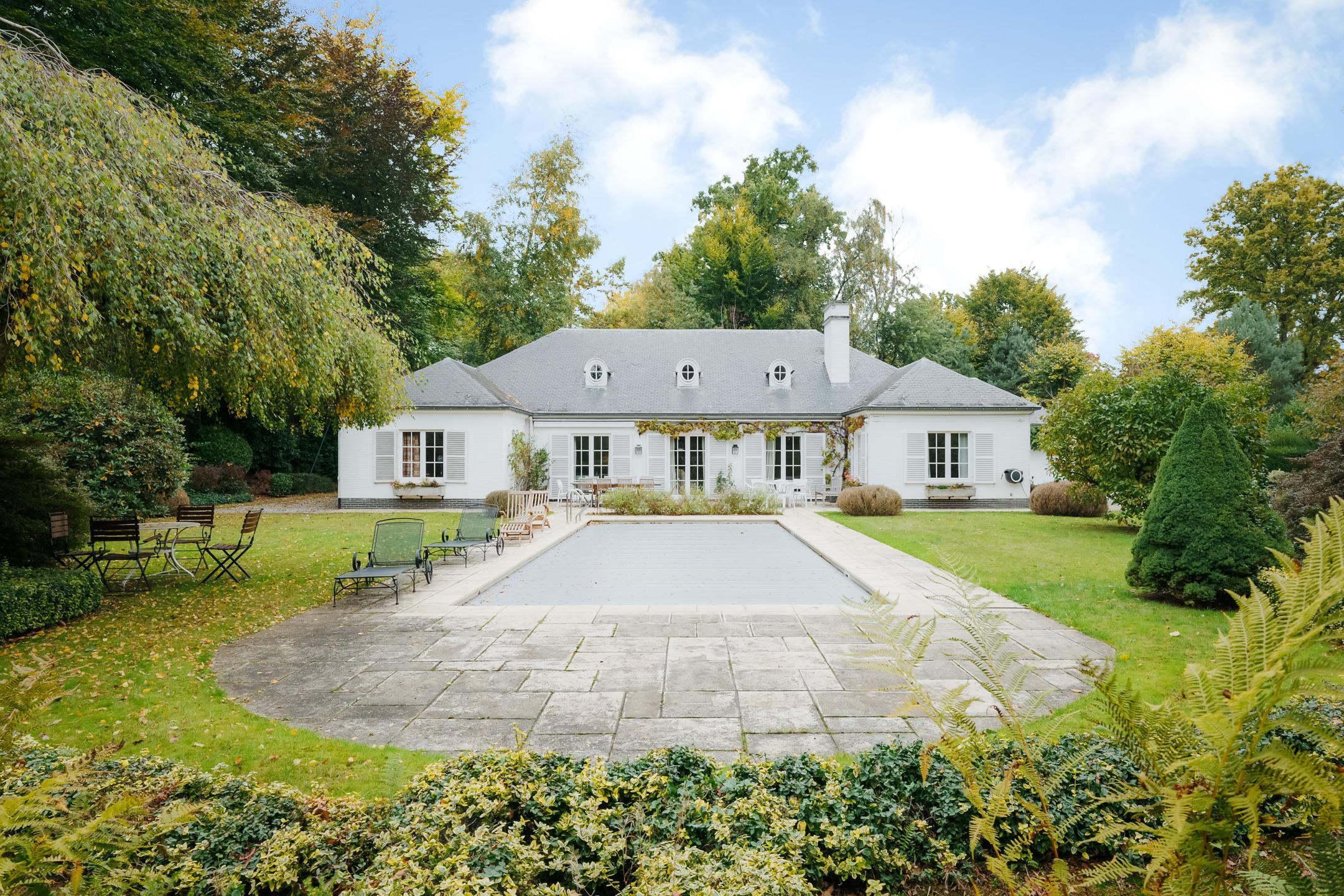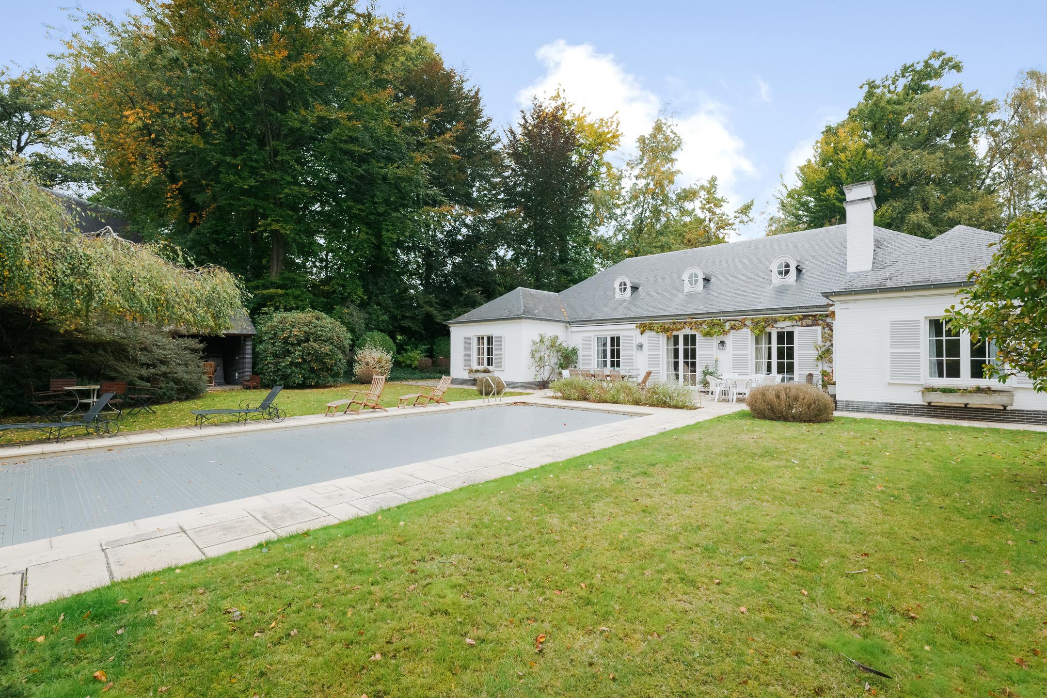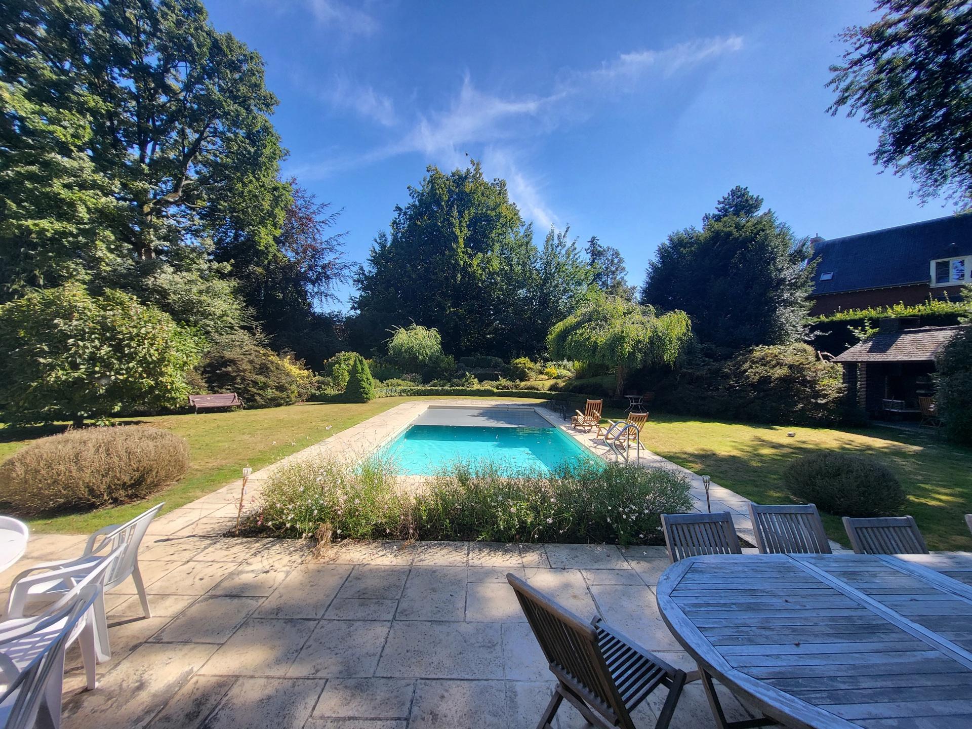 KRAAINEM, nichée dans une rue calme du très prisé quartier Baron Huart, lumineuse VILLA (6ch/2sdb/studio) développant ± 490m² construits dont ± 340m² habitables (hors caves), sise sur un magnifique terrain de 27a59ca idéalement orienté sud et agrémenté d’un vaste jardin arboré avec piscine. La maison se compose comme suit : au rez-de-chaussée : spacieux hall d’entrée avec vestiaire et toilette visiteurs, beau séjour avec feu ouvert et salle à manger attenante ouvrant sur une agréable terrasse (± 36m²) et sur le jardin, grande cuisine, belle suite parentale avec dressing et salle de bains attenante, 4 chambres supplémentaires avec placards et points d'eau, 2ème salle de bains, garage double avec porte motorisée et buanderie attenante ainsi qu’un duplex avec entrée indépendante offrant séjour et cuisine au rez/chambre et salle d’eau à l'étage. Au premier étage : vaste salle de jeux et bel atelier convertibles en plusieurs chambres avec salle(s) d’eau, nombreux greniers de rangement sous toiture. En sous-sol : caves de rangement, cave à vin et chaufferie. Également : PEB C (298 kWh/m²/an), RU sur demande, châssis PVC double vitrage, chauffage central au mazout, terrain entièrement clôturé, piscine extérieure chauffée, nombreuses possibilités d’aménagement. Excellente situation à proximité immédiate de la place Dumon et de toutes facilités ! Une propriété familiale d’exception, rare sur le marché, alliant volumes, luminosité et confort dans un environnement verdoyant et très recherché. À découvrir sans plus attendre chez L&P.