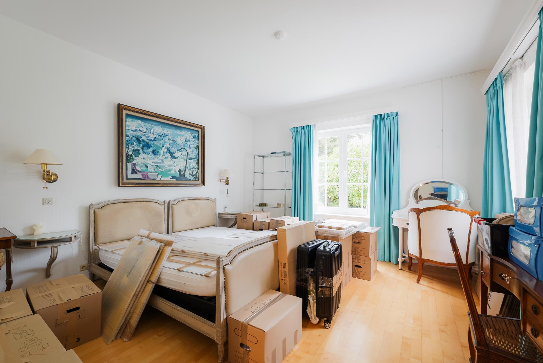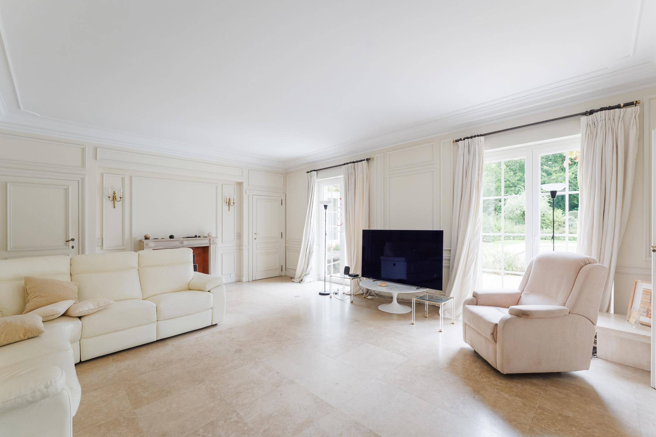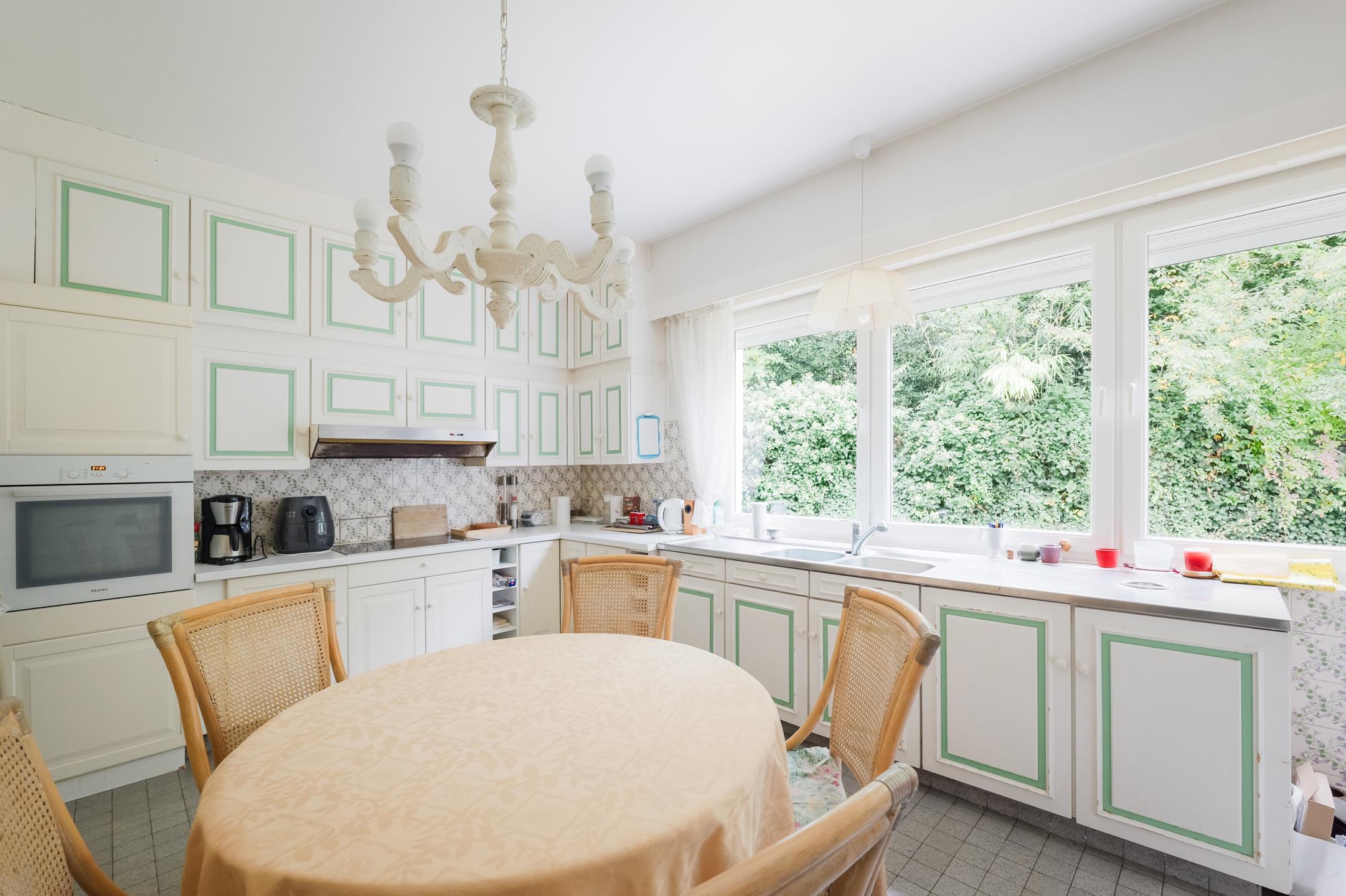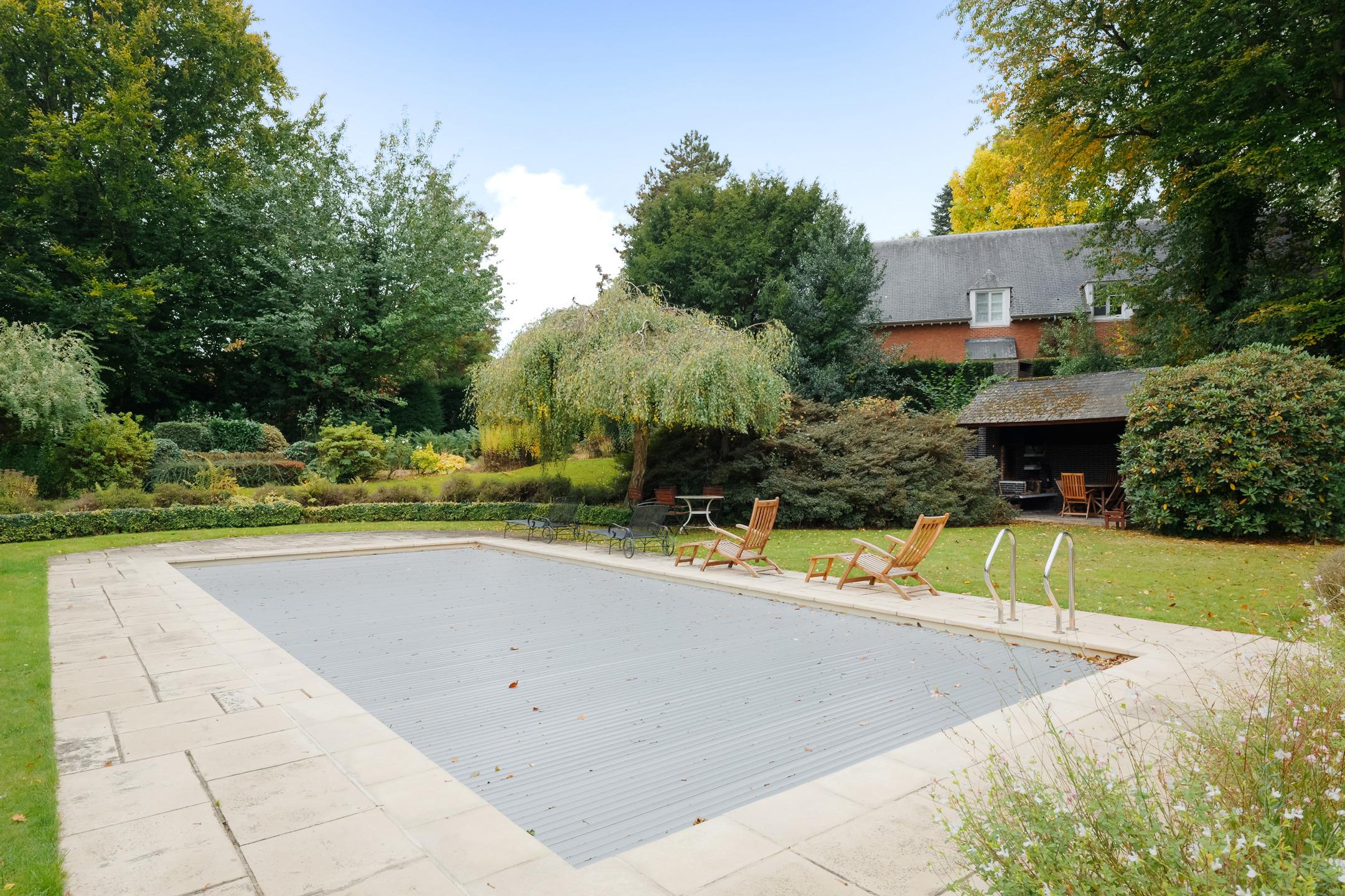 KRAAINEM, nichée dans une rue calme du très prisé quartier Baron Huart, lumineuse VILLA (6ch/2sdb/studio) développant ± 490m² construits dont ± 340m² habitables (hors caves), sise sur un magnifique terrain de 27a59ca idéalement orienté sud et agrémenté d’un vaste jardin arboré avec piscine. La maison se compose comme suit : au rez-de-chaussée : spacieux hall d’entrée avec vestiaire et toilette visiteurs, beau séjour avec feu ouvert et salle à manger attenante ouvrant sur une agréable terrasse (± 36m²) et sur le jardin, grande cuisine, belle suite parentale avec dressing et salle de bains attenante, 4 chambres supplémentaires avec placards et points d'eau, 2ème salle de bains, garage double avec porte motorisée et buanderie attenante ainsi qu’un duplex avec entrée indépendante offrant séjour et cuisine au rez/chambre et salle d’eau à l'étage. Au premier étage : vaste salle de jeux et bel atelier convertibles en plusieurs chambres avec salle(s) d’eau, nombreux greniers de rangement sous toiture. En sous-sol : caves de rangement, cave à vin et chaufferie. Également : PEB C (298 kWh/m²/an), RU sur demande, châssis PVC double vitrage, chauffage central au mazout, terrain entièrement clôturé, piscine extérieure chauffée, nombreuses possibilités d’aménagement. Excellente situation à proximité immédiate de la place Dumon et de toutes facilités ! Une propriété familiale d’exception, rare sur le marché, alliant volumes, luminosité et confort dans un environnement verdoyant et très recherché. À découvrir sans plus attendre chez L&P.