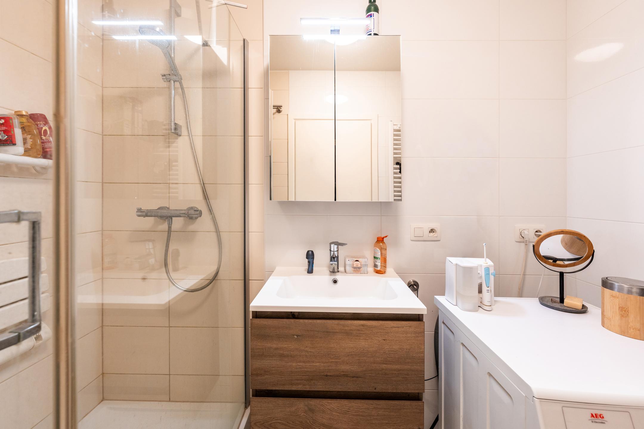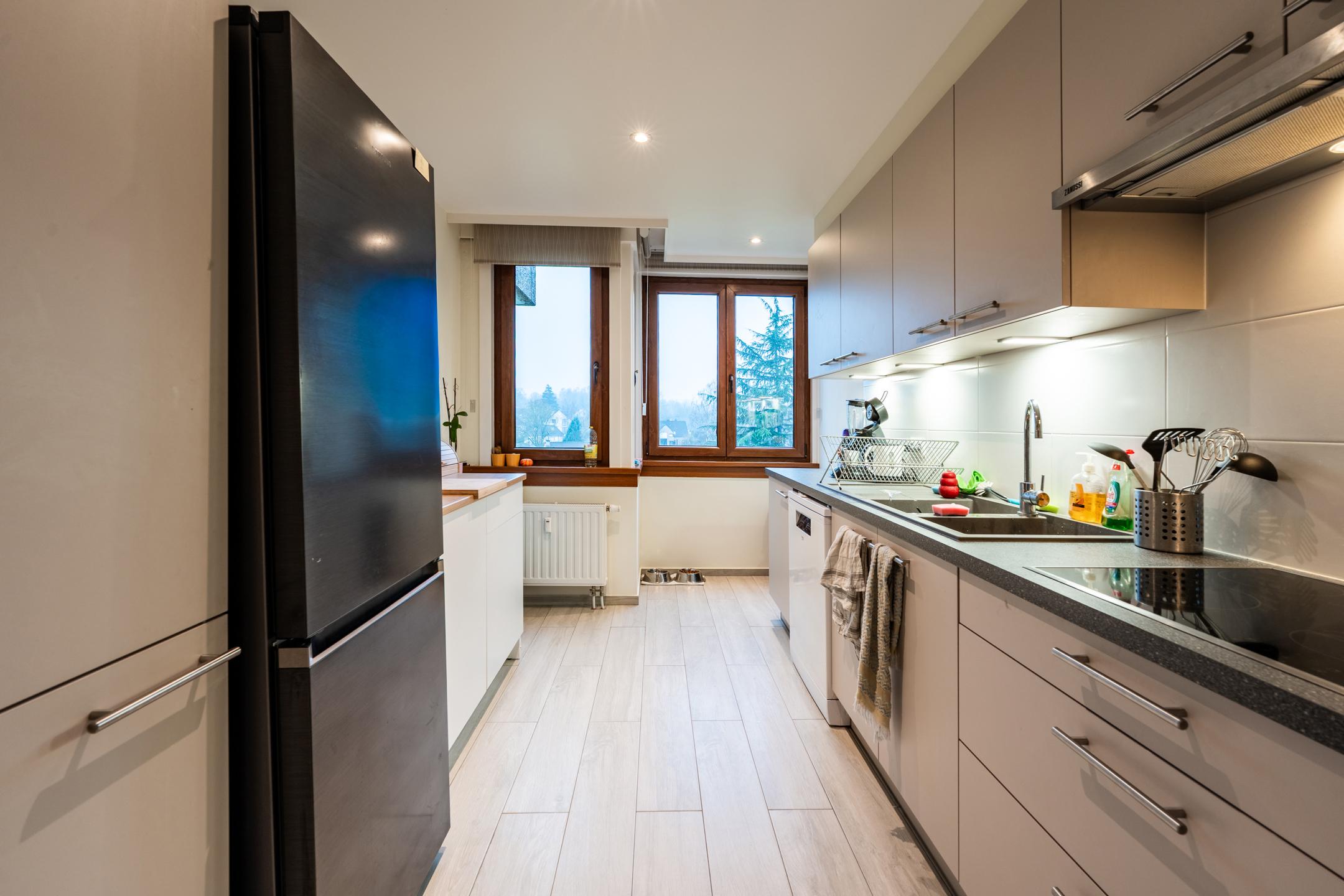 WEZEMBEEK-OPPEM, Idéalement situé dans un cadre verdoyant à proximité des toutes les facilités, lumineux APPARTEMENT - PEB B - (1ch/1sdb), et une terrasse orientée Sud. Situé au 1er étage sur 4 d’un immeuble de 1980, il offre une superficie habitable de ± 75m² et se présente comme suit : hall d ‘entrée avec vestiaire et toilettes invités, lumineux séjour (± 30m²) avec terrasse et une magnifique vue sur le parc, une cuisine super équipée. Une chambre (15m²), une salle de douche avec un espace buanderie. Une cave et un grand garage box au sous sol. Calme absolu et à quelques pas des transports en commun et commerces. Charges/mois : ± 280€. Electricité conforme – PEB : B: 193Kwh/m²/an.
