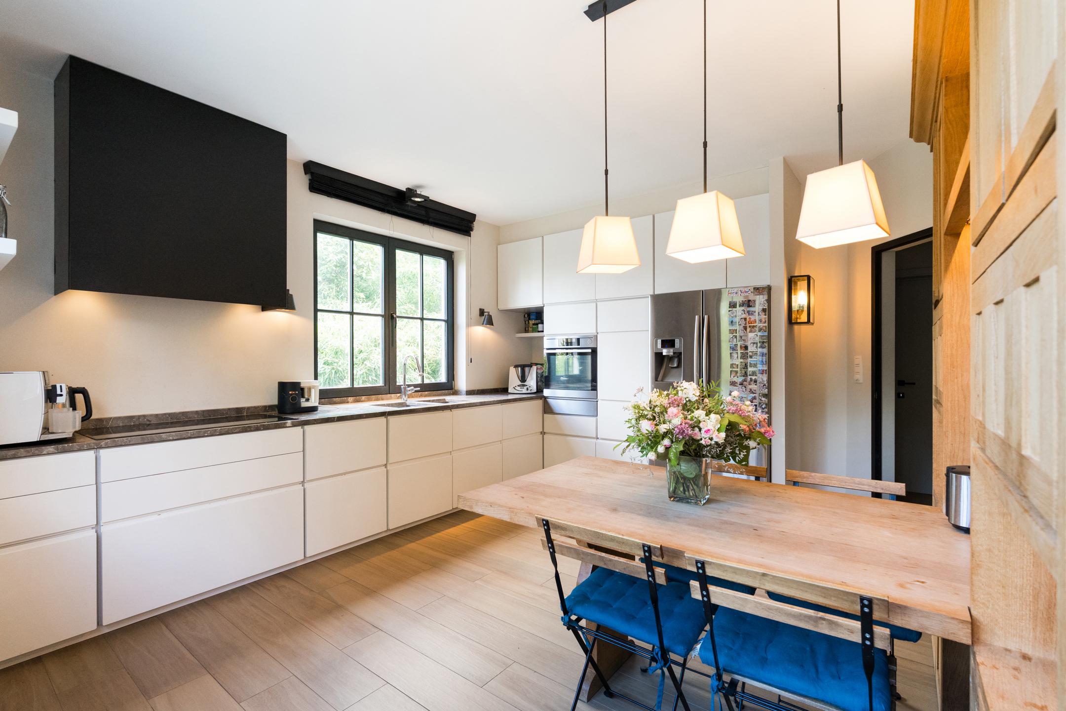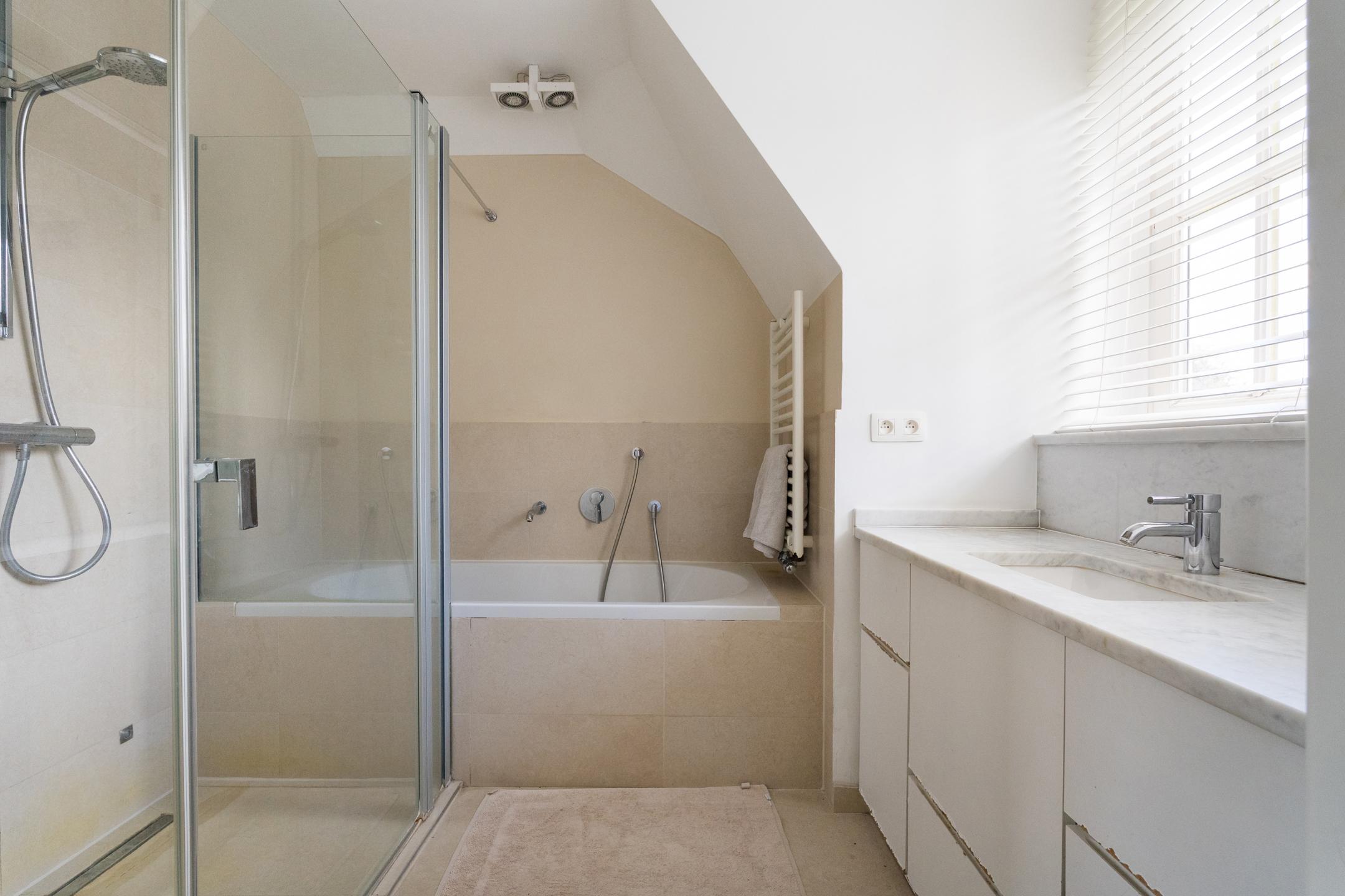 TERVUREN – Située au cœur du quartier très prisé d’Hoogvorst, à proximité du tram, des commerces ainsi que des écoles internationales et du HHC, cette magnifique villa 4 façades (4/5ch, 3sdb + bur), d’une superficie totale de +/- 350 m² construits, se niche dans un clos résidentiel et calme. Rénovée avec soin en 2015, elle offre de très belles finitions et se compose comme suit : Un vaste hall d’entrée, une cuisine équipée séparée, une salle à manger suivie d'un lumineux salon de réception avec accès direct à la terrasse et au jardin exposés Sud. Un bureau ou espace polyvalent (salle de jeux, bibliothèque...) donne également sur le jardin. À l’étage, la suite parentale avec dressing sur mesure et une salle de bains complète comprenant aussi une douche. Trois autres chambres et une salle de bains complètent cet étage. Les combles ont été aménagés en espace indépendant avec kitchenette, chambre et salle de douche. Au sous-sol : grand garage, buanderie, cave à vin, et espaces de rangement. Nombreuses places de parking devant la maison. Autres atouts : électricité conforme, PEB : D. RU disponibles. Un bien à découvrir en exclusivité chez L&P !
