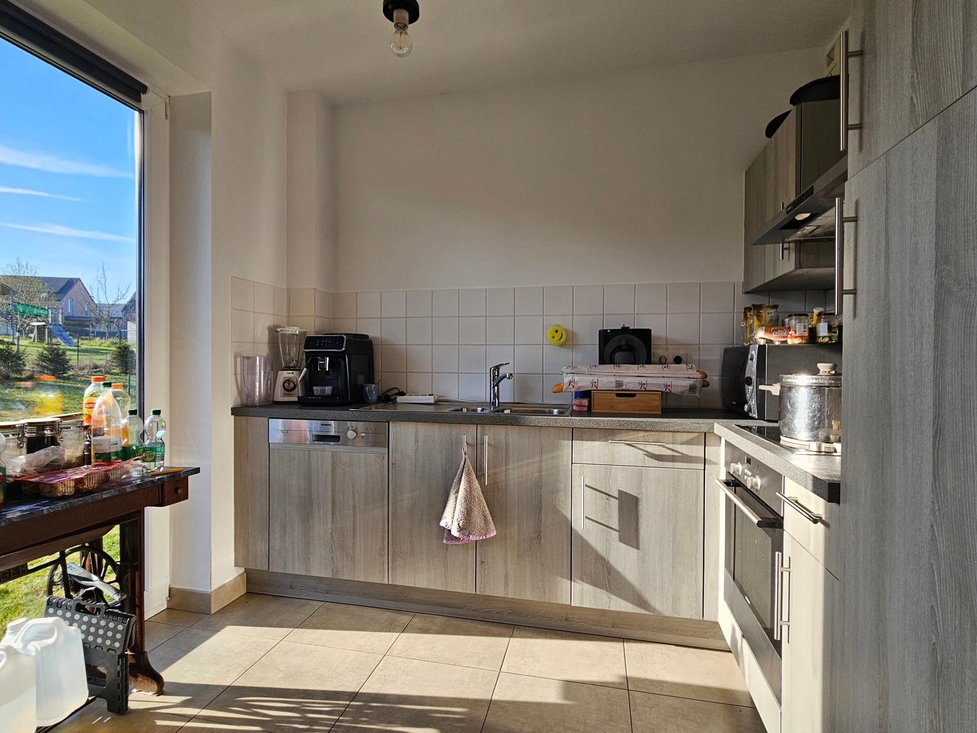 FLORIFFOUX - Bel APPARTEMENT (2ch/1bur/1sdb) à deux pas de toutes les facilités. L'appartement est situé au 1er étage (rez-de-jardin) d'une copropriété de 2013, et est composé : d'un hall d'entrée avec espace vestiaire et d'une buanderie, d'une toilette visiteurs, d'un séjour donnant accès à la terrasse et au jardin clôturé, orientés OUEST, et d'une cuisine ouverte sur le séjour. Le hall de nuit dessert deux chambres, un bureau, une salle de douche et une salle de bain. L'appartement dispose d'un spacieux garage fermé et privatif muni d'une porte de garage motorisée en option pour 15.000€. Chaudière collective au gaz de ville, électricité individuelle conforme, châssis PVC double vitrage avec invisivents, parlophone. Charges communes mensuelles d'environ 270€/mois comprenant le chauffage privatif et l'eau chaude privative, l'entretien des communs, du jardin, l'évacuation des poubelles).Appartement actuellement loué. PEB B - 104 kWh/m².an - 10.557 kWh/an - n°20241022019105. A découvrir chez L&P au 081 303 404 !