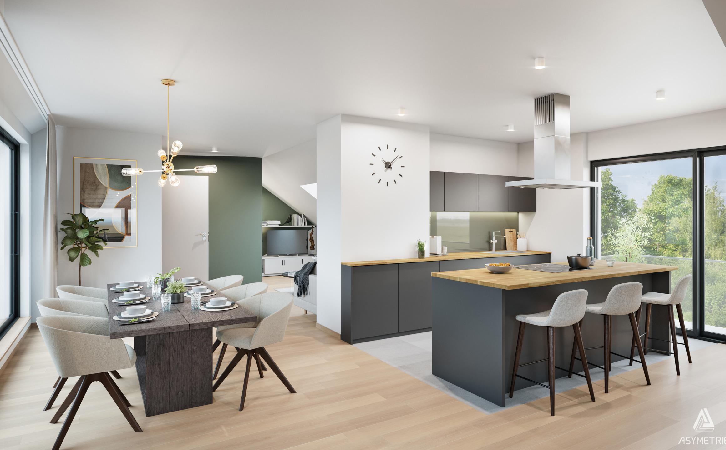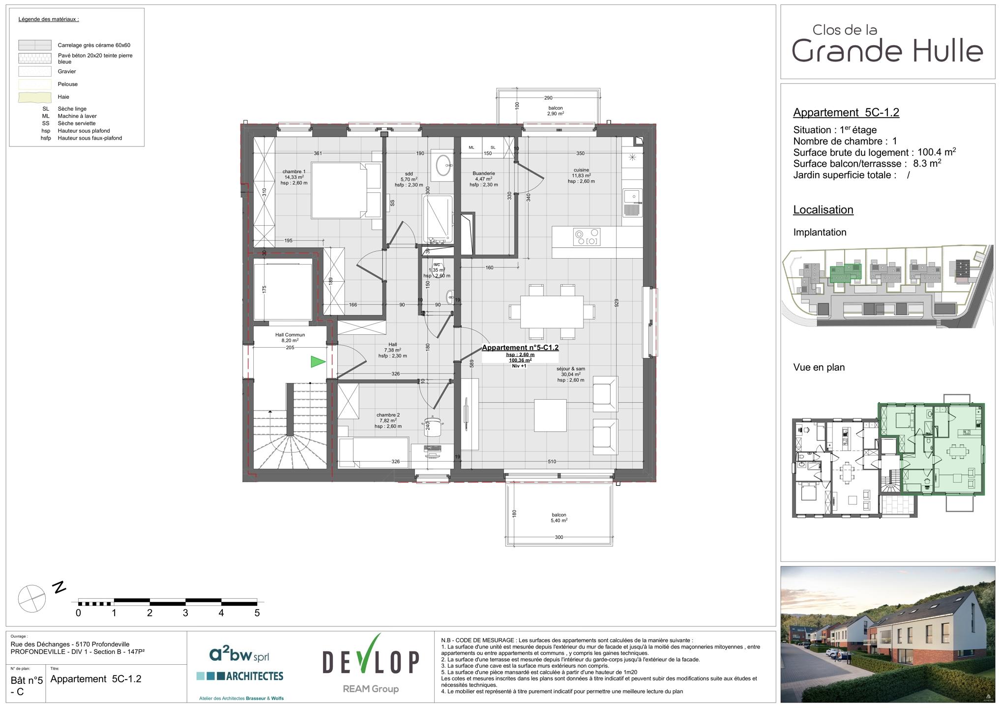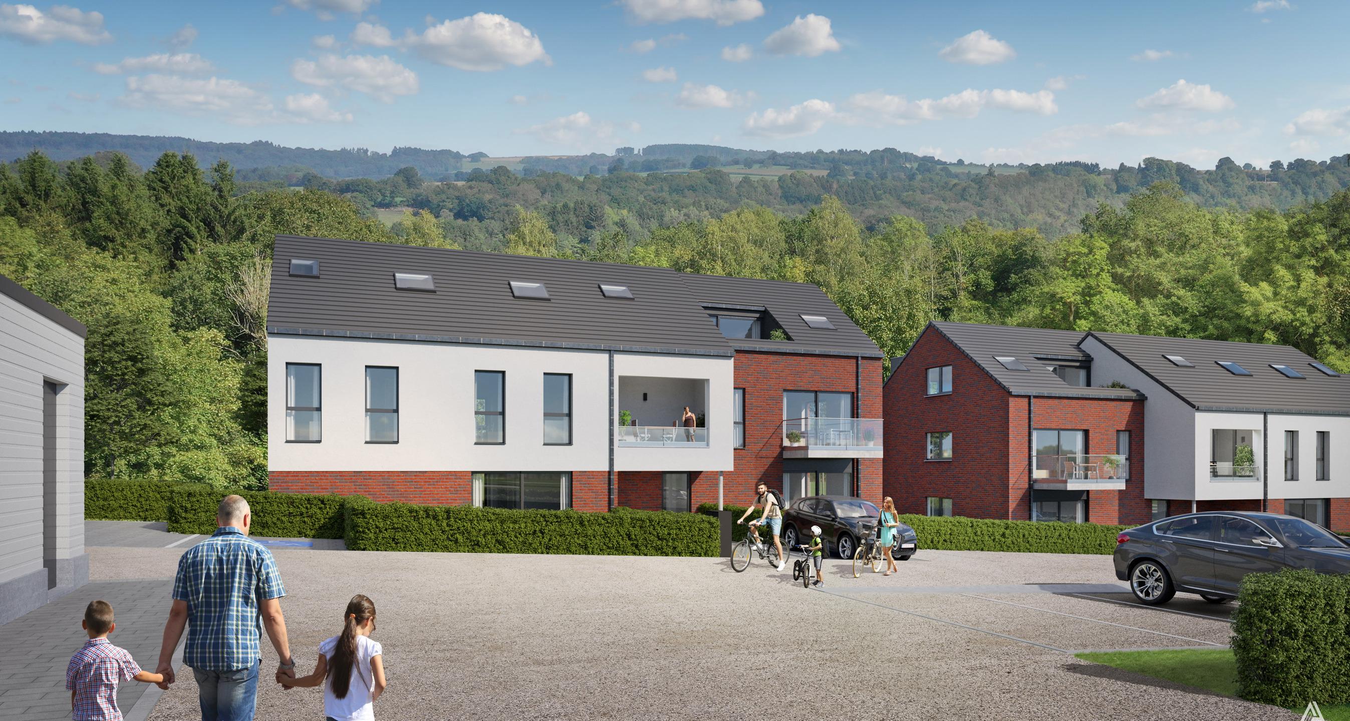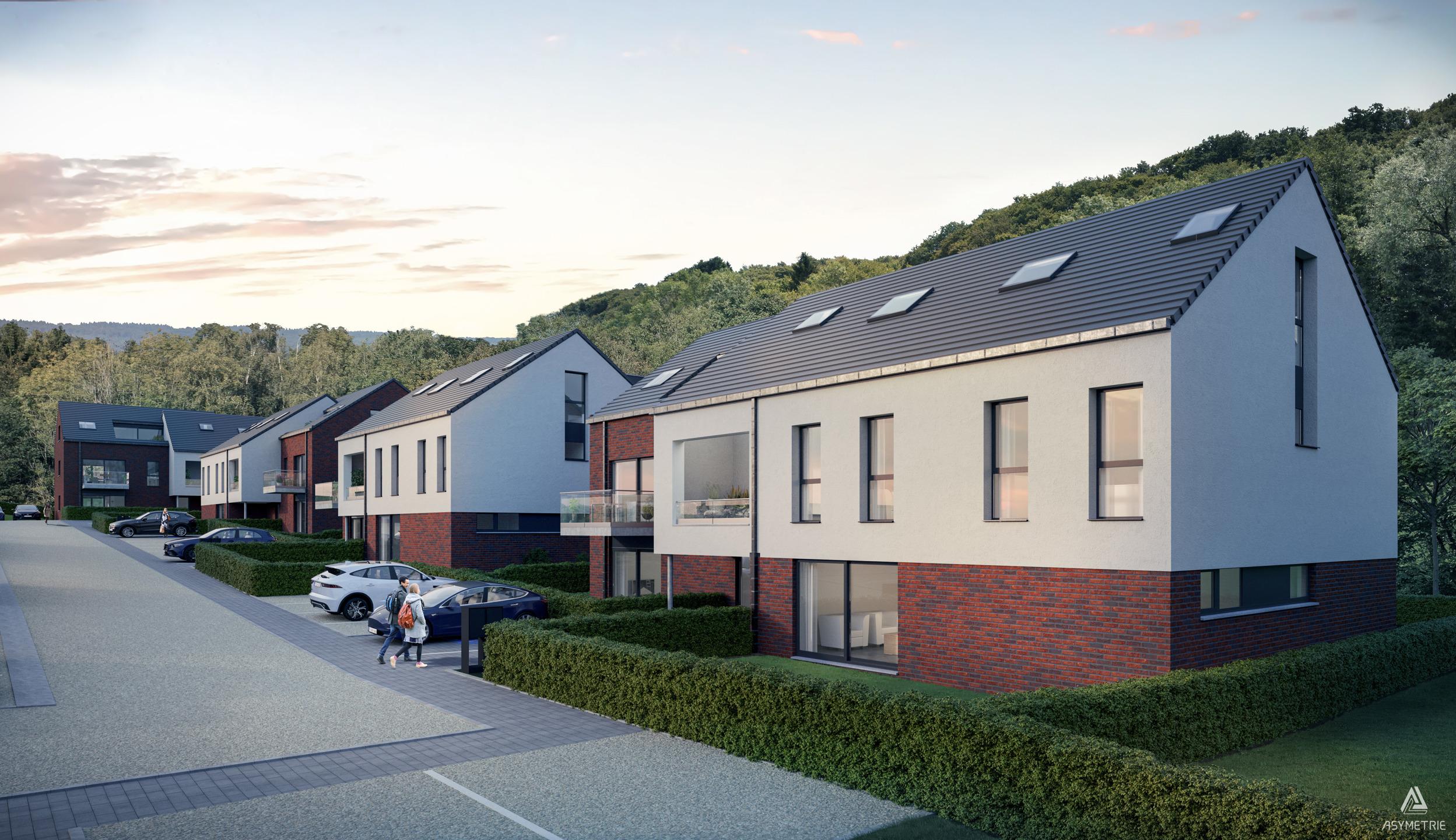 PROFONDEVILLE – Dans un écrin de verdure, bel appartement contemporain (2CH/1SDB) de 100,40 m² situé au 1er étage de la résidence « Clos de la Hulle ». Il se compose d’une buanderie, d’un beau séjour avec accès à un balcon de 5,40 m² avec cuisine ouverte (accès vers un balcon de 2,90 m²), un hall de nuit, une salle d’eau et 2 chambres. Vue verdoyante et dégagée. L’implantation dans un cadre de verdure permet une architecture ouverte sur le paysage offrant des vues sur un cadre naturel et paisible ; nombreuses possibilités de promenades. L’utilisation de pompes à chaleur géothermiques, de panneaux solaires thermiques et de panneaux photovoltaïques permet de fournir une énergie propre et durable à l’ensemble des résidents. Châssis double vitrage en PVC, excellente isolation acoustique et thermique. Double flux, cuisine équipée, vidéophone. Finitions soignées afin que le confort soit optimal. Parking et local de rangement en sus. PEB prévisionnel « A ». Vente sous régime TVA (21%) pour la construction et sous droits d'enregistrement (12,50%) sur le terrain. La Loi Breyne est d’application. Livraison prévue : septembre 2024. A deux pas des commodités et facilités. Idéal tant pour y habiter que pour y investir ! PRIX FIXES ET NON REVISABLES. A découvrir chez LP au 081/303 404..