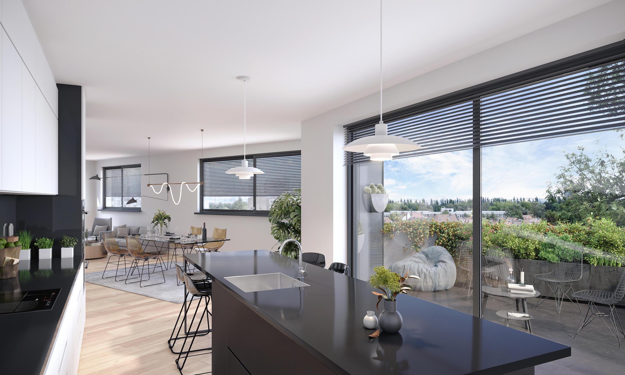 SCHAARBEEK, dichtbij het Meiserplein, in de onmiddellijke nabijheid van alle voorzieningen, evenals de verschillende vormen van openbaar vervoer en de belangrijkste wegen in het oosten van Brussel. Het "F-Square" project biedt een NIEUW APPARTEMENT (2 slaapkamers) met TERRAS. Gelegen op de eerste verdieping, bestaat het uit een hal, een mooie en heldere woonkamer met een super ingerichte open keuken met een grote erker die uitkomt op het terras. Een nachthal die leidt naar een slaapkamer en de aangrenzende doucheruimte (wastafel, douche), een tweede slaapkamer en de bijbehorende badkamer (dubbele wastafel, bad), 2 toiletten en een aparte wasruimte. De flat is zeer energiezuinig en heeft een hoog afwerkings- en uitrustingsniveau. Dit project van 4 verdiepingen biedt een stedelijke locatie, een aangenaam uitzicht over grote groene ruimten en een rustige omgeving. Parkeerplaats en kelder verplicht tegen meerpijs. 2 fietsenstallingen inbegrepen. De grond wordt verkocht onder de registratierechten (12,5%) en de constructie onder de BTW-stelsel (21%). EPC A-. Ontdek het nu bij L&P !