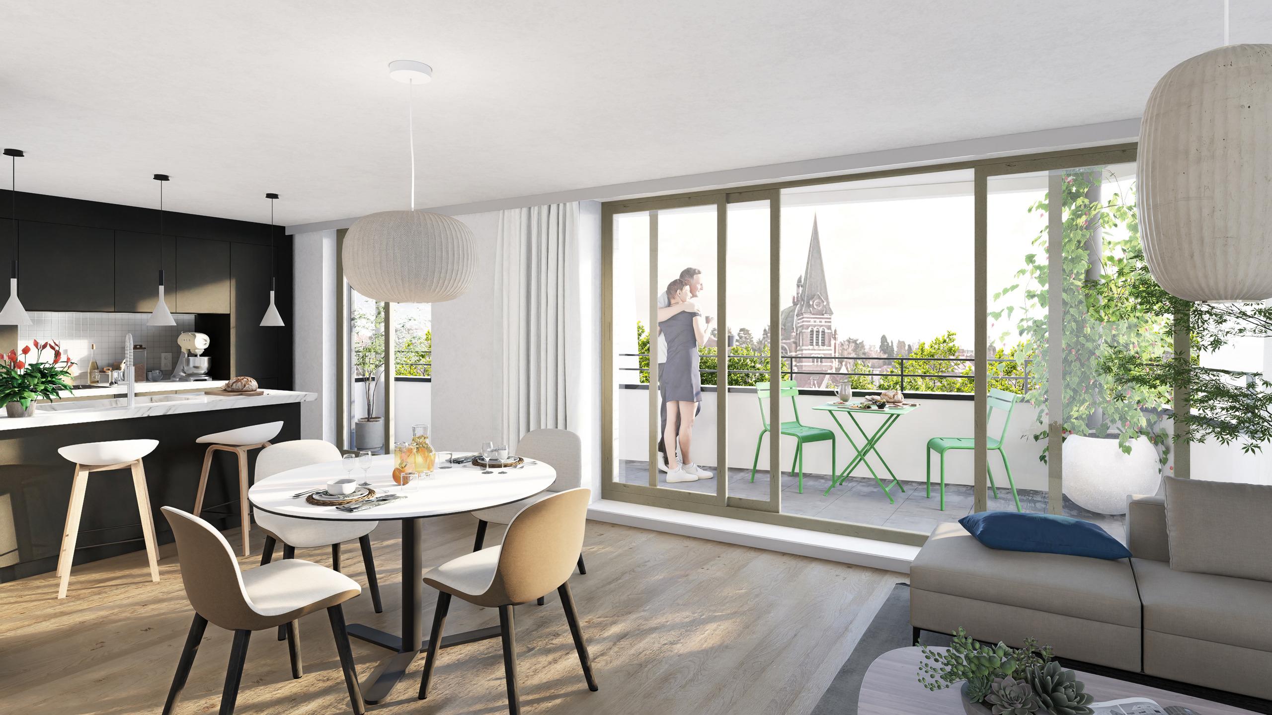 UKKEL – Ideaal gelegen in het hart van een gegeerde sector, op enkele stappen van het Sint-Jobplein, het Wolvendaelpark en het Vivier d’Oie, prachtig DUPLEX PENTHOUSE (4slpk of 3slpk+bureau/1badk/2douchek) van 154 m² met een TERRAS van 9 m² op het oosten georiënteerd. Gelegen op de 2e en 3e verdieping, bestaat het uit een inkomhal met vestiaire en gastentoilet, een leefruimte van 43,9 m² met volledig uitgeruste open keuken die uitgeeft op het terras, een wasruimte, een slaapkamer van 10 m² met aangrenzende douchekamer (lavabo, douche). Op de bovenverdieping, bereikbaar via een trap, een nachthal, een slaapkamer van 16,7 m² met aangrenzende badkamer (dubbele lavabo, bad, toilet), twee andere slaapkamers (of een slaapkamer + bureau) van 9,7 en 8,7 m² en een douchekamer (dubbele lavabo, douche, toilet). Dit appartement maakt deel uit van een kleinschalige, hedendaagse residentie die grondig werd gerenoveerd. Het biedt lichte, warme en functionele leefruimtes, zeer verzorgde afwerkingen en een hoog niveau van akoestische en thermische isolatie. De buurt, bekend om haar rustige en groene sfeer, beschikt over tal van faciliteiten (kwaliteitsvolle restaurants en winkels, lokale markten en gerenommeerde scholen). Onmiddellijke nabijheid van het station Sint-Job en tram 92. EPC B. KELDER en GARAGE INBEGREPEN. Beveiligde fietsen- en kinderwagenberging beschikbaar. Verkoop onder registratiebelasting (12,5%). Ontdek het nu bij L&P!